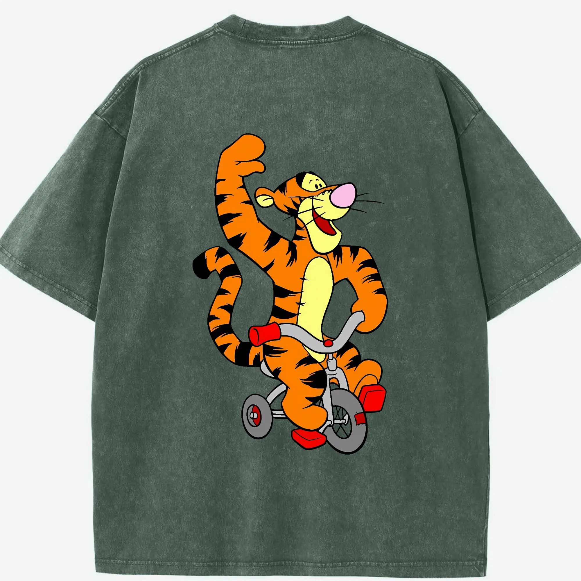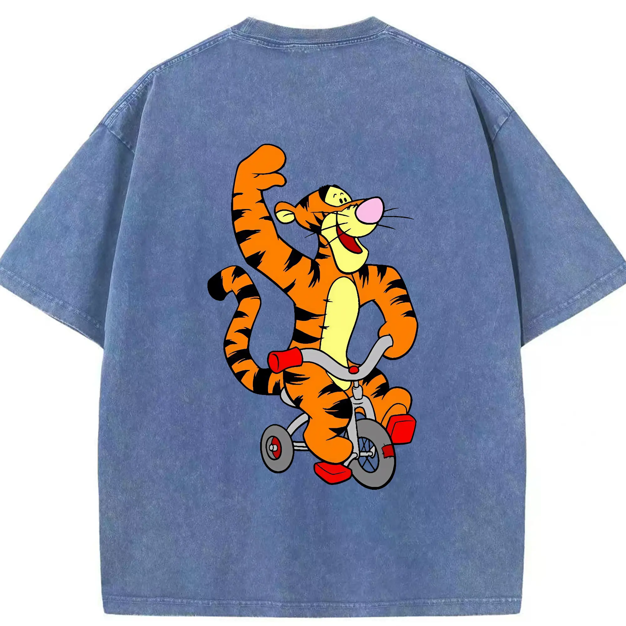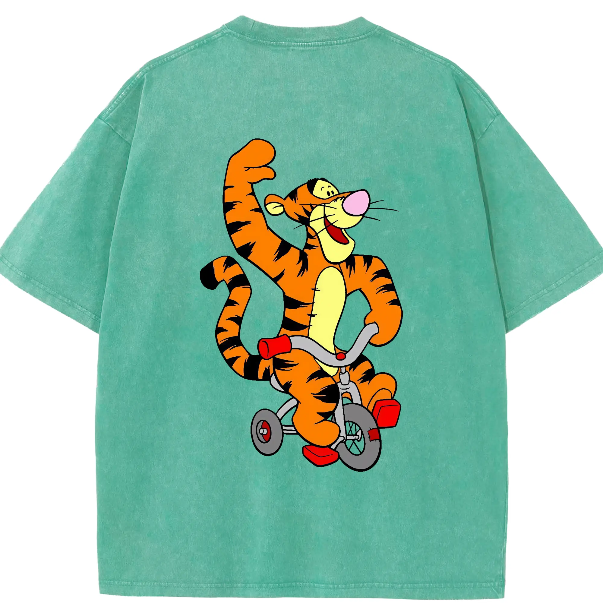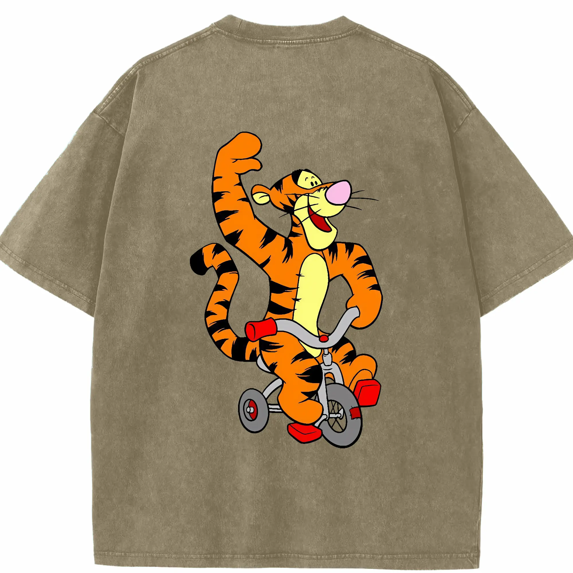 プーさん グッズ ティガー - 綿100% ヴィンテージ風 半袖Tシャツ ・ フロントプリント ・ 柔らか肌触り ・ 通気性 快適 ・ スポーツ カジュアル 外出用
