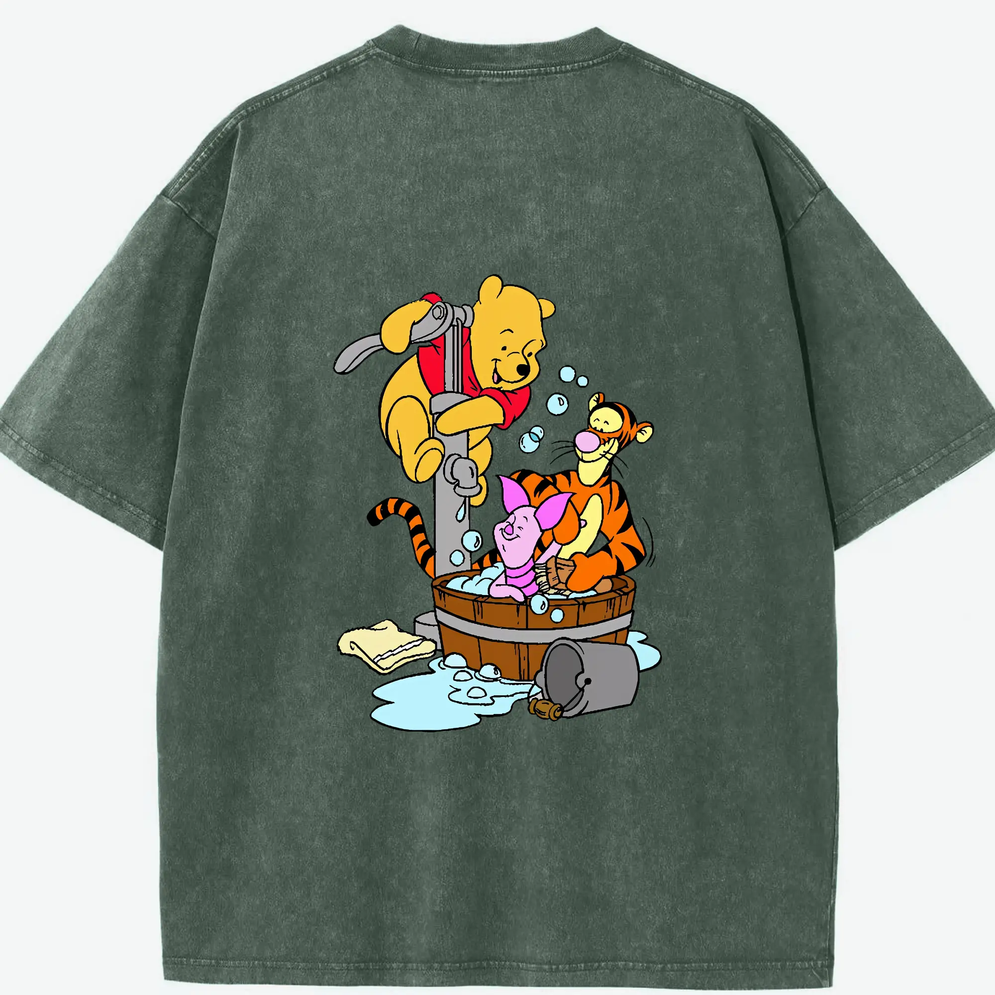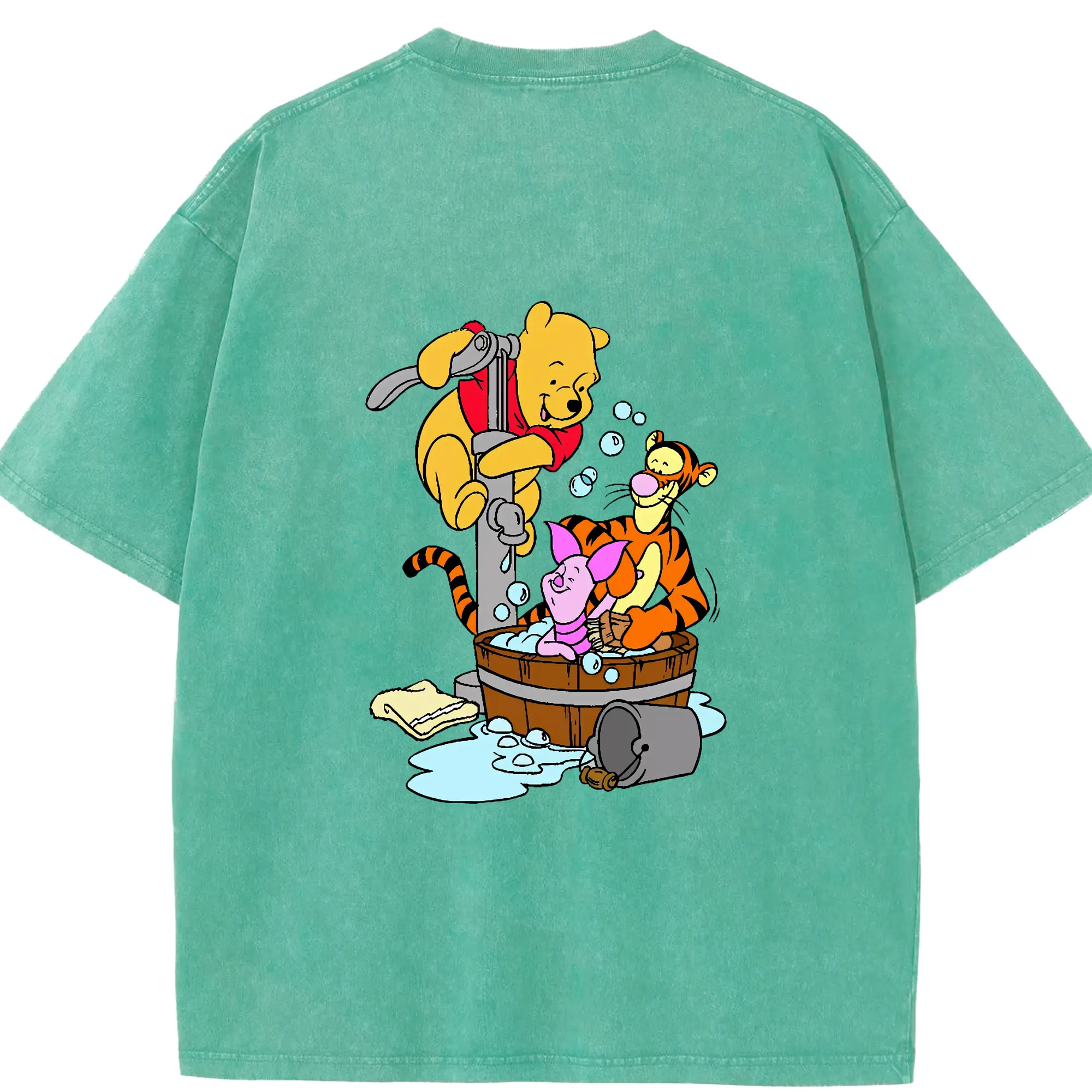 プーさん グッズ ティガー - 綿100% ヴィンテージ風 半袖Tシャツ ・ フロントプリント ・ 柔らか肌触り ・ 通気性 快適 ・ スポーツ カジュアル 外出用
