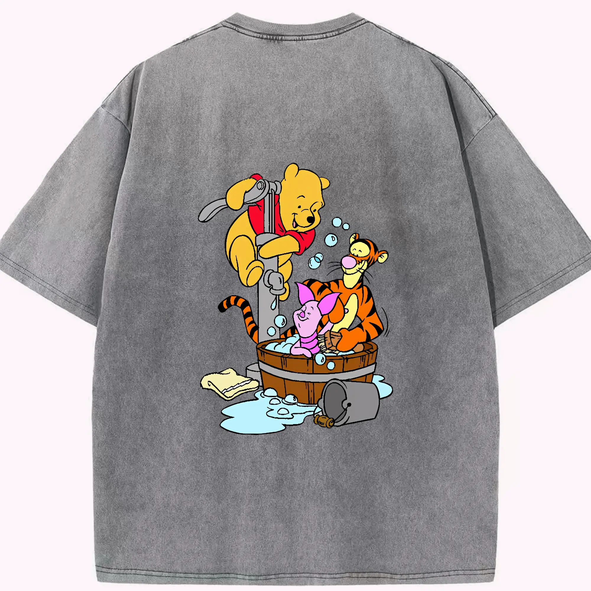 プーさん グッズ ティガー - 綿100% 半袖Tシャツ ・ バックプリント ・ 快適 通気性 ・ 日常使い 散歩 スポーツ用