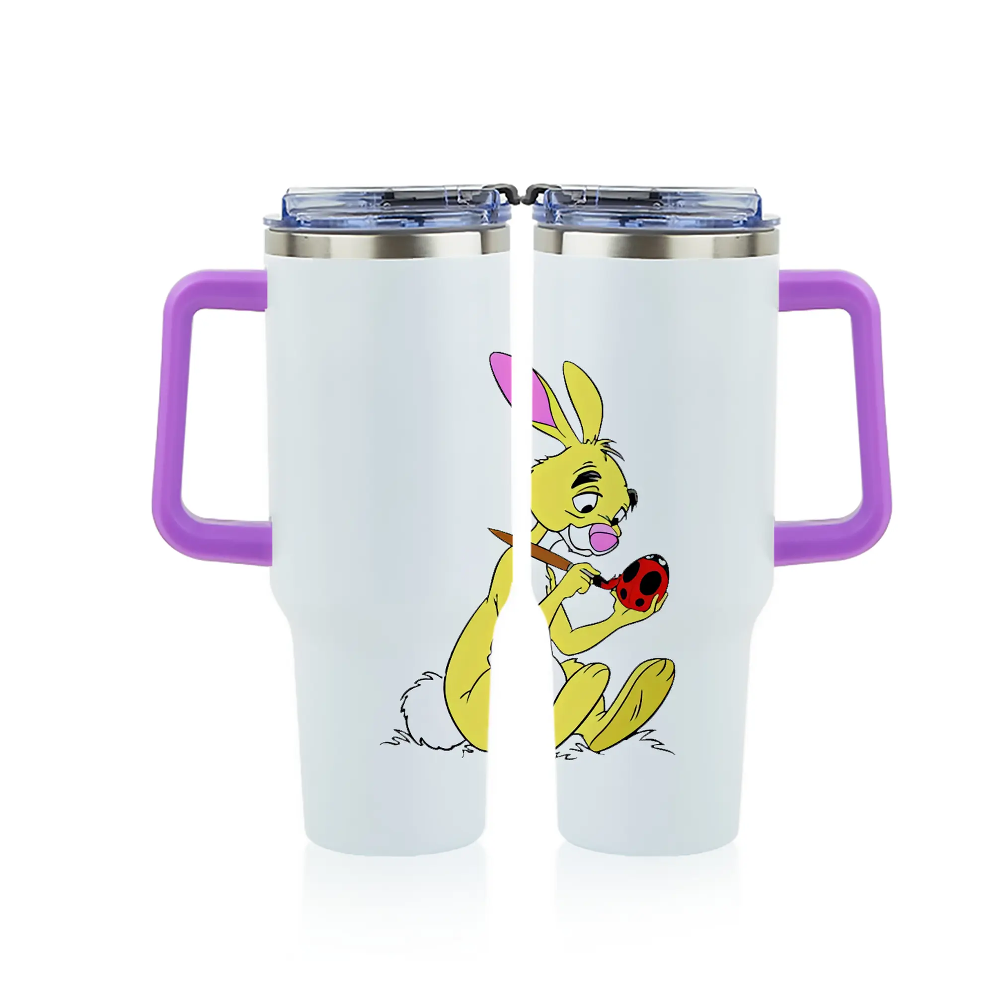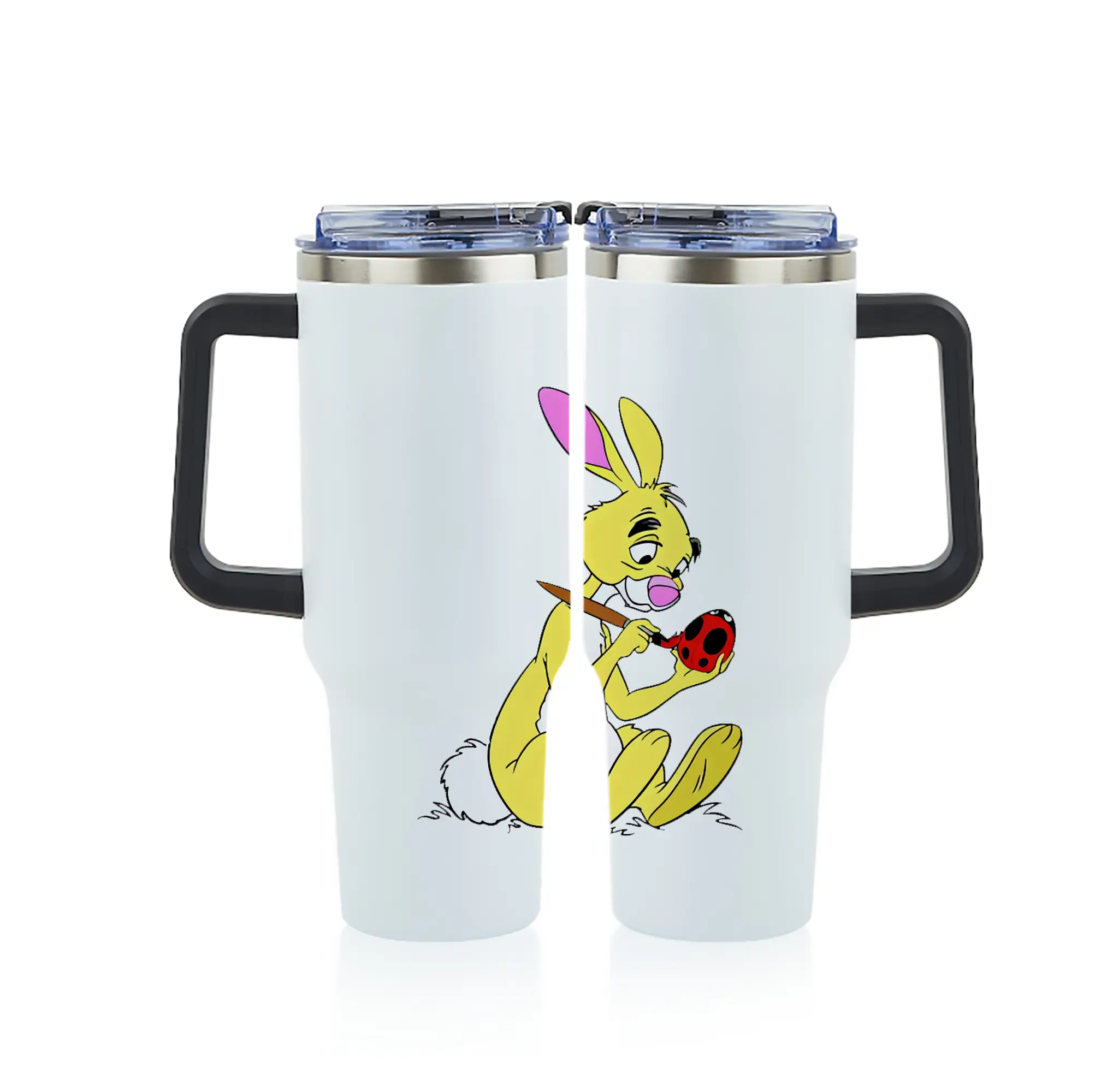 プーさん グッズ ラビット - 1200mL フルプリント車用タンブラー ・ 304ステンレス 内側 ・ 201ステンレス 外側 ・ 保温 保冷 ・ 通勤 ドライブ アウトドア用