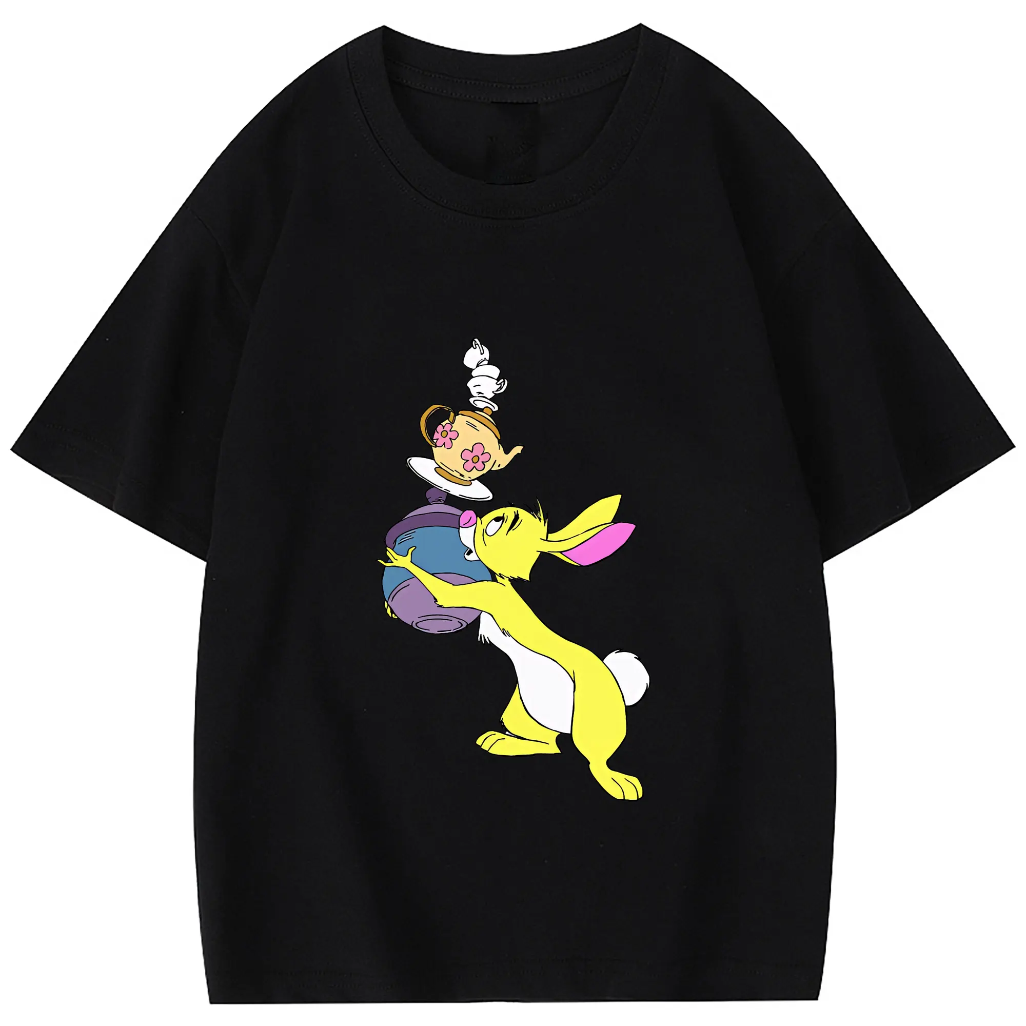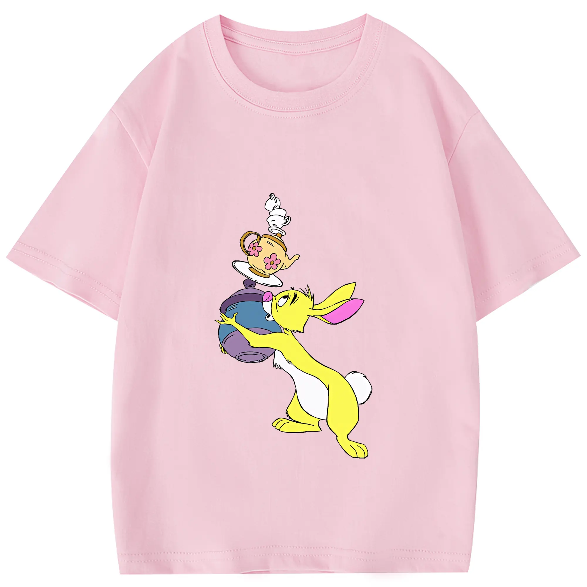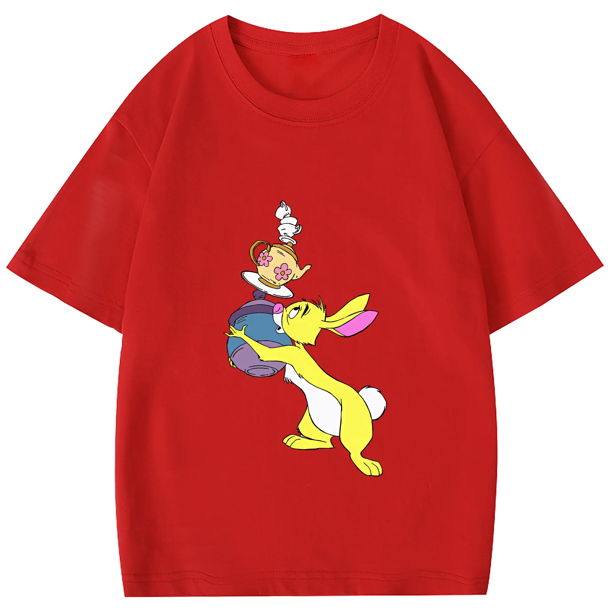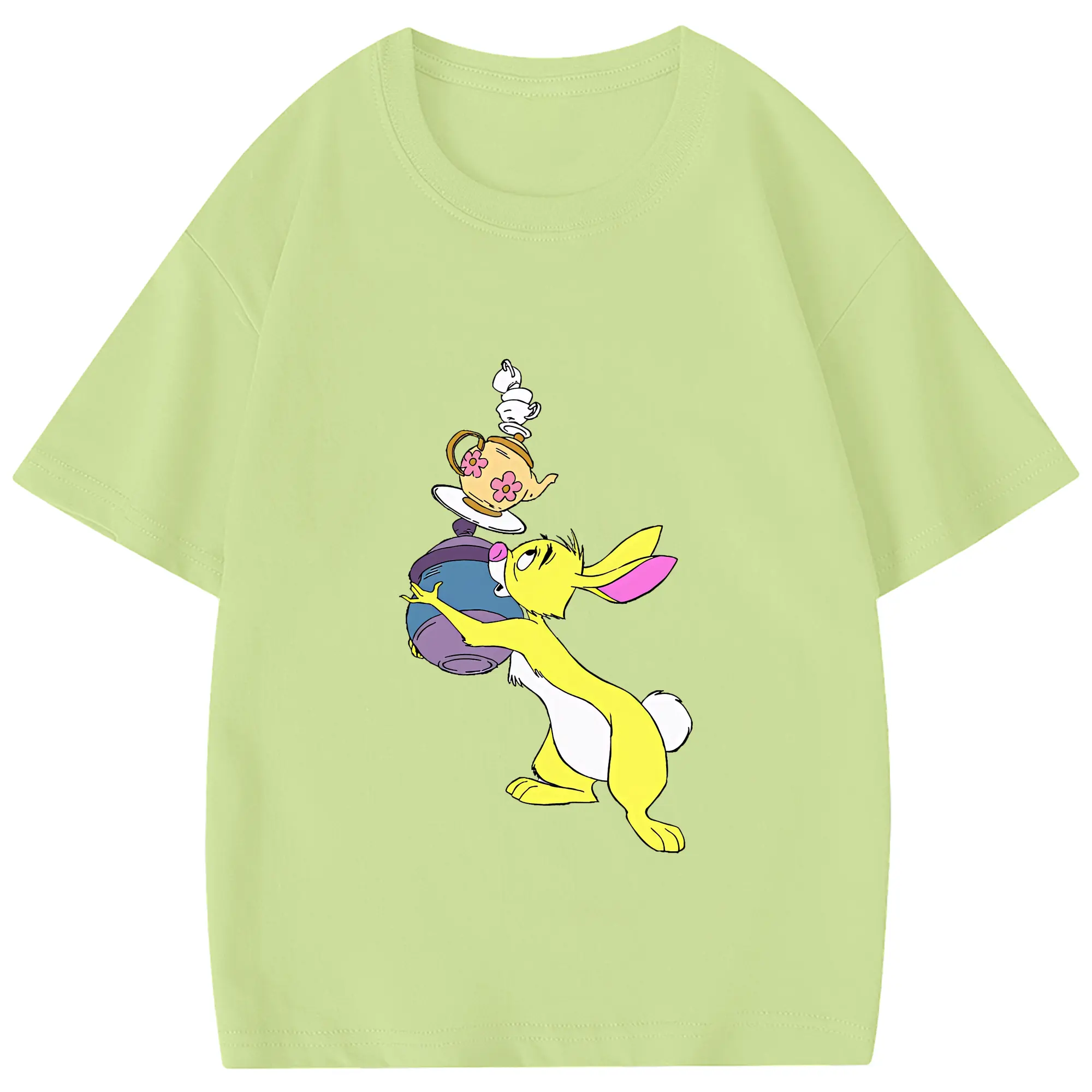 プーさん グッズ ラビット - 綿100% 半袖Tシャツ ・ フロントプリント ・ 快適 通気性 ・ 日常使い 散歩 スポーツ用