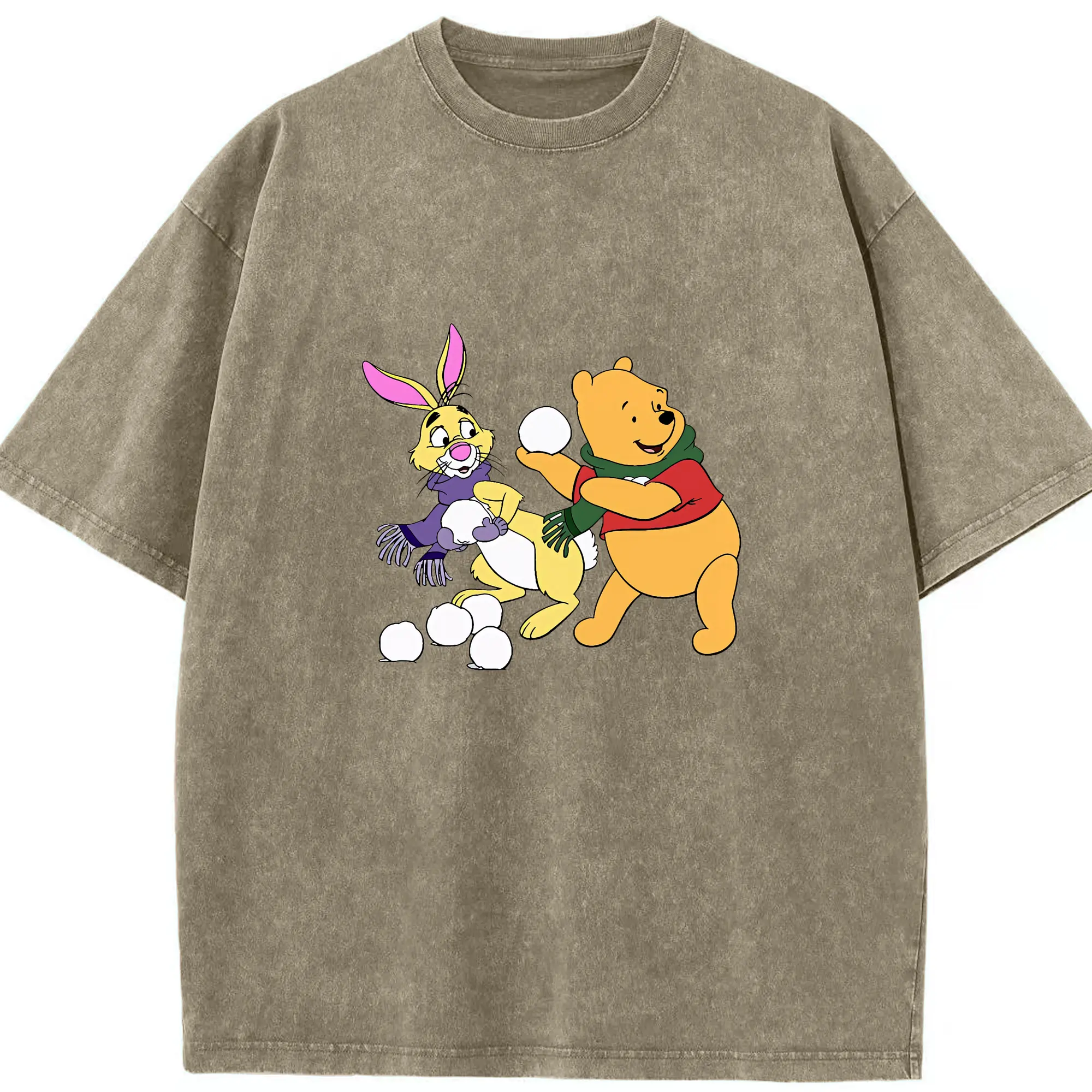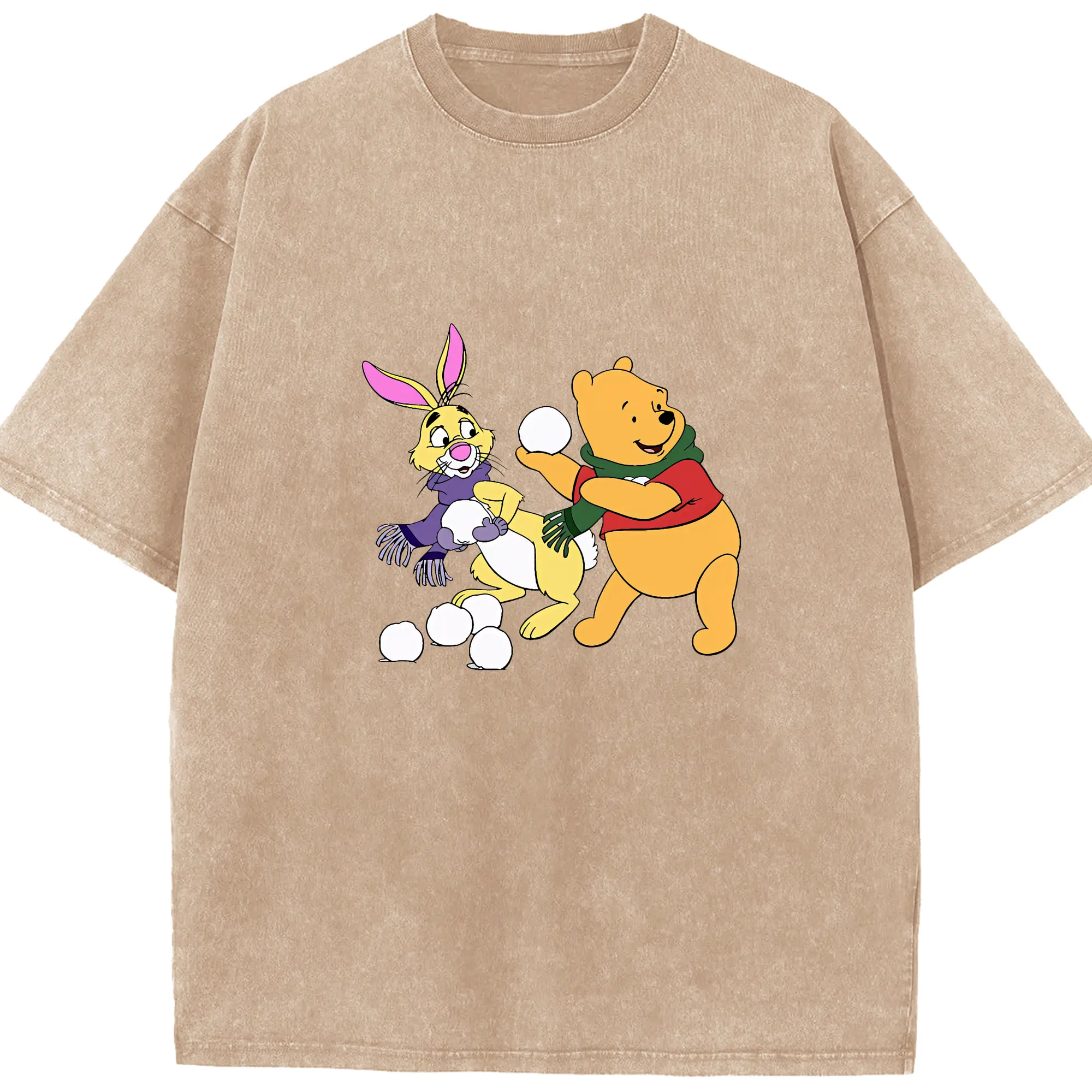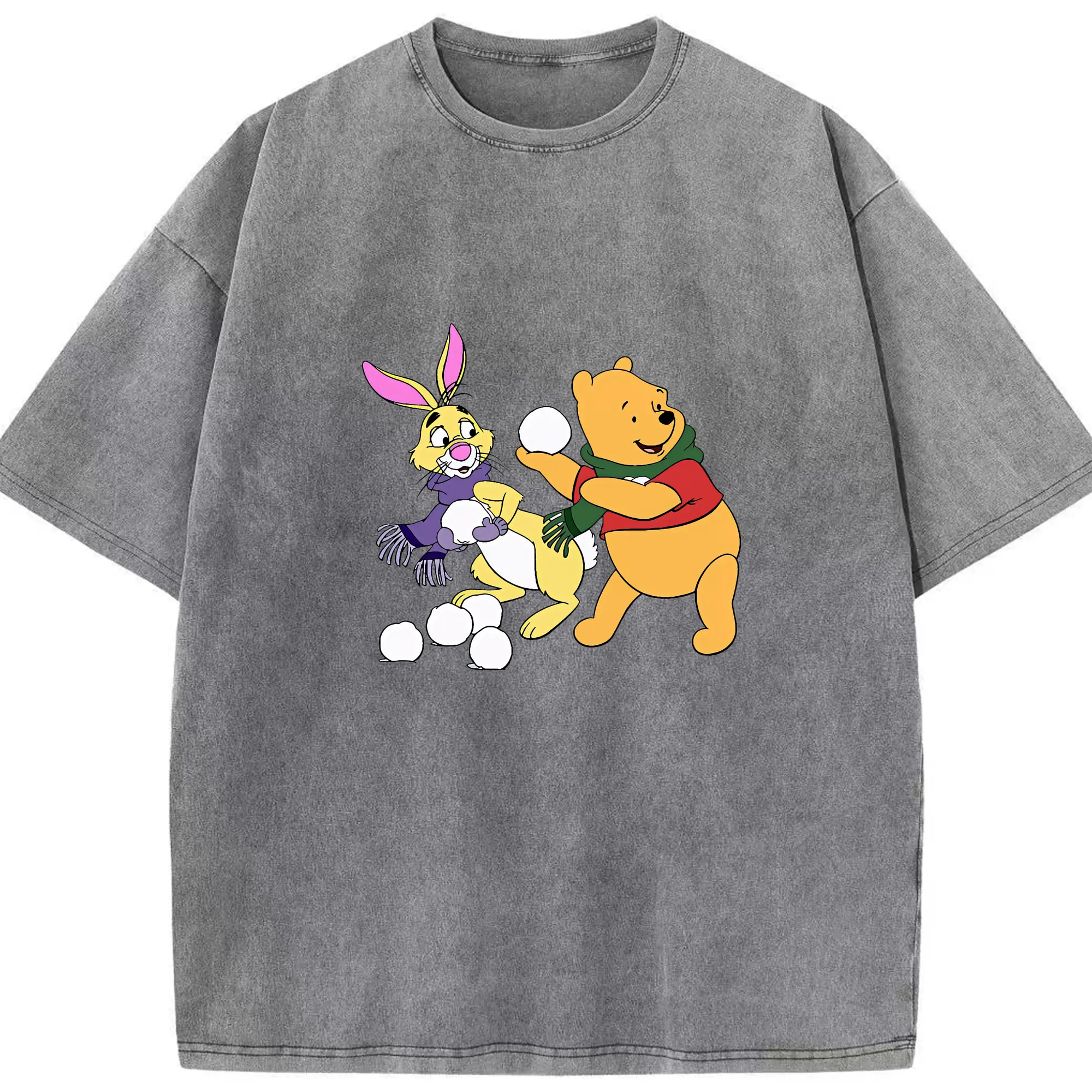プーさん グッズ ラビット - 綿100% ヴィンテージ風 半袖Tシャツ ・ 背面プリント ・ 柔らか肌触り ・ 通気性 快適 ・ スポーツ カジュアル 外出用