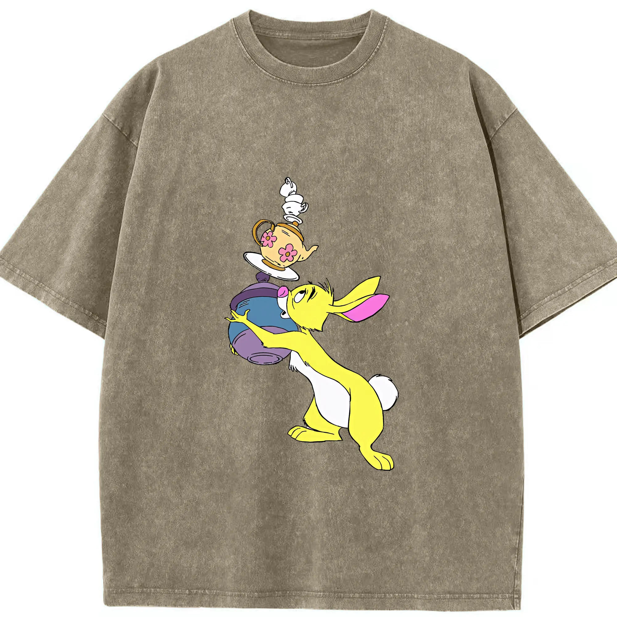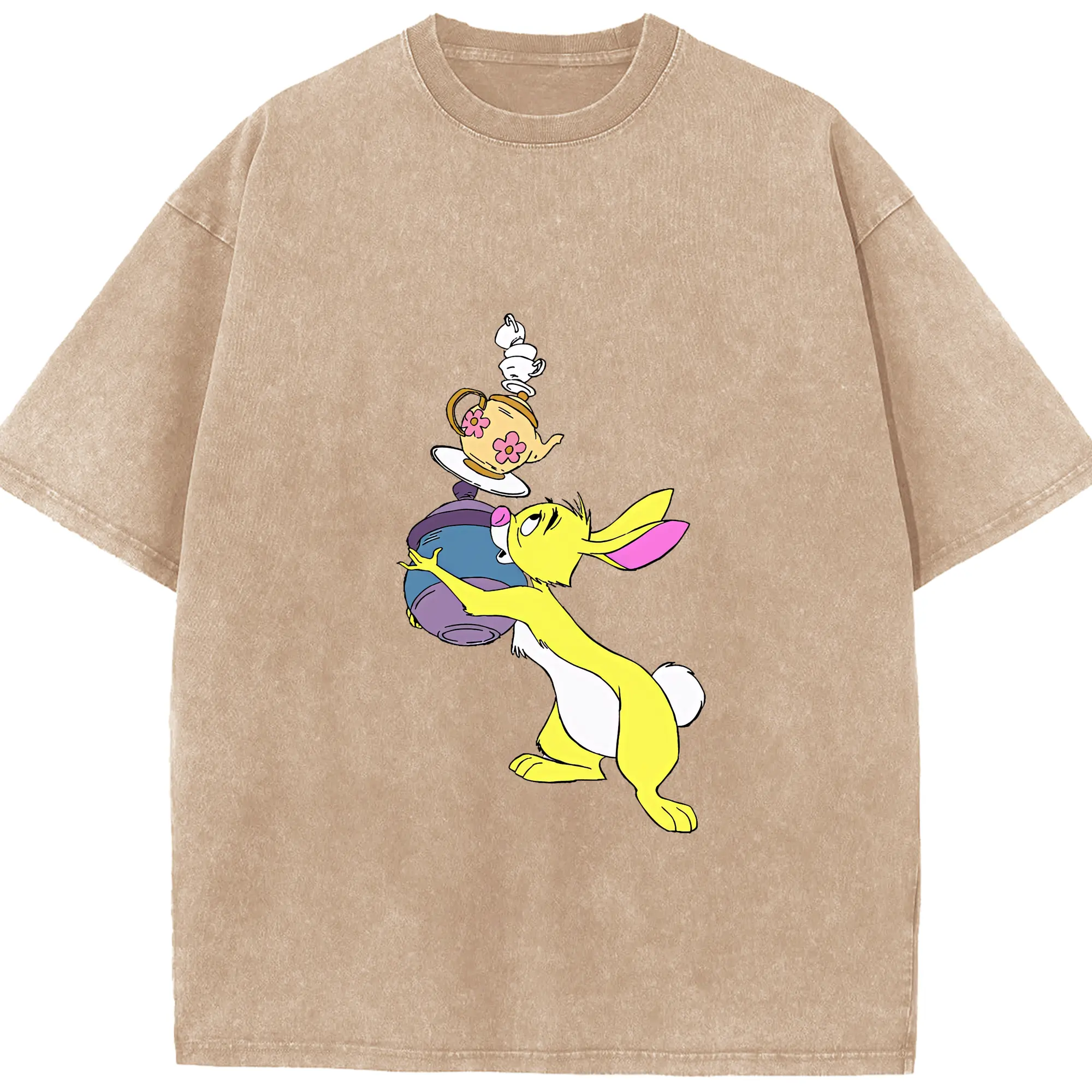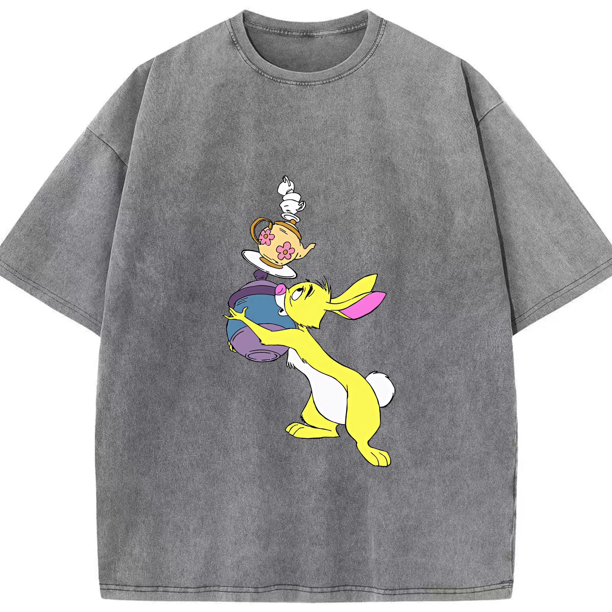 プーさん グッズ ラビット - 綿100% ヴィンテージ風 半袖Tシャツ ・ 背面プリント ・ 柔らか肌触り ・ 通気性 快適 ・ スポーツ カジュアル 外出用