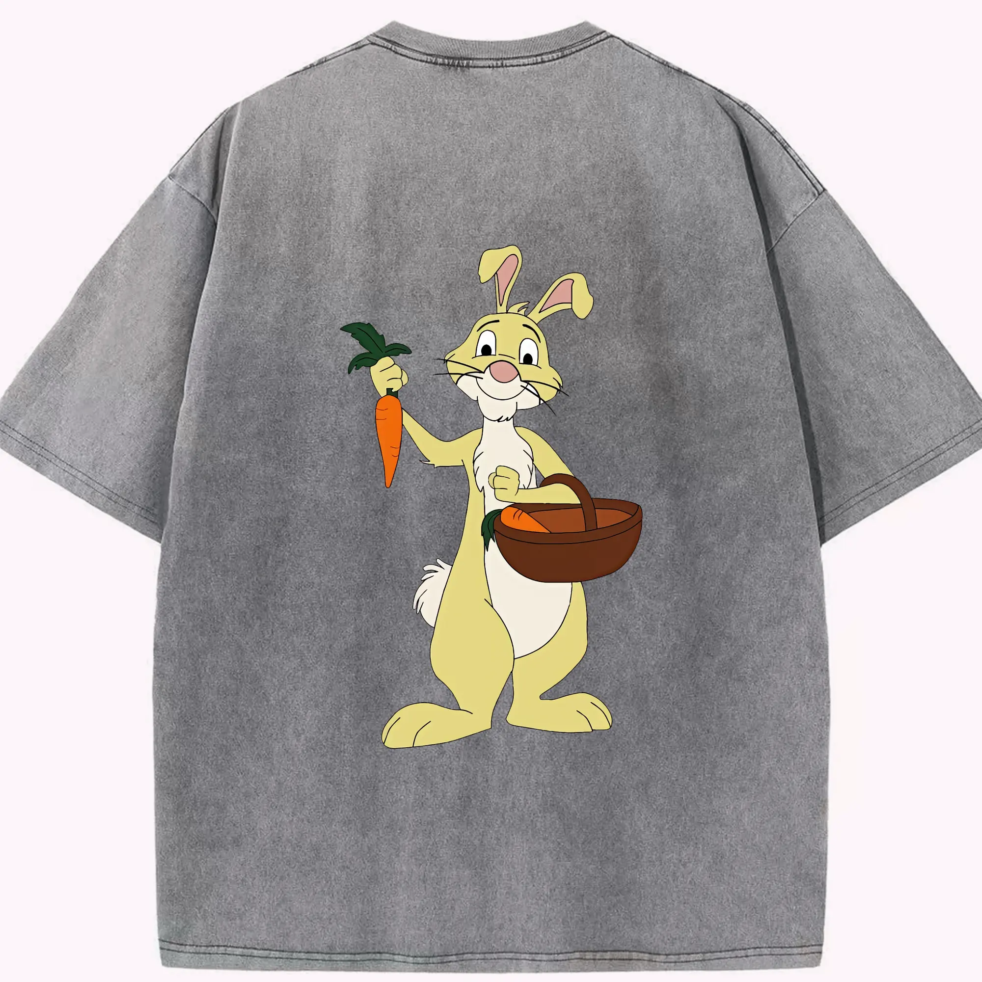 プーさん グッズ ラビット - 綿100% ヴィンテージ風 半袖Tシャツ ・ フロントプリント ・ 柔らか肌触り ・ 通気性 快適 ・ スポーツ カジュアル 外出用