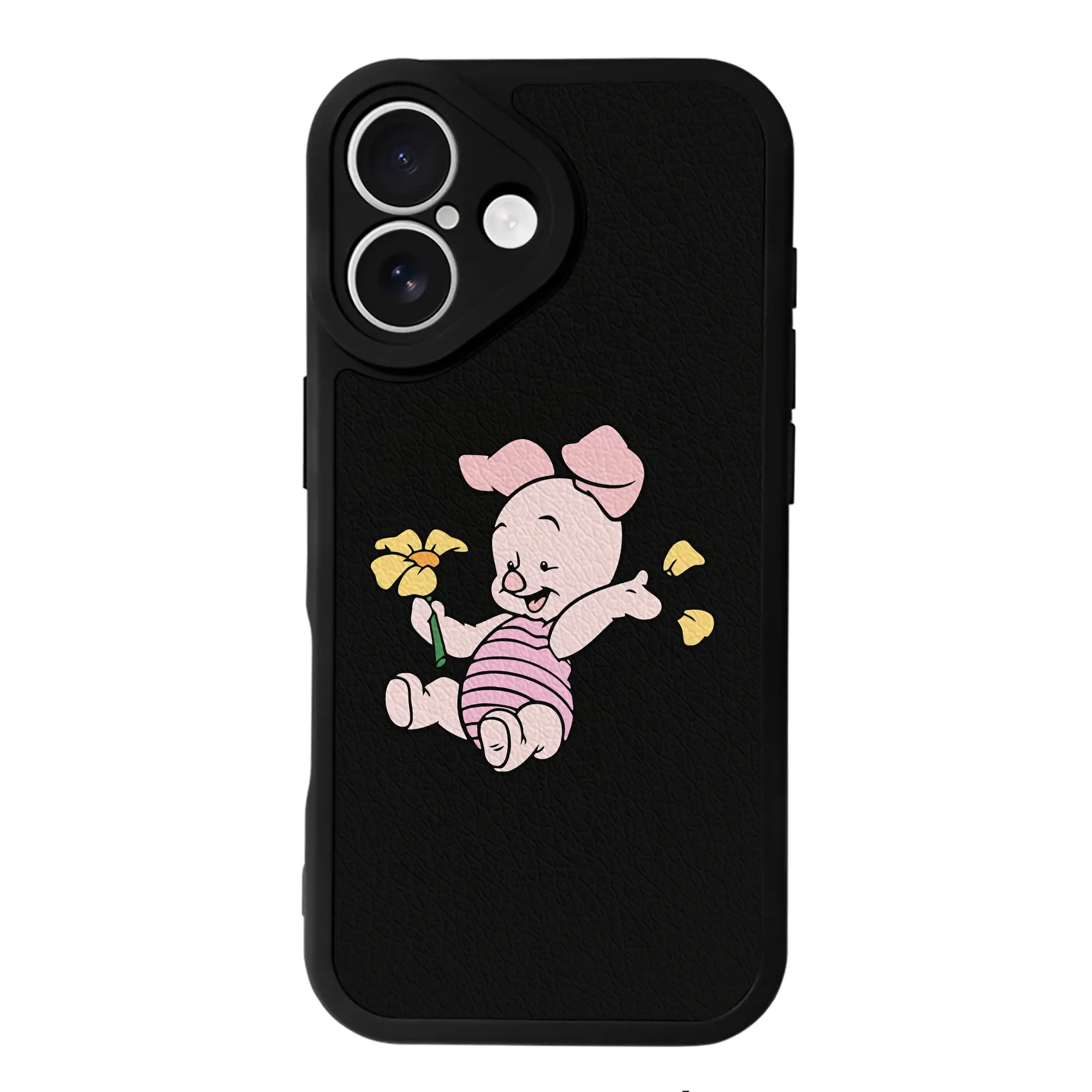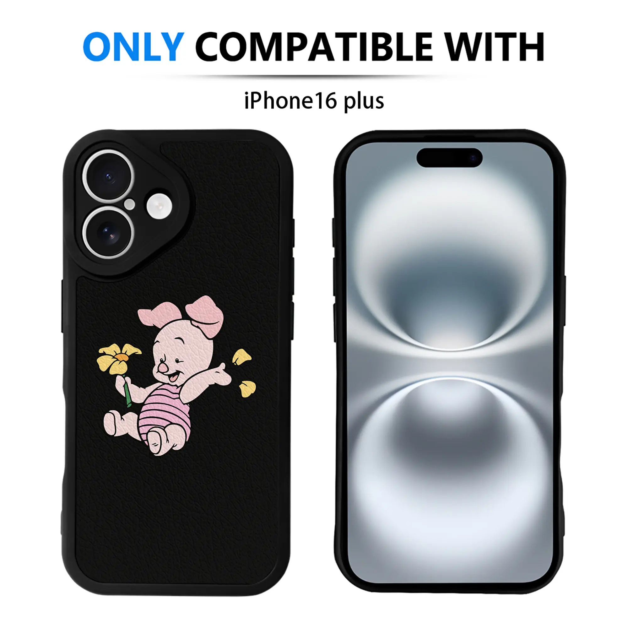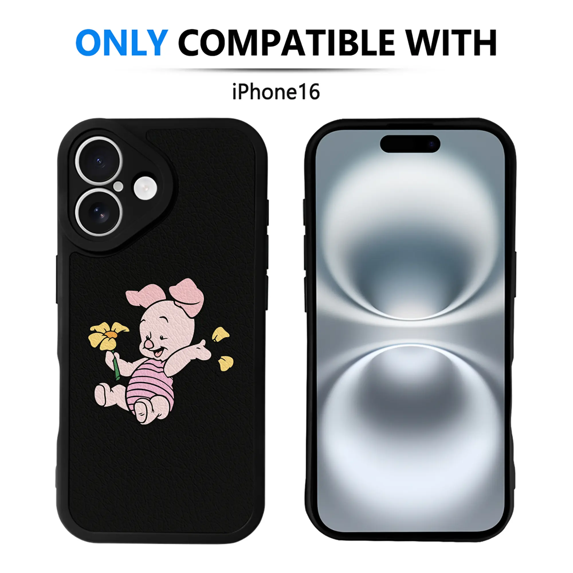 プーさん グッズ ピグレット - IPhone 16シリーズ対応 ・ シリコンスマホケース ・ レザー調 ・ 高精度フィット ・ 耐衝撃 ・ ワイヤレス充電対応 ・ 精密カット