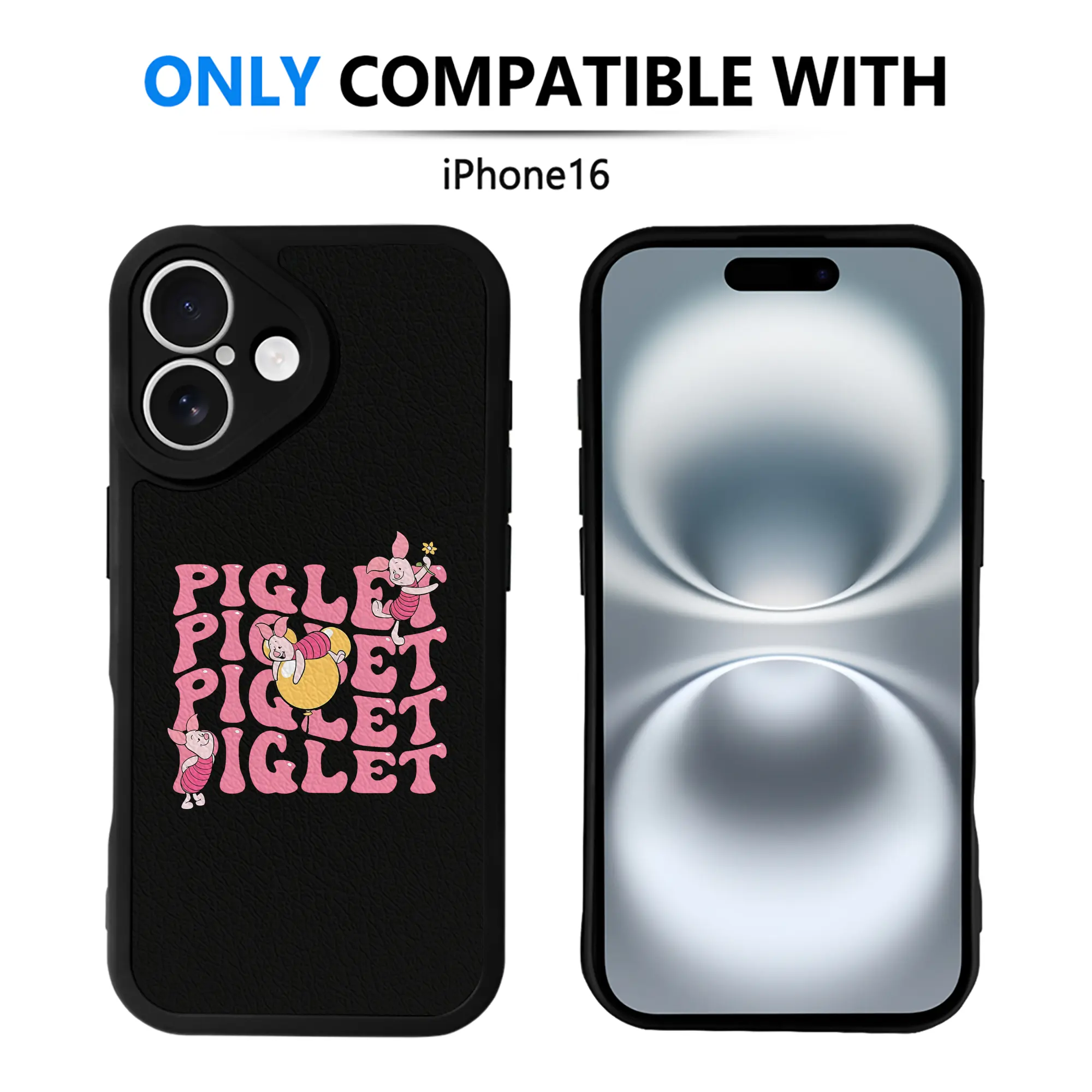 プーさん グッズ ピグレット - IPhone 16シリーズ対応 ・ シリコンスマホケース ・ レザー調 ・ 高精度フィット ・ 耐衝撃 ・ ワイヤレス充電対応 ・ 精密カット