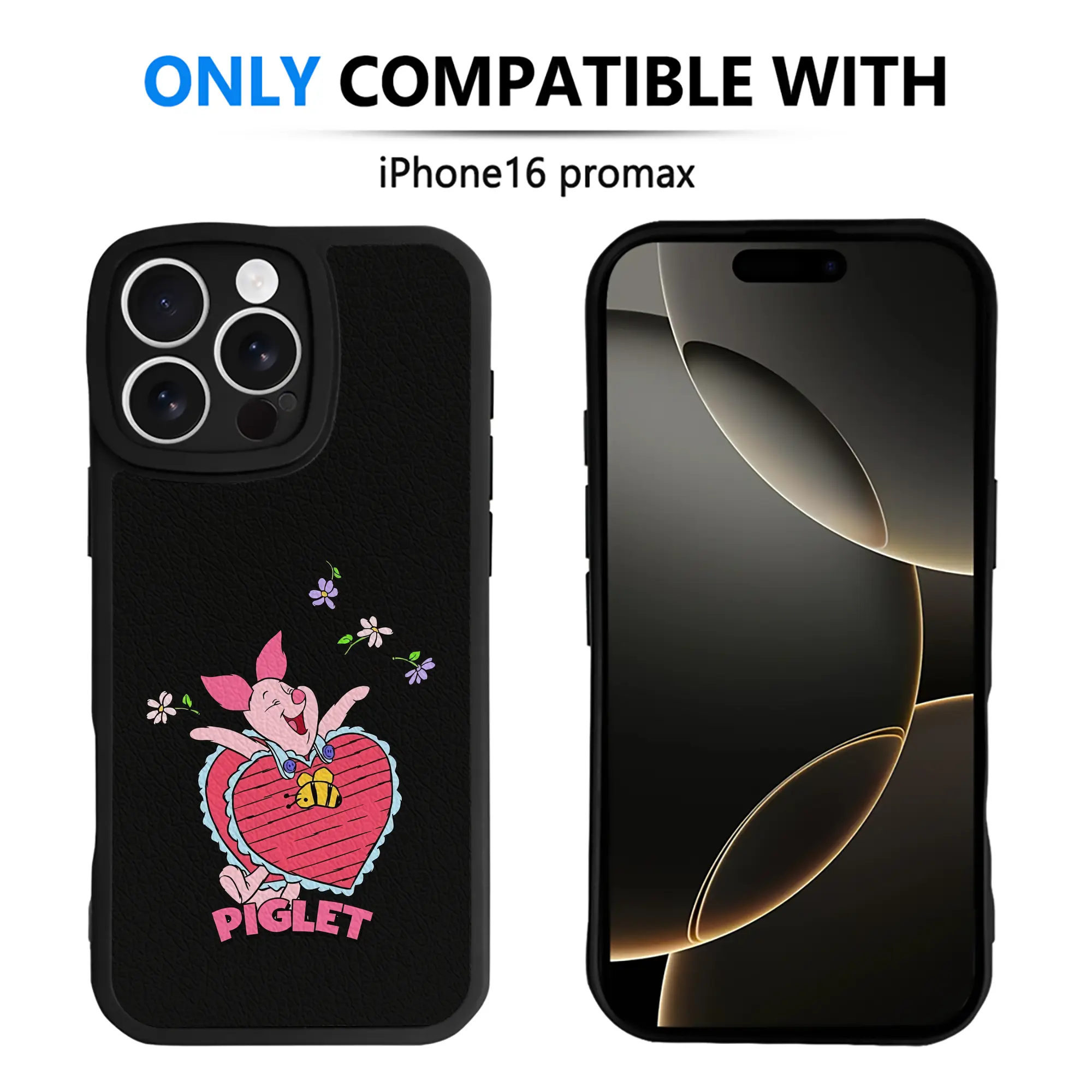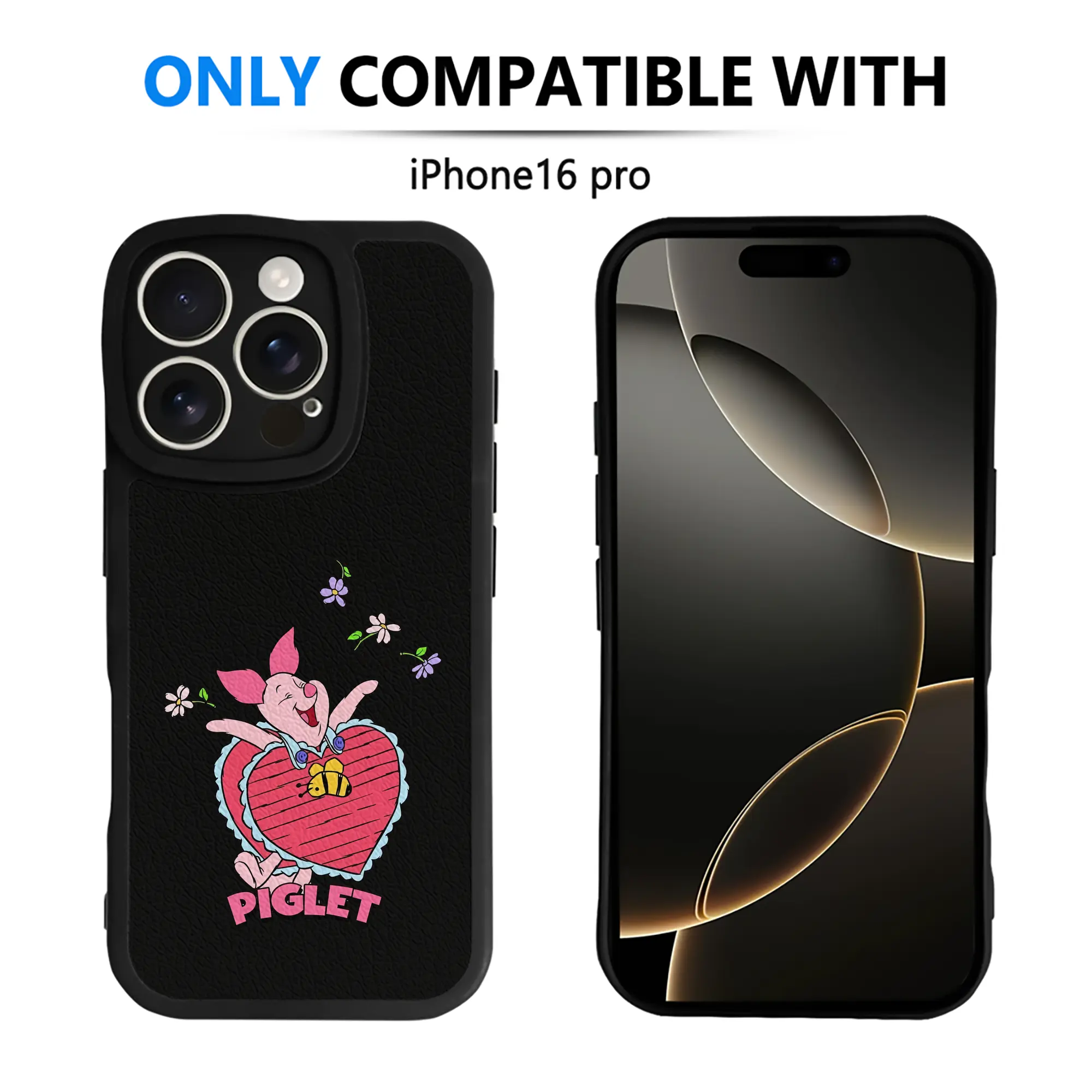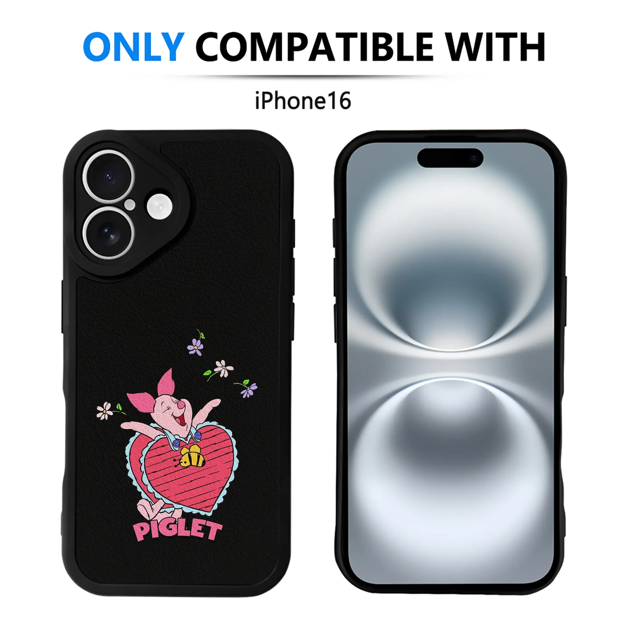 プーさん グッズ ピグレット - IPhone 16シリーズ対応 ・ シリコンスマホケース ・ レザー調 ・ 高精度フィット ・ 耐衝撃 ・ ワイヤレス充電対応 ・ 精密カット
