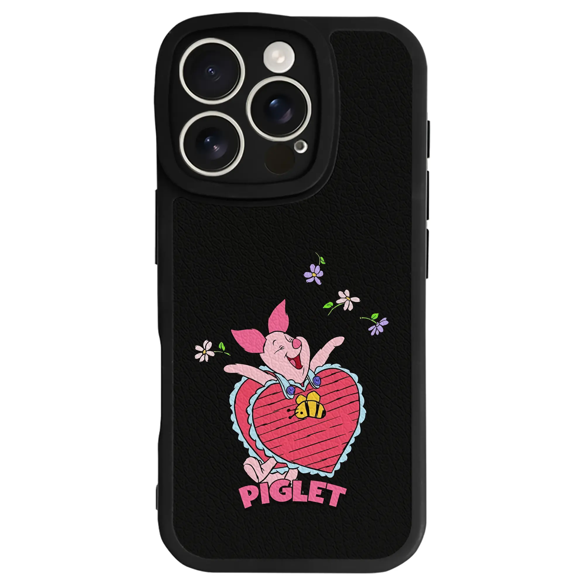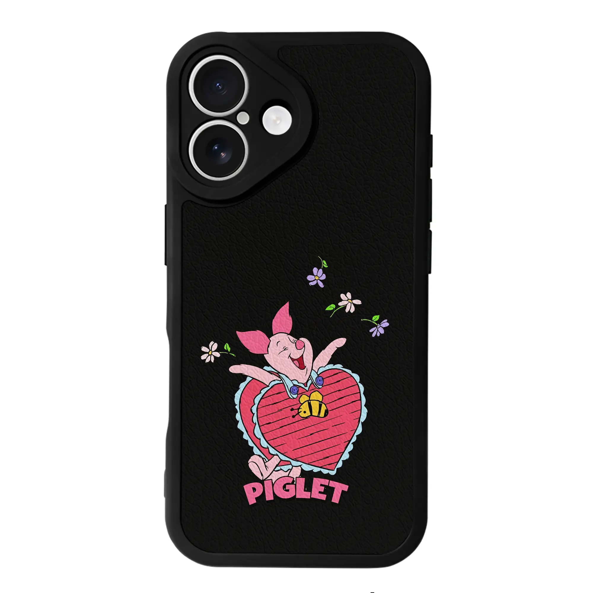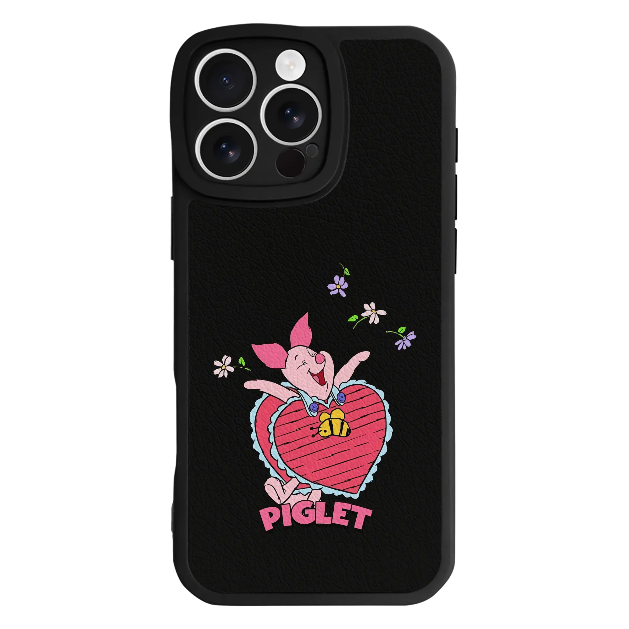 プーさん グッズ ピグレット - IPhone 16シリーズ対応 ・ シリコンスマホケース ・ レザー調 ・ 高精度フィット ・ 耐衝撃 ・ ワイヤレス充電対応 ・ 精密カット
