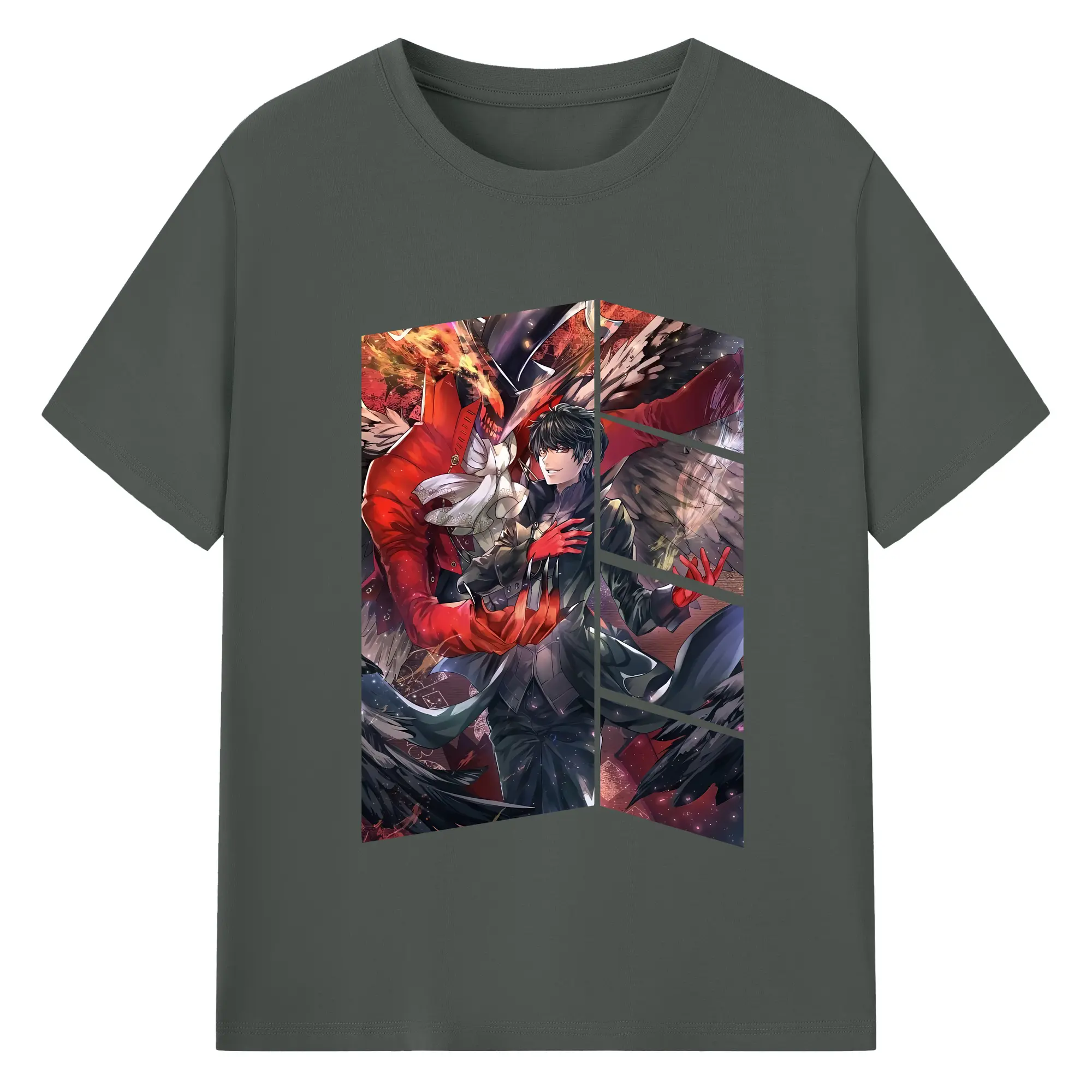 ペルソナ グッズ,主人公 - 綿100% 半袖Tシャツ ・ バックプリント ・ 快適 通気性 ・ 日常使い 散歩 スポーツ用