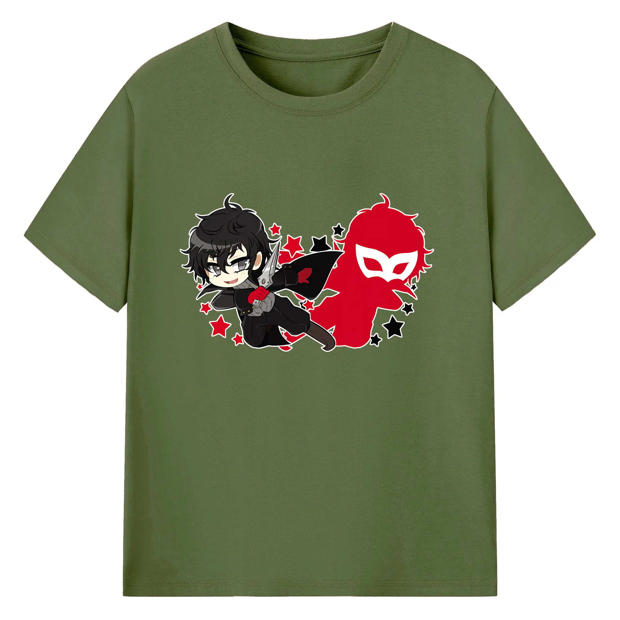 ペルソナ グッズ,主人公 - 綿100% 半袖Tシャツ ・ バックプリント ・ 快適 通気性 ・ 日常使い 散歩 スポーツ用
