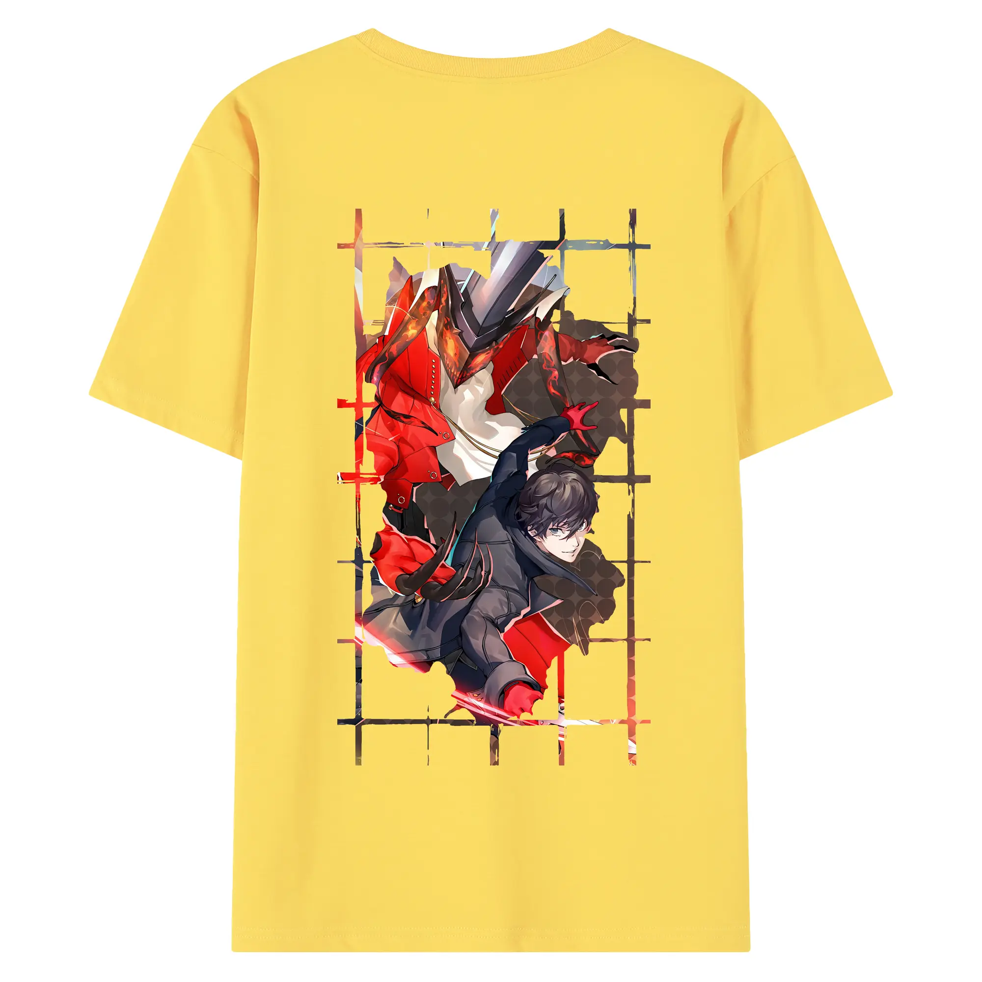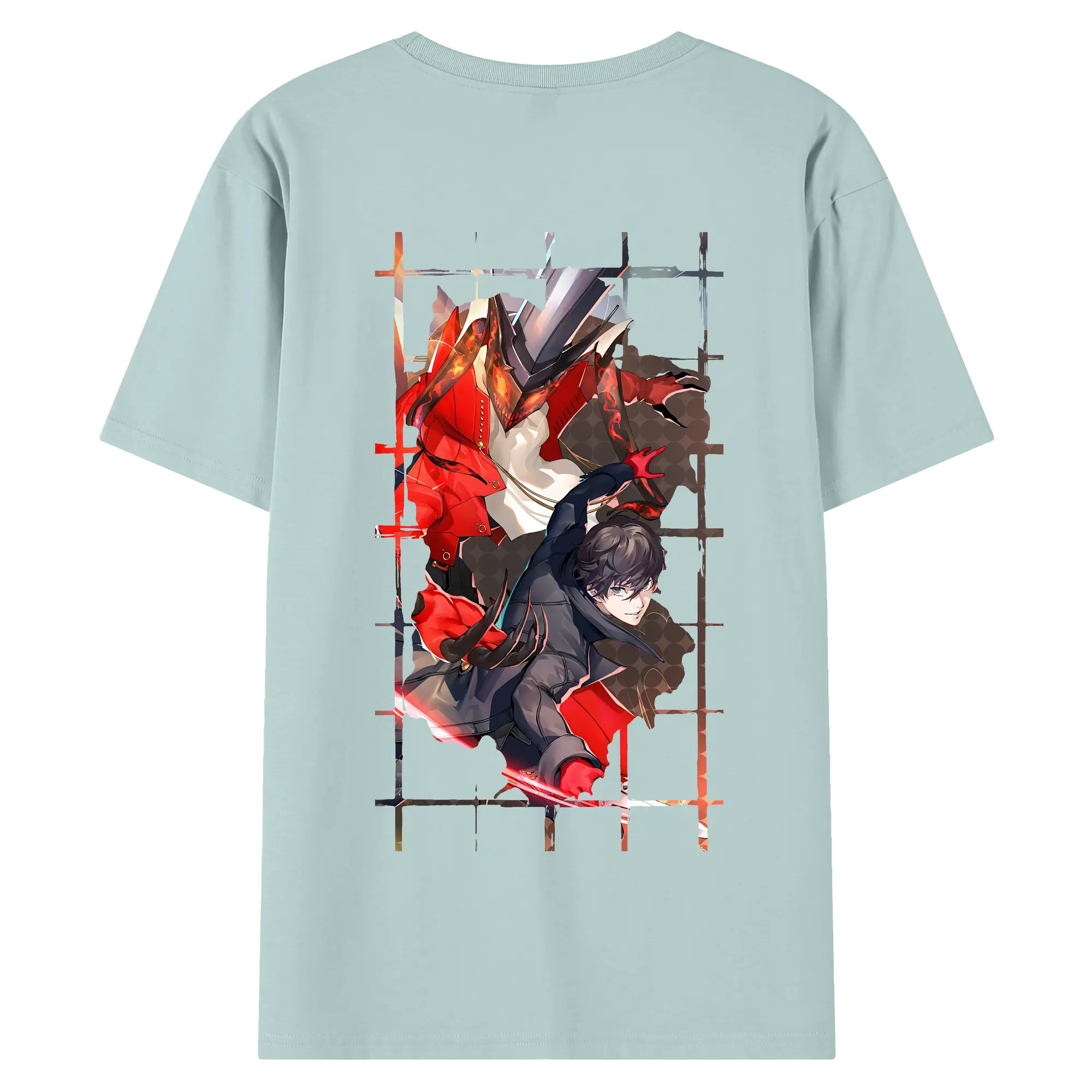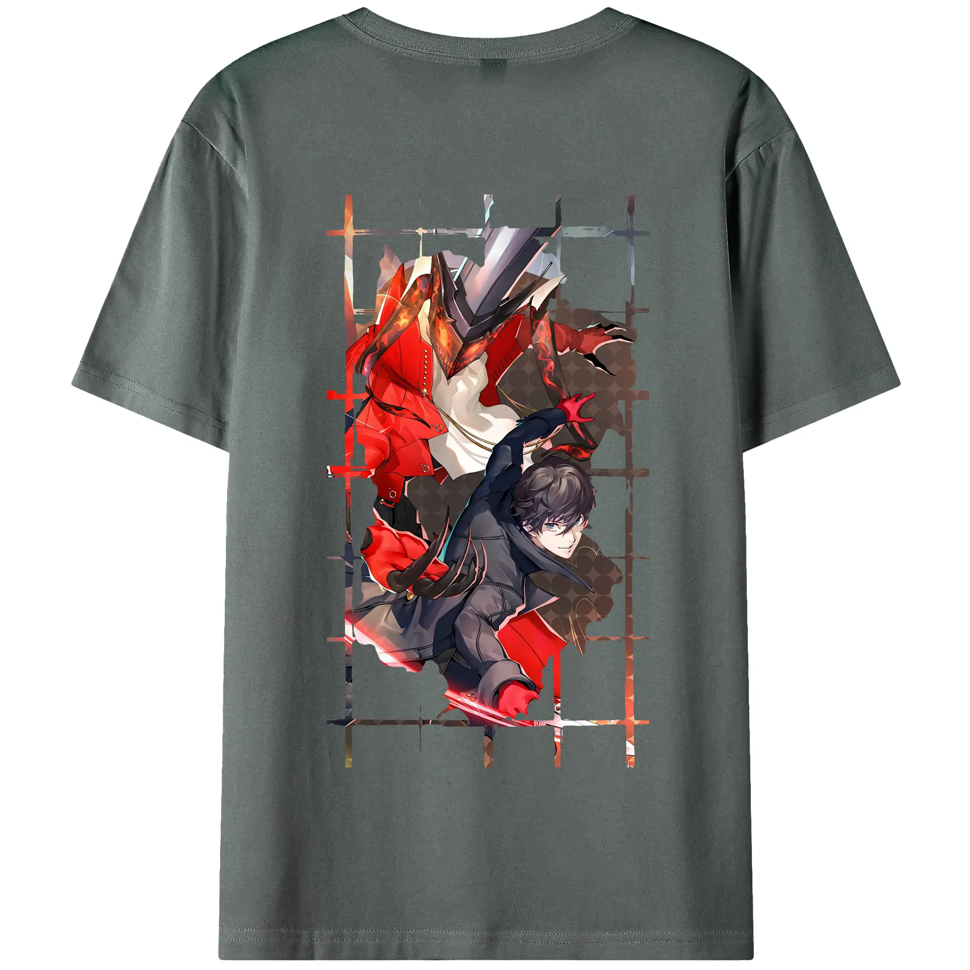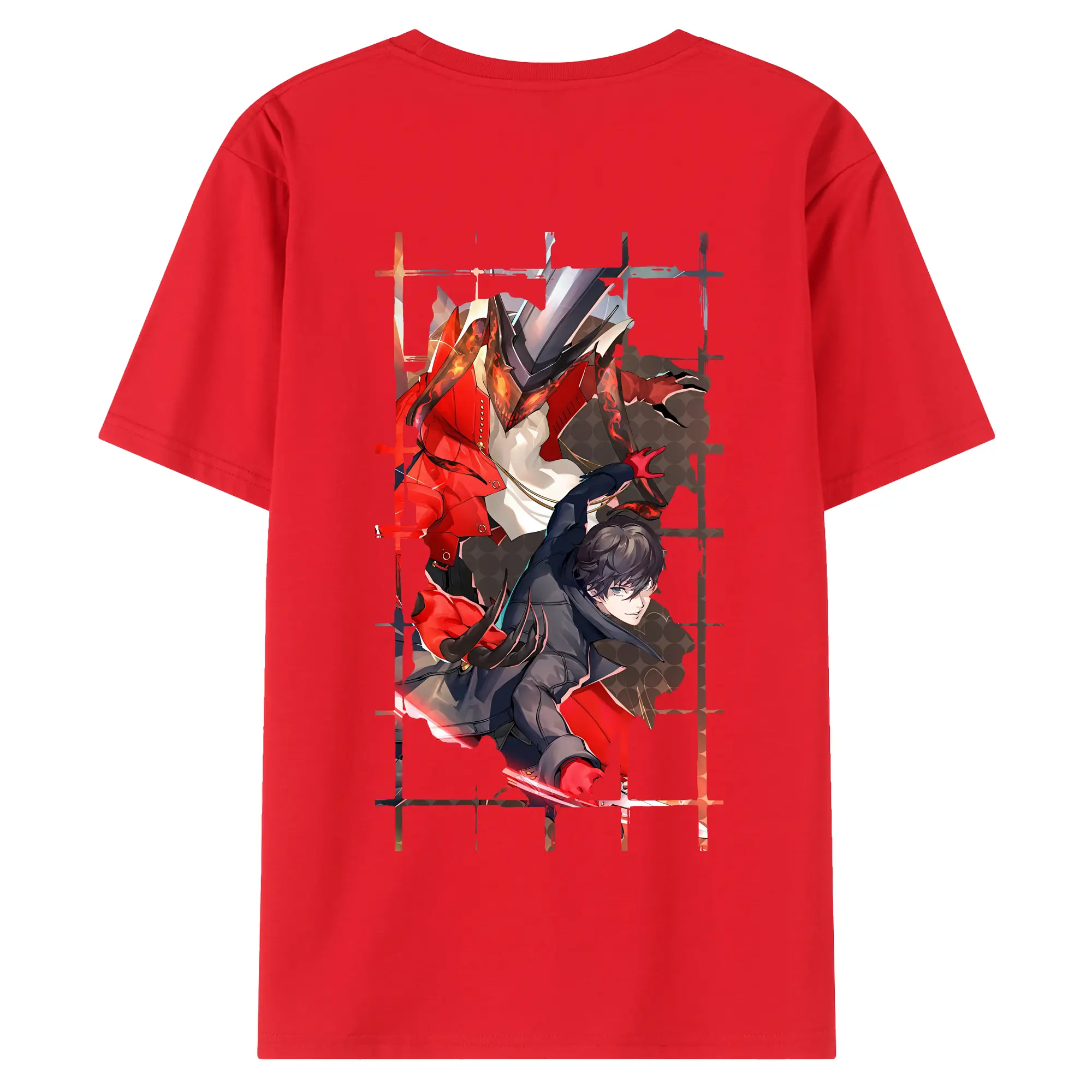 ペルソナ グッズ,主人公 - 綿100% 半袖Tシャツ ・ フロントプリント ・ 快適 通気性 ・ 日常使い 散歩 スポーツ用