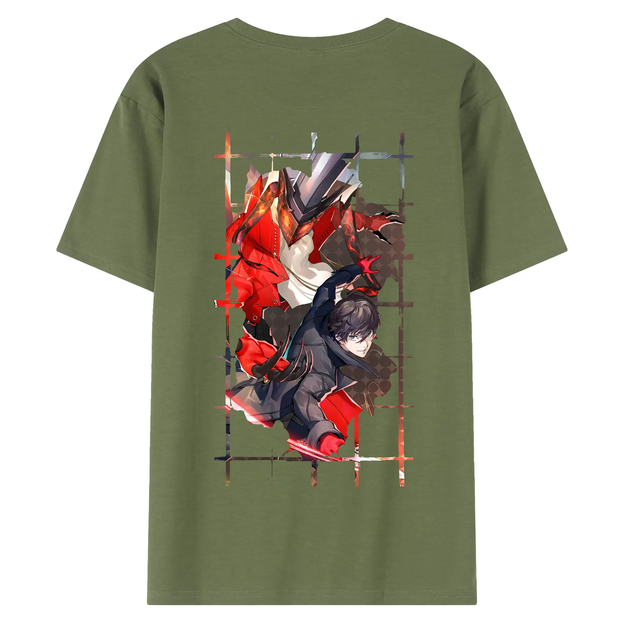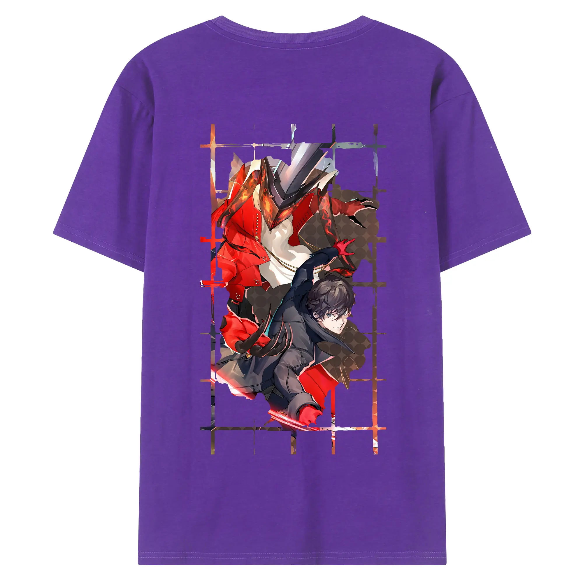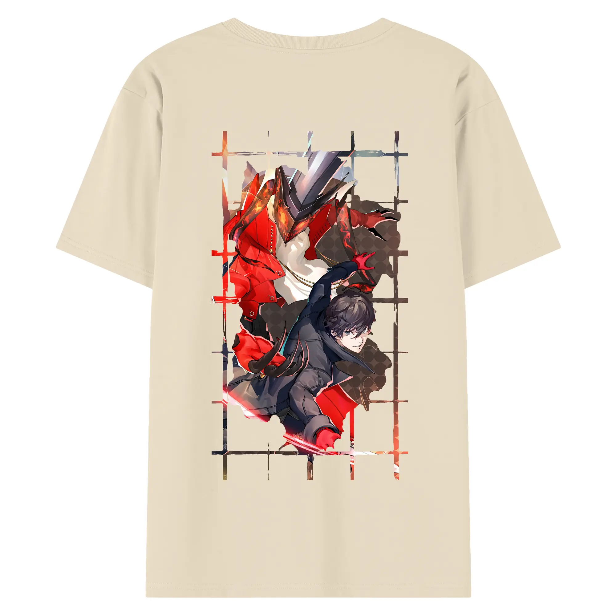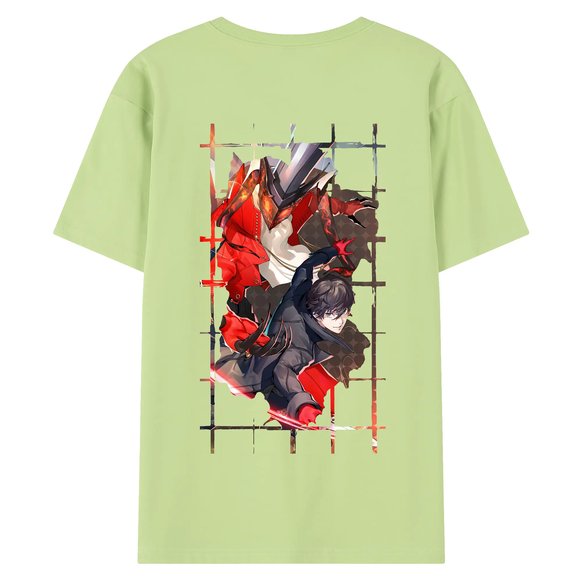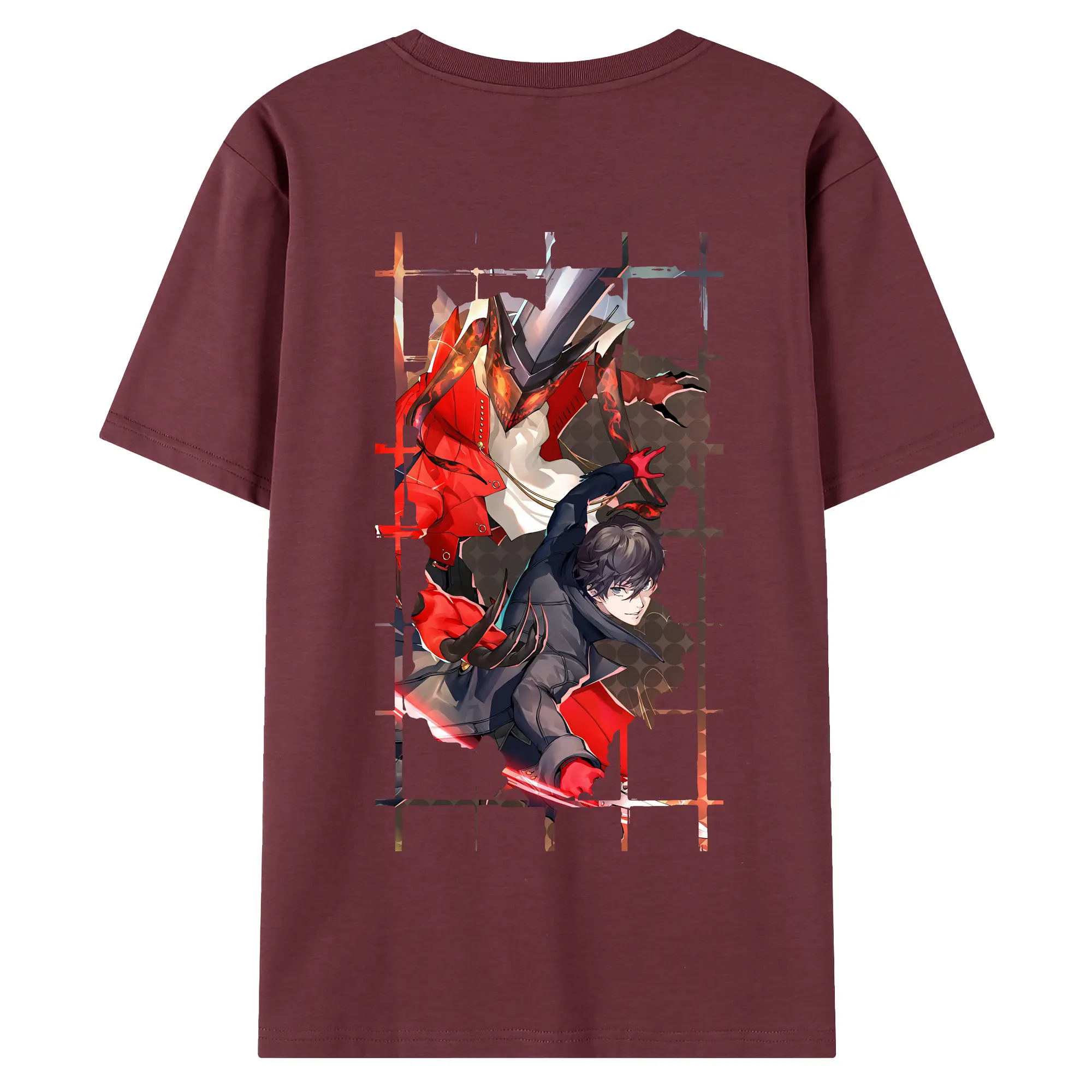 ペルソナ グッズ,主人公 - 綿100% 半袖Tシャツ ・ フロントプリント ・ 快適 通気性 ・ 日常使い 散歩 スポーツ用