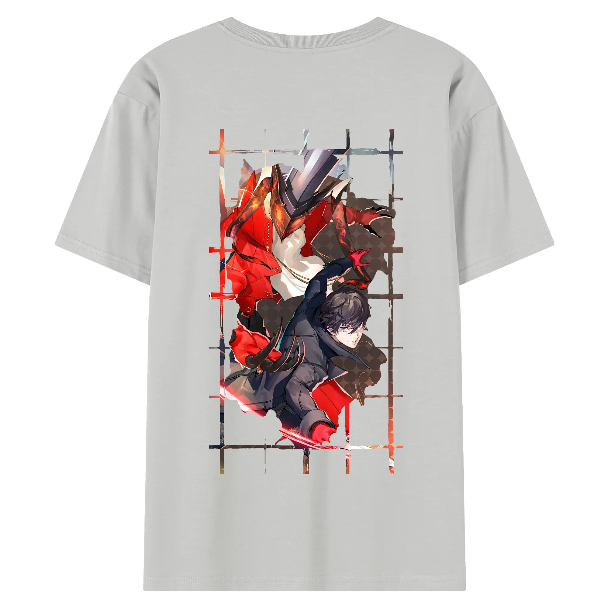 ペルソナ グッズ,主人公 - 綿100% ヴィンテージ風 半袖Tシャツ ・ 背面プリント ・ 柔らか肌触り ・ 通気性 快適 ・ スポーツ カジュアル 外出用