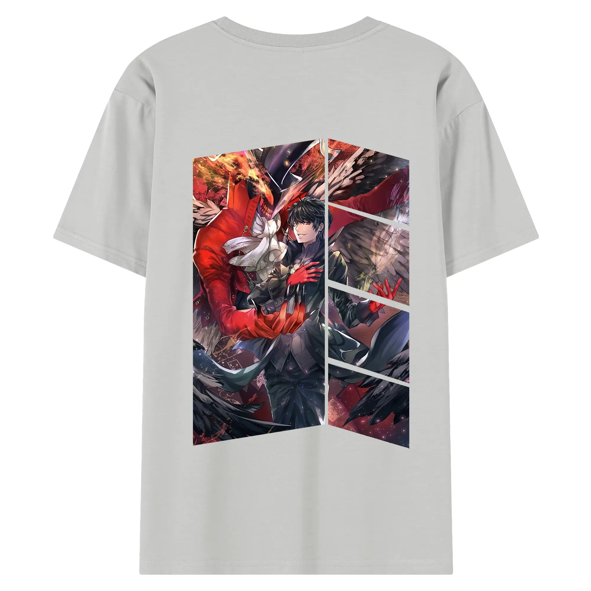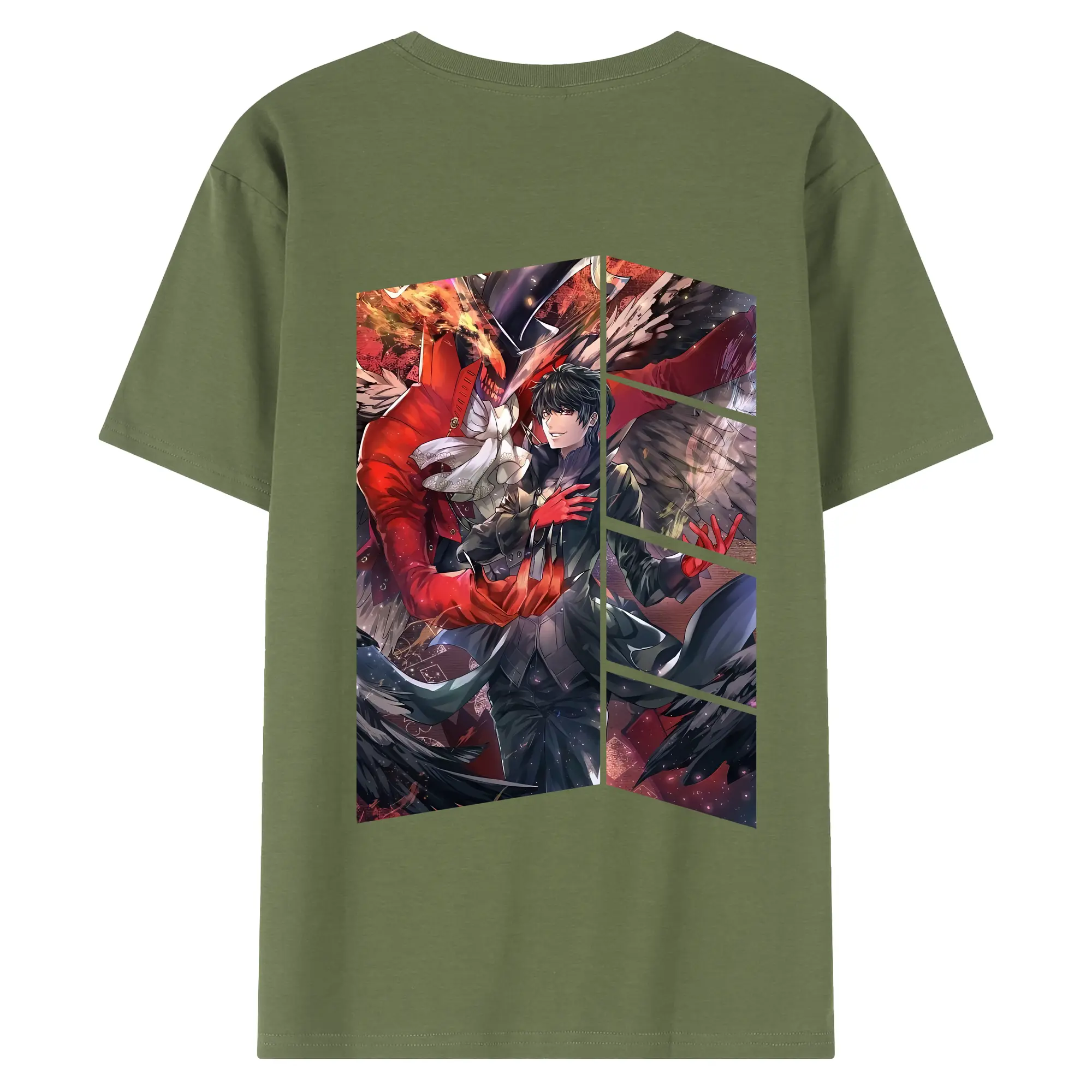 ペルソナ グッズ,主人公 - 綿100% ヴィンテージ風 半袖Tシャツ ・ 背面プリント ・ 柔らか肌触り ・ 通気性 快適 ・ スポーツ カジュアル 外出用