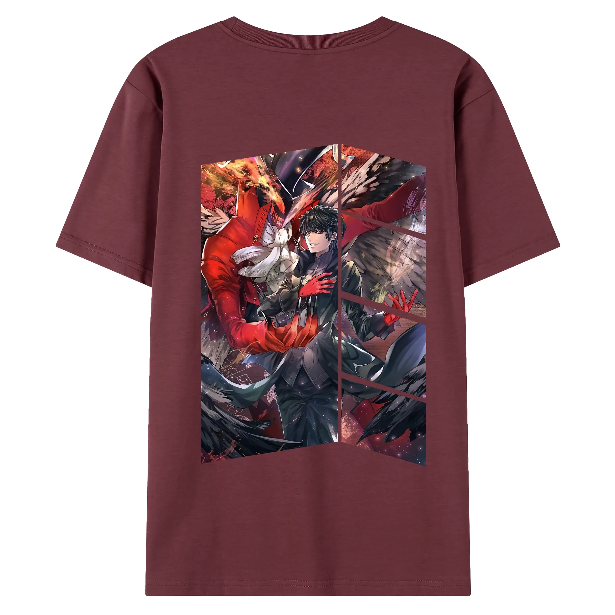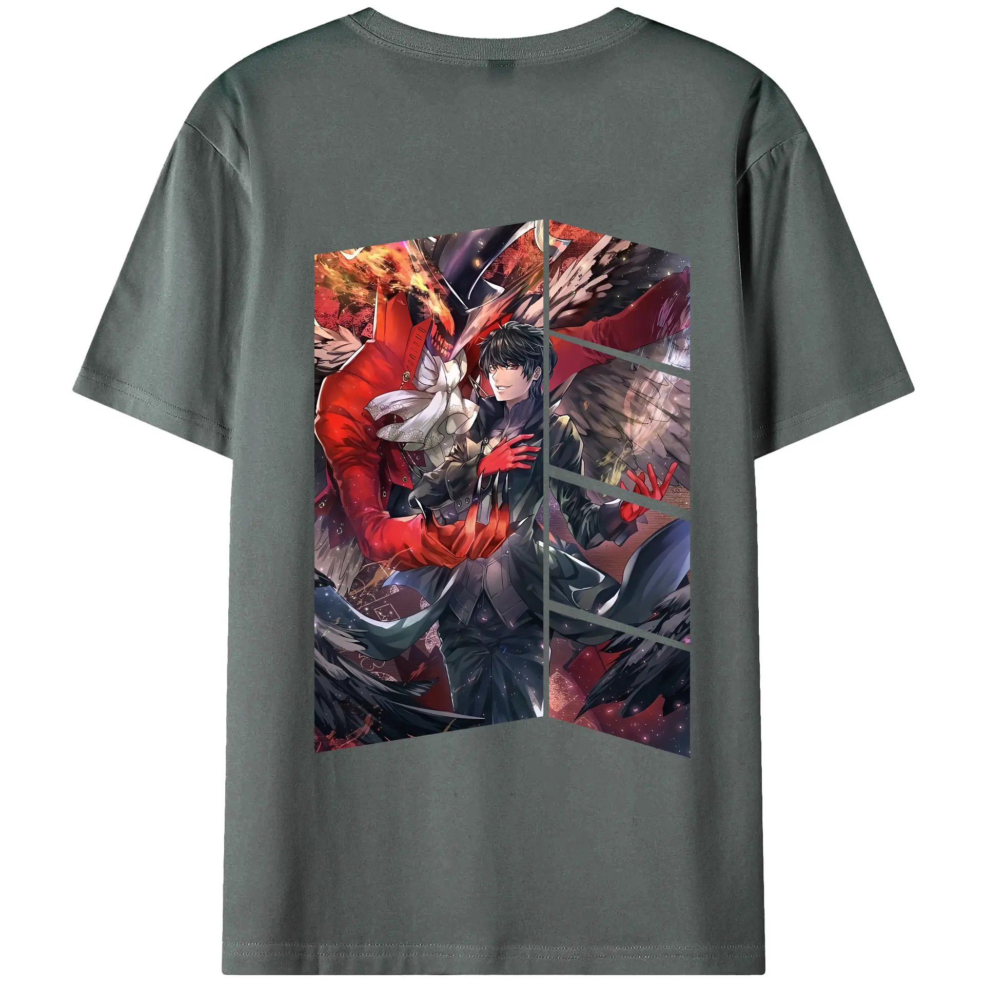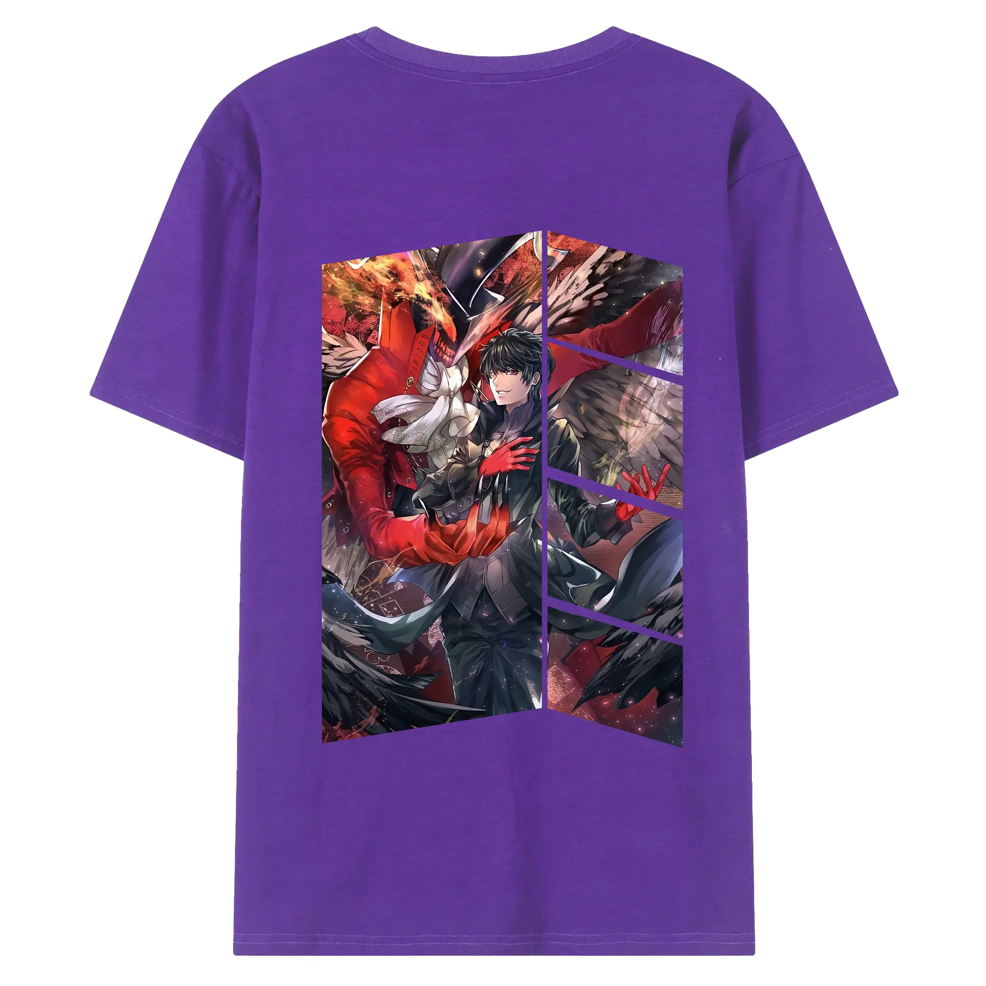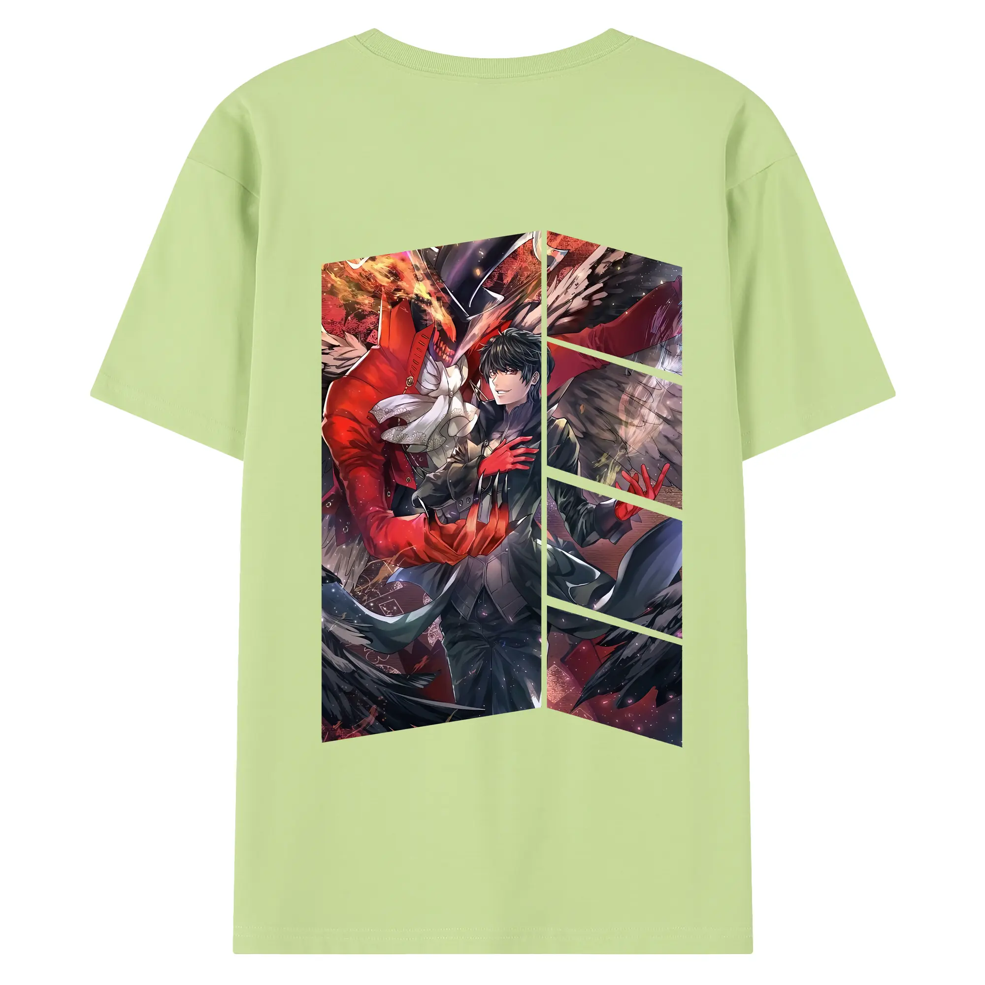 ペルソナ グッズ,主人公 - 綿100% 半袖Tシャツ ・ フロントプリント ・ 快適 通気性 ・ 日常使い 散歩 スポーツ用