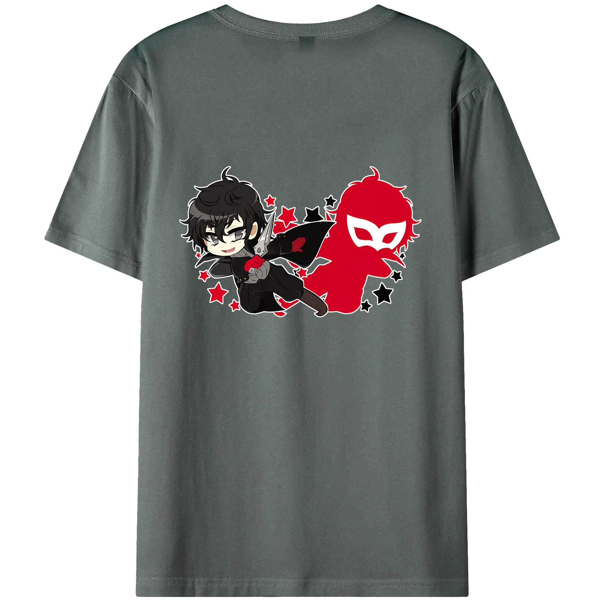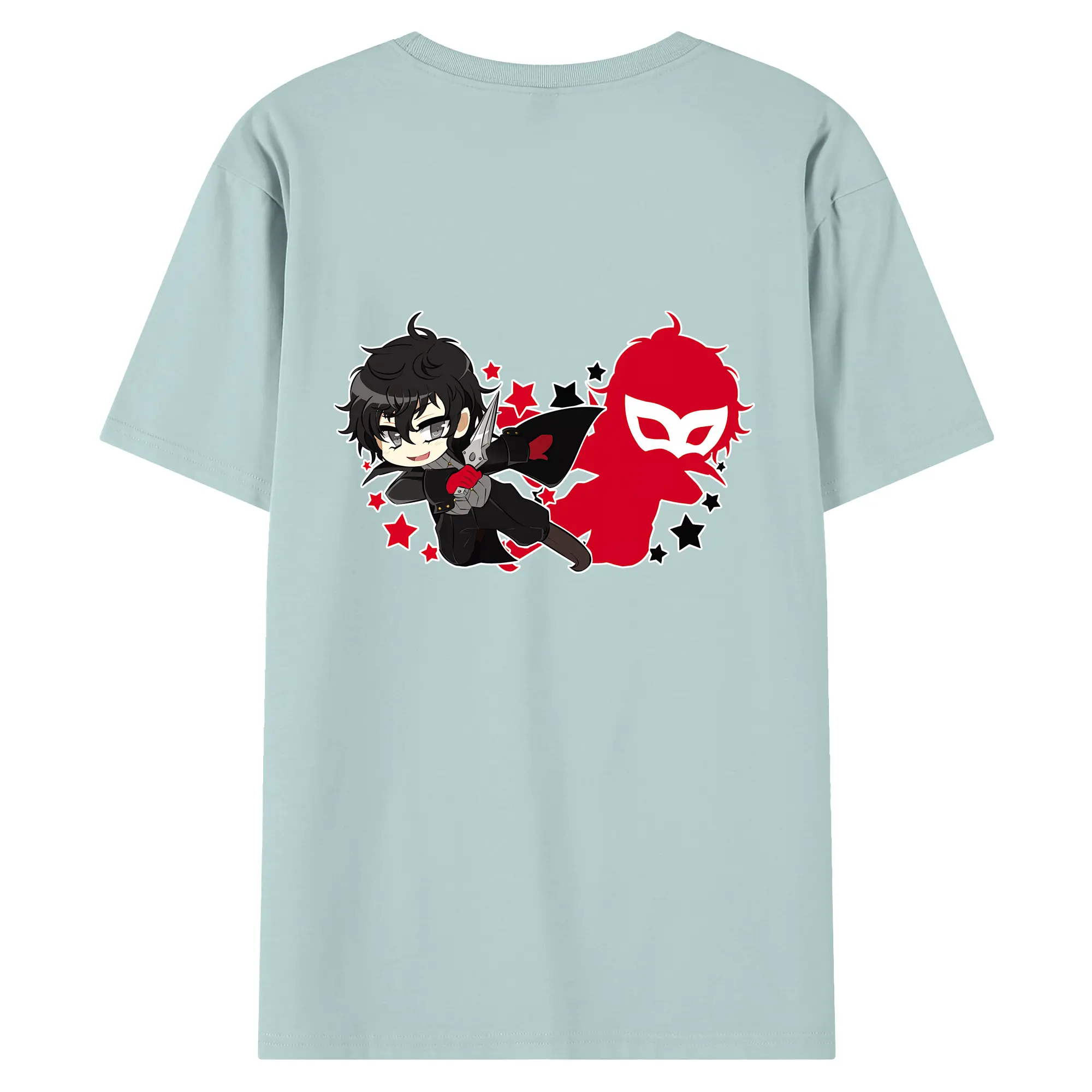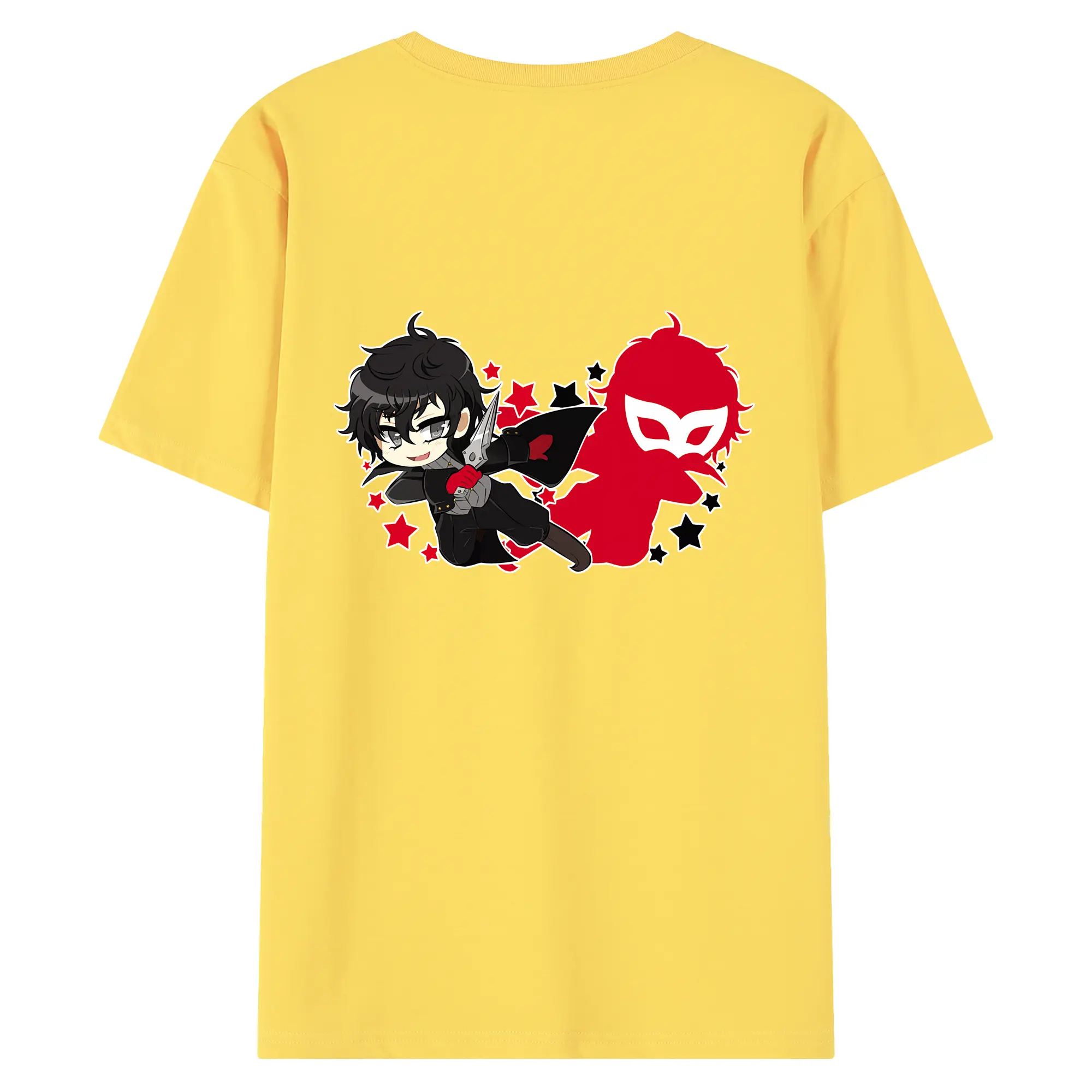 ペルソナ グッズ,主人公 - 綿100% 半袖Tシャツ ・ フロントプリント ・ 快適 通気性 ・ 日常使い 散歩 スポーツ用
