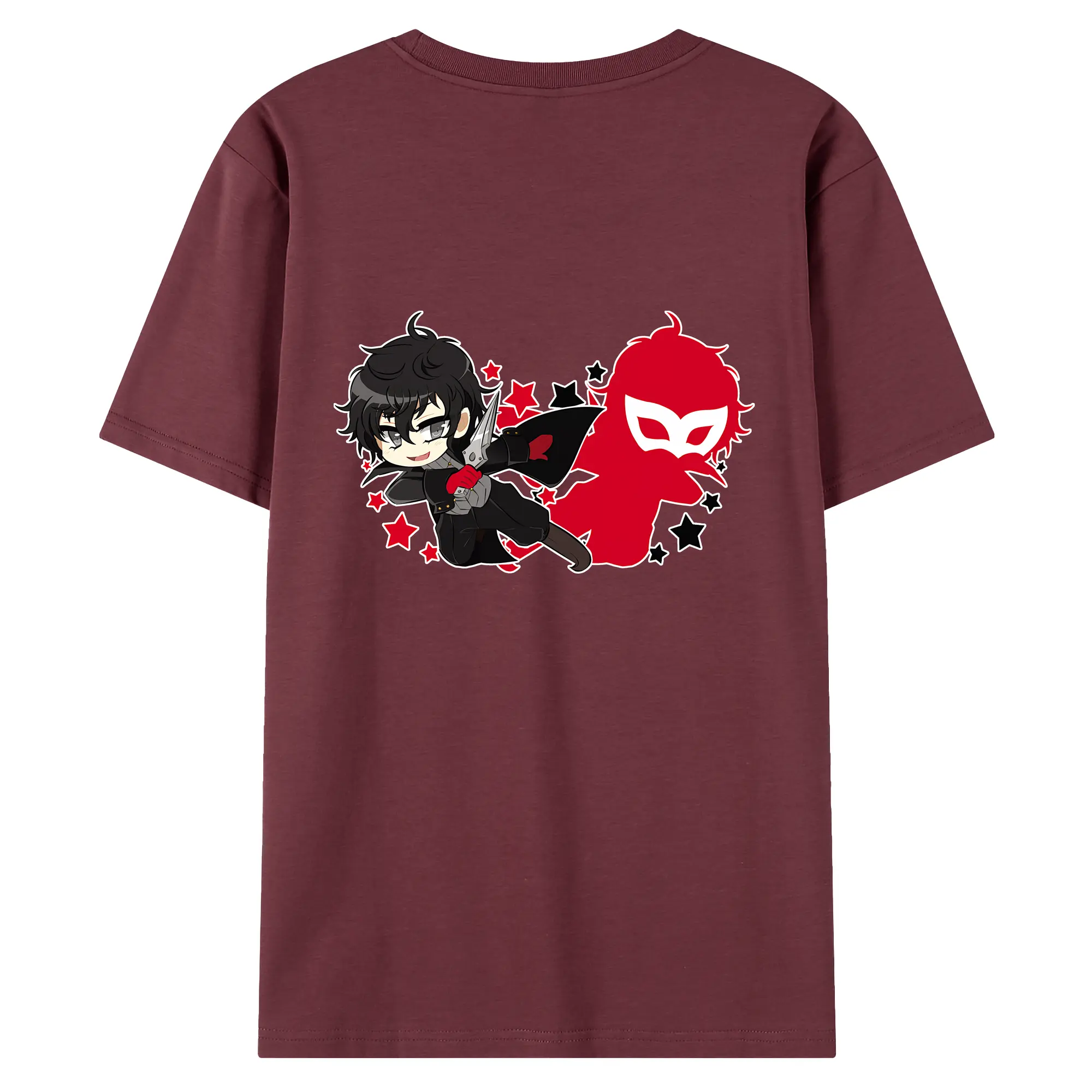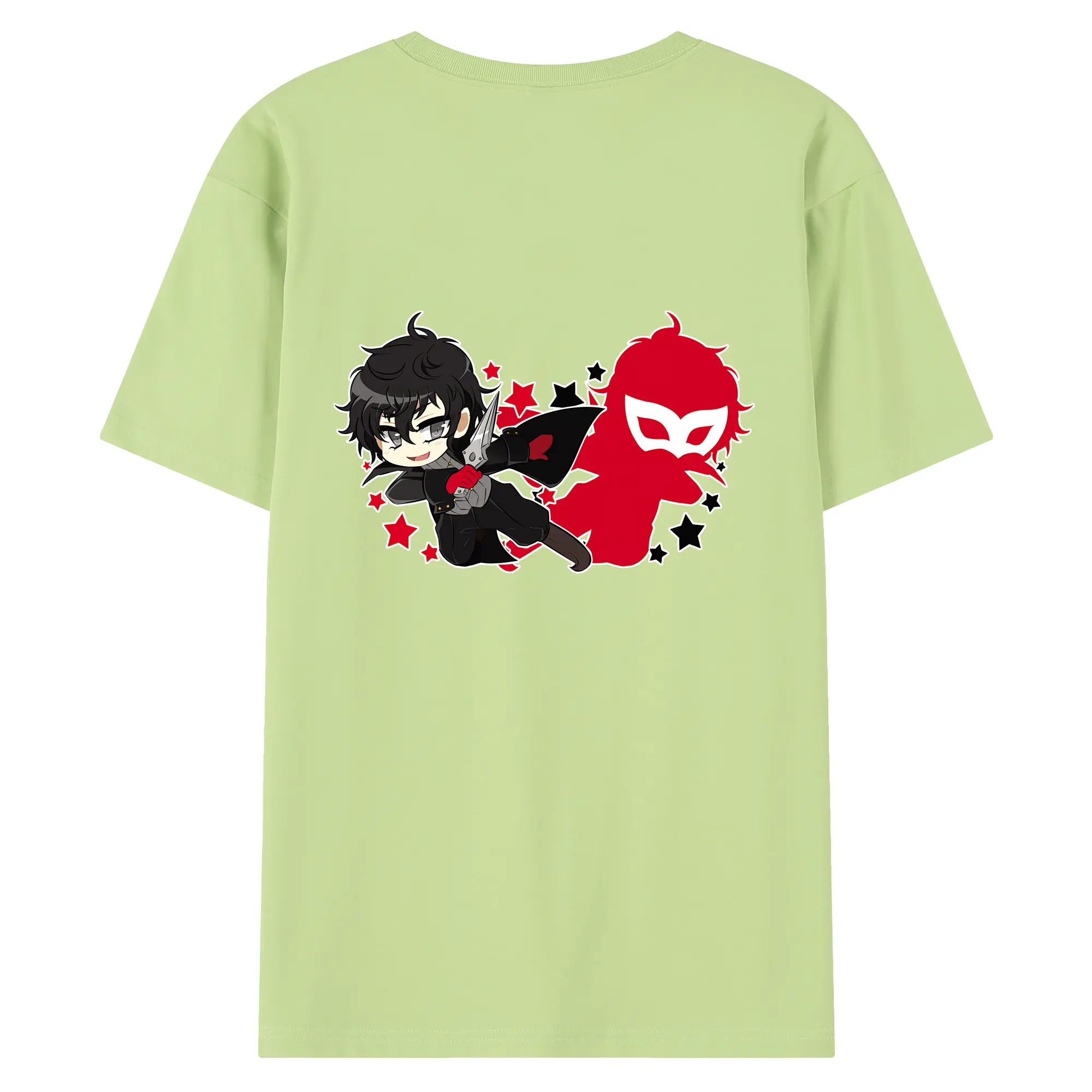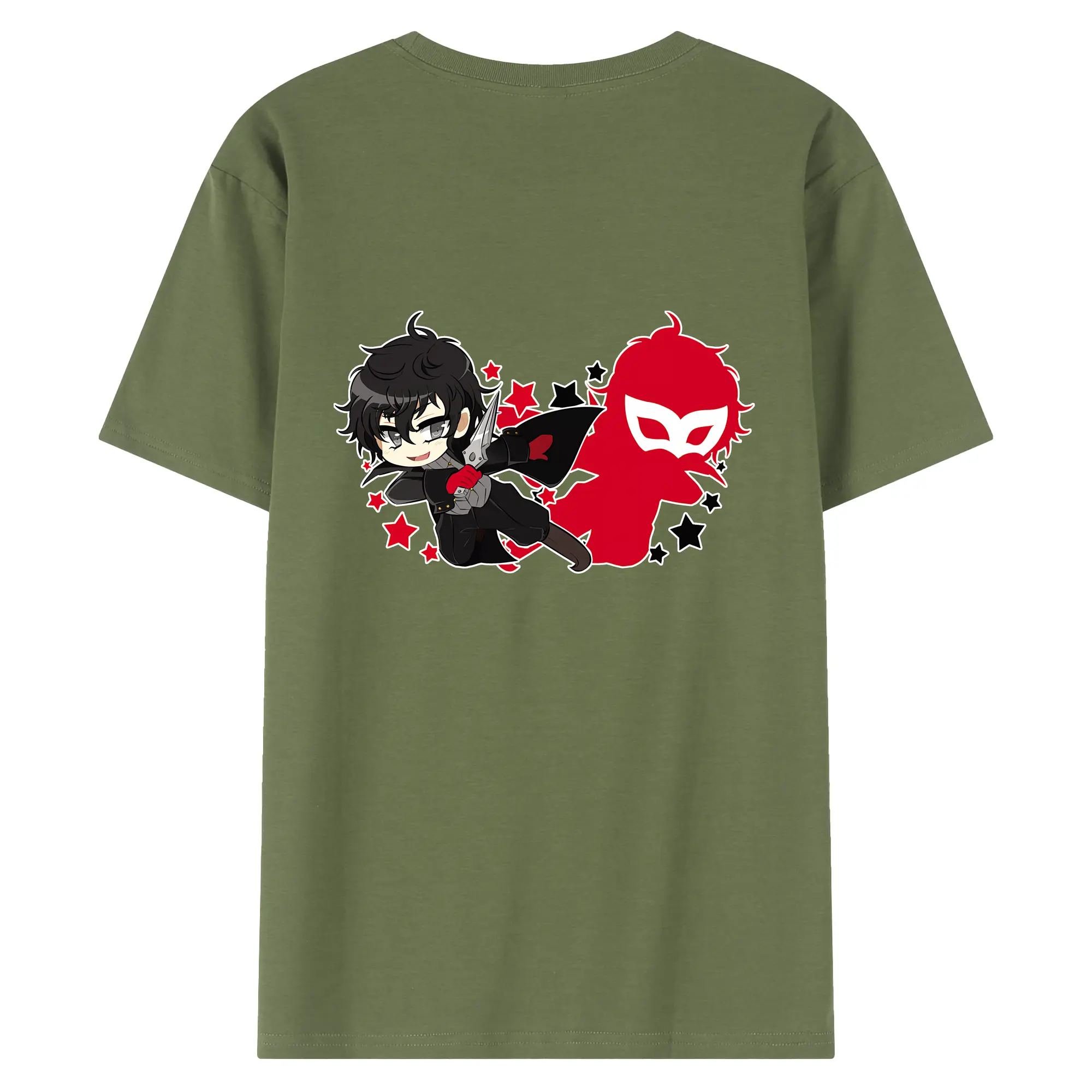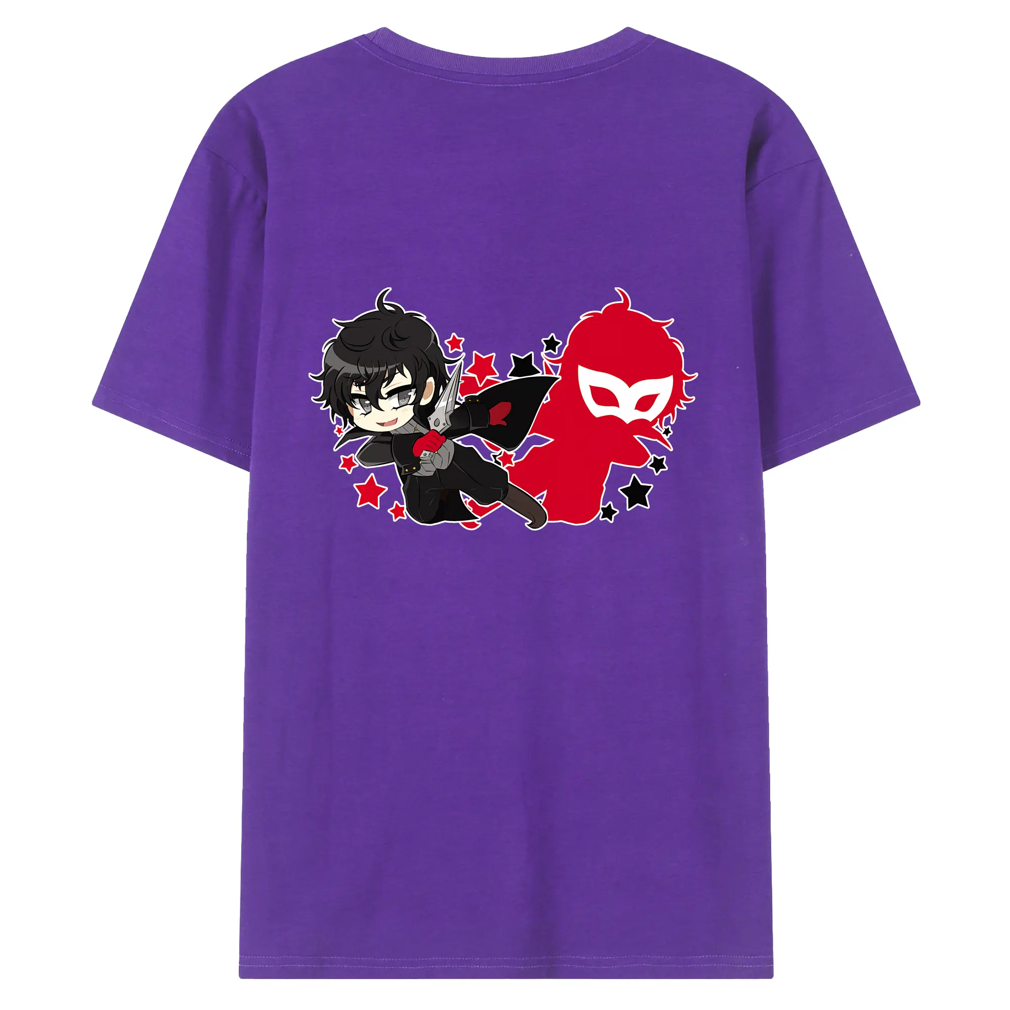ペルソナ グッズ,主人公 - 綿100% 半袖Tシャツ ・ フロントプリント ・ 快適 通気性 ・ 日常使い 散歩 スポーツ用