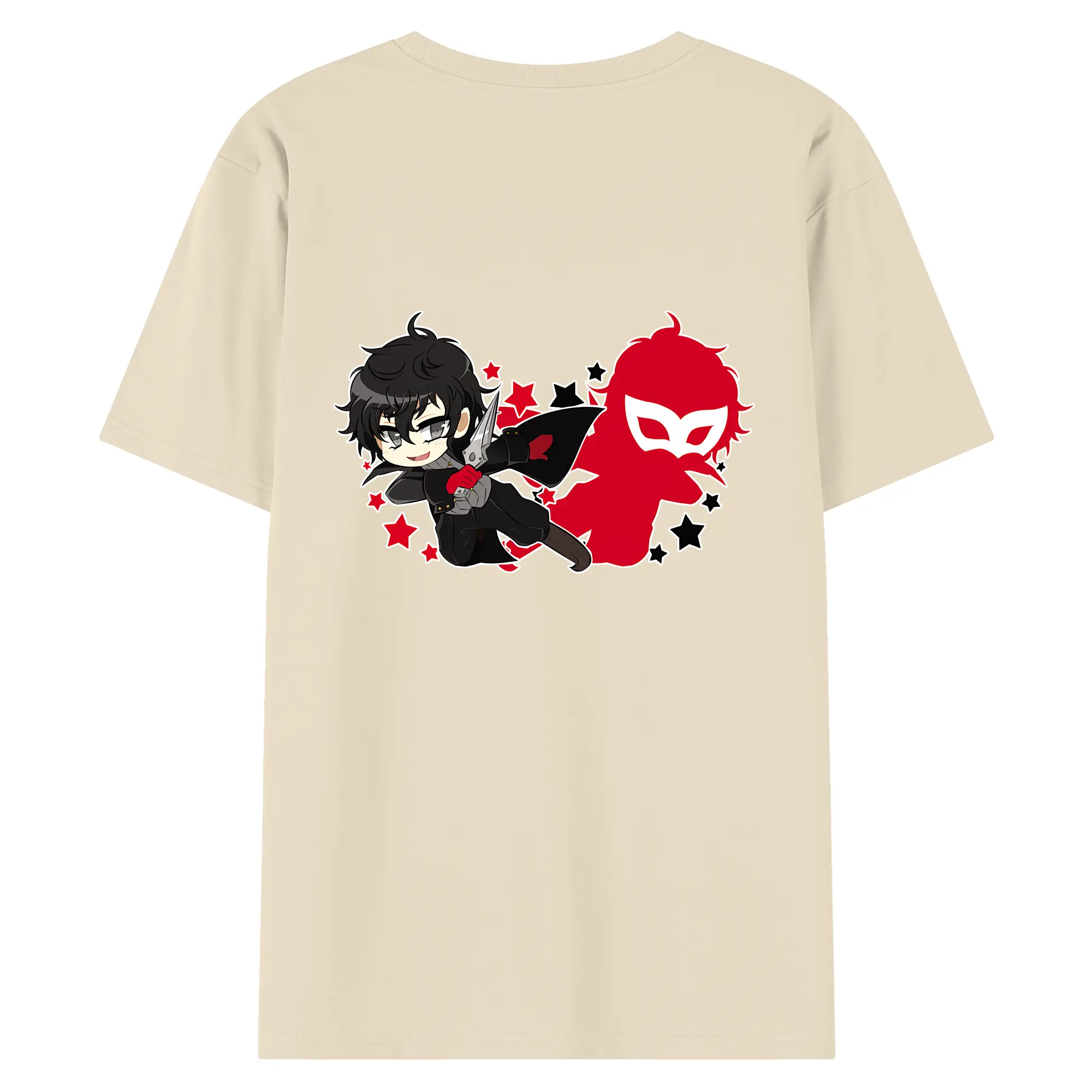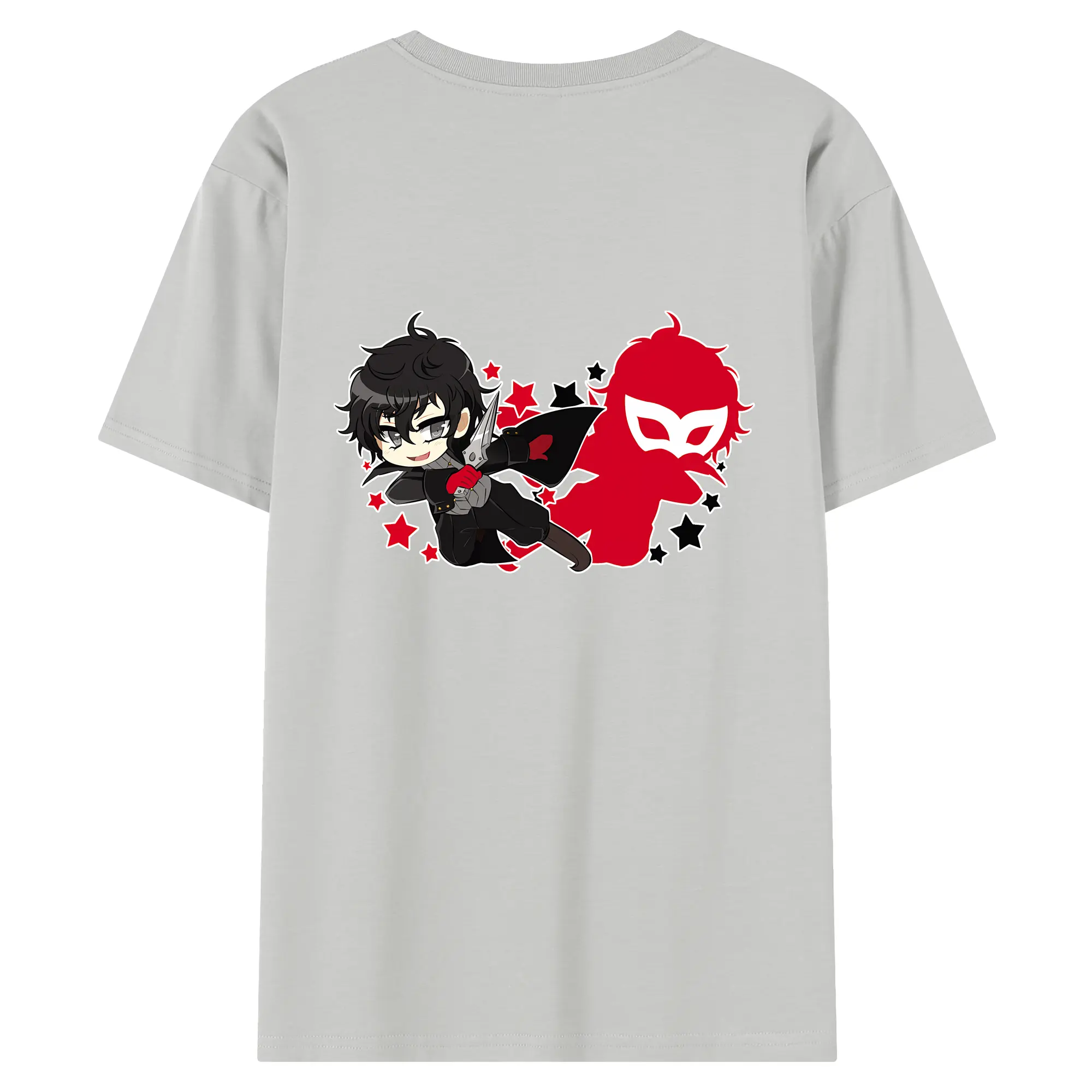ペルソナ グッズ,主人公 - 綿100% ヴィンテージ風 半袖Tシャツ ・ 背面プリント ・ 柔らか肌触り ・ 通気性 快適 ・ スポーツ カジュアル 外出用