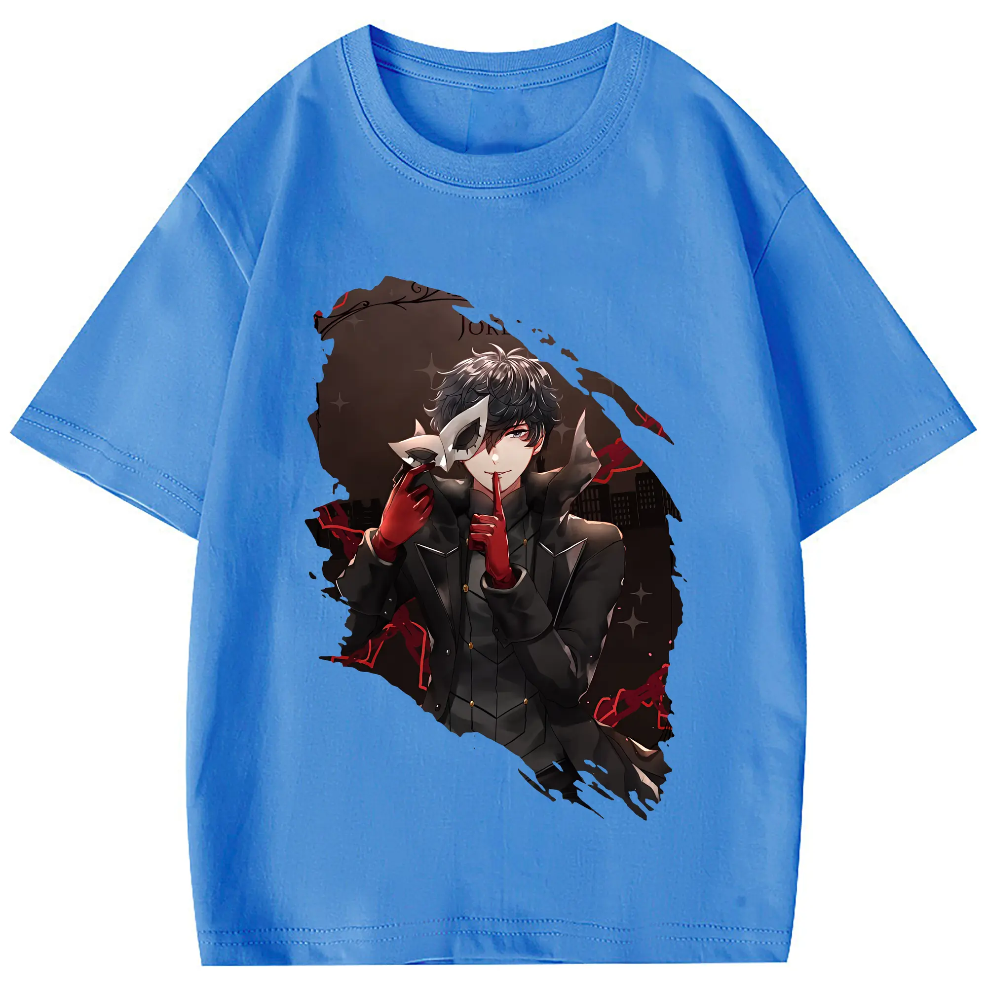 ペルソナ グッズ,主人公 - 綿100% 半袖Tシャツ ・ フロントプリント ・ 快適 通気性 ・ 日常使い 散歩 スポーツ用