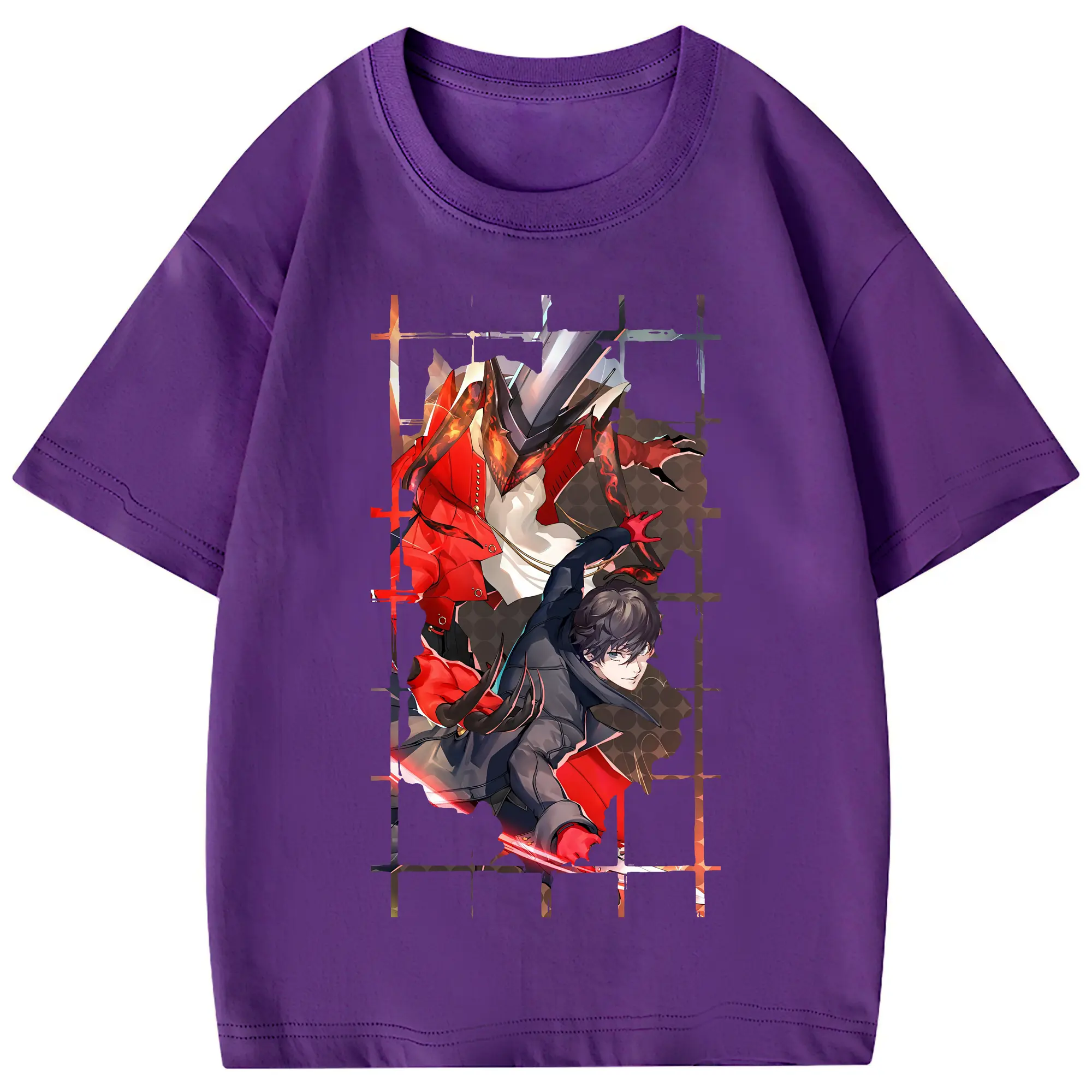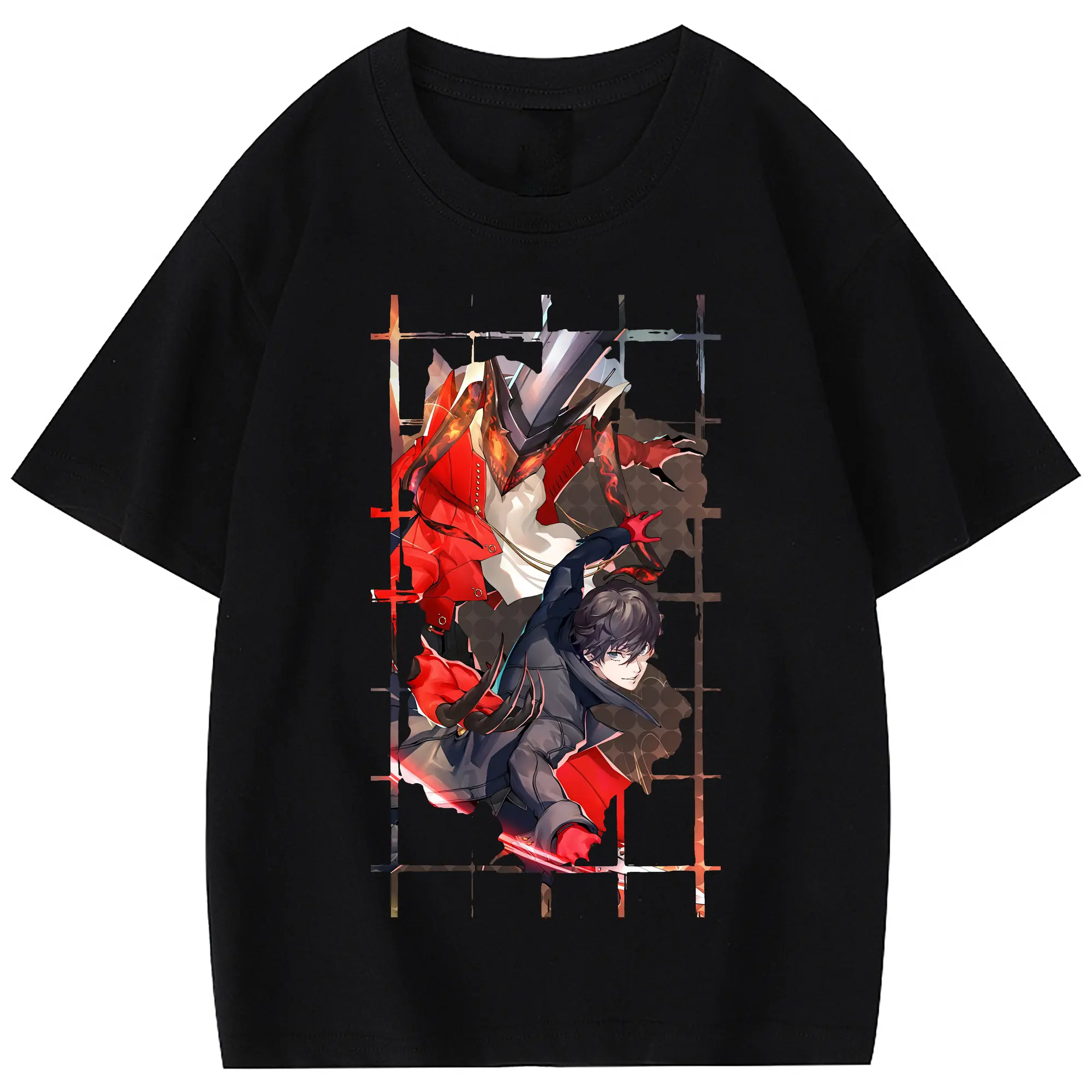ペルソナ グッズ,主人公 - 綿100% 半袖Tシャツ ・ フロントプリント ・ 快適 通気性 ・ 日常使い 散歩 スポーツ用