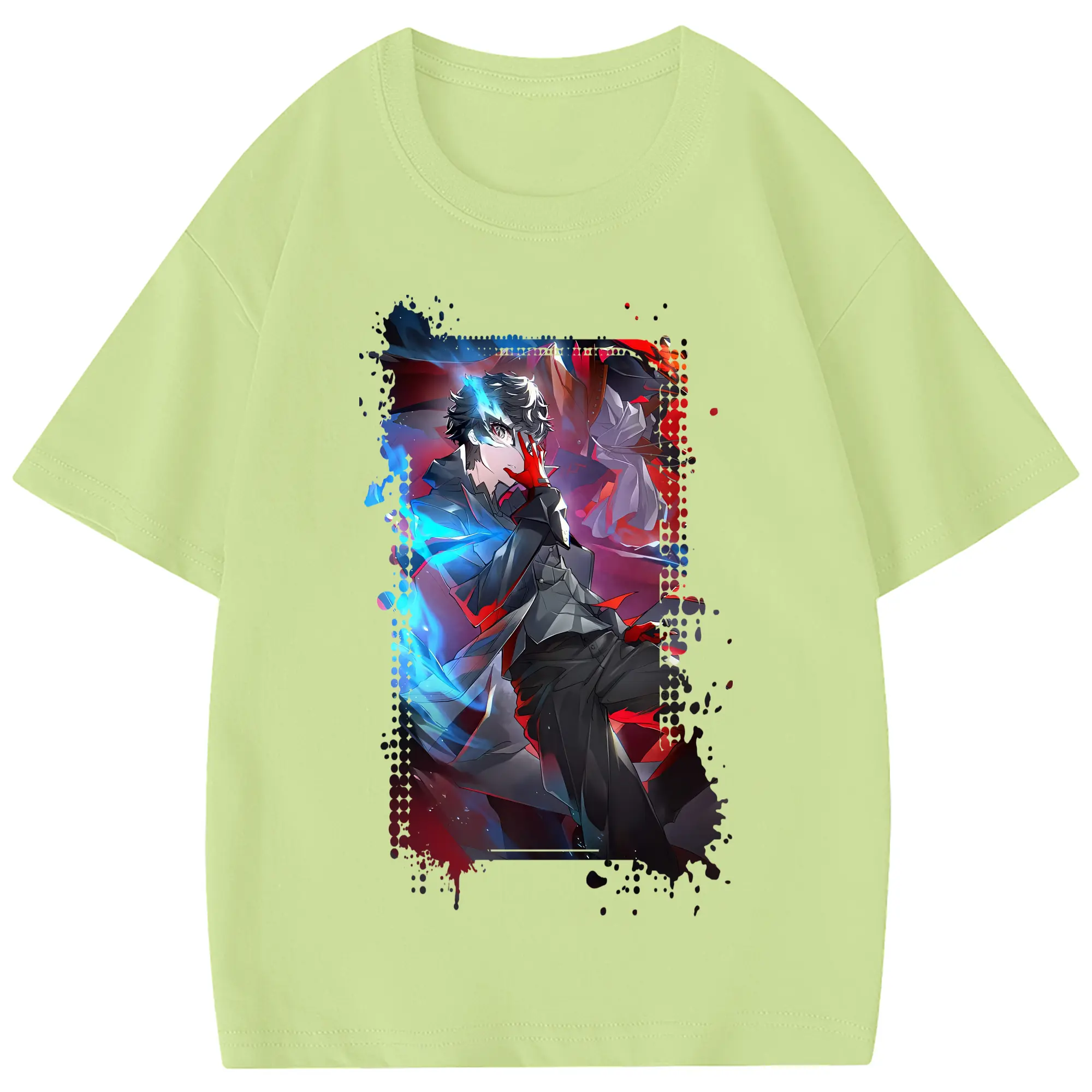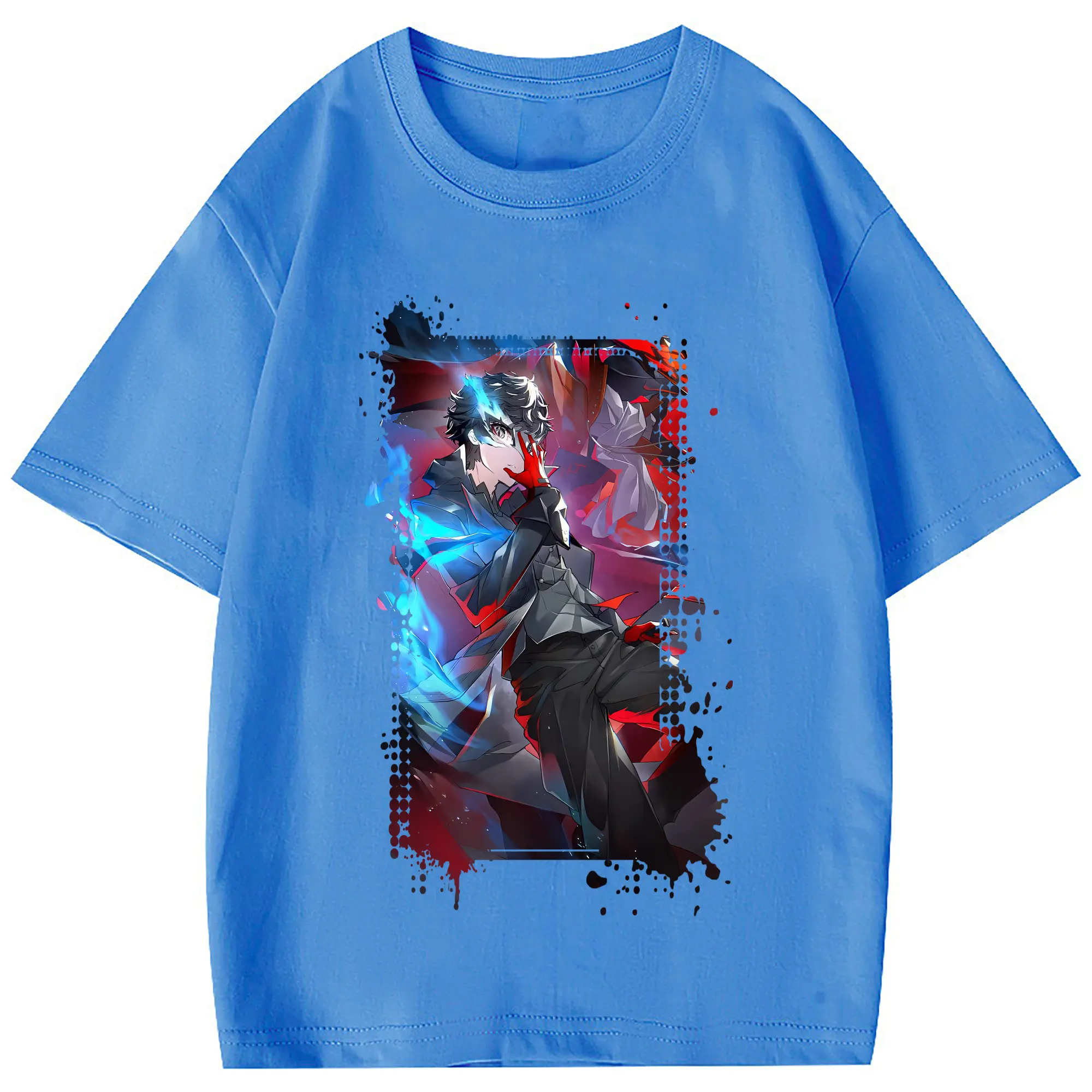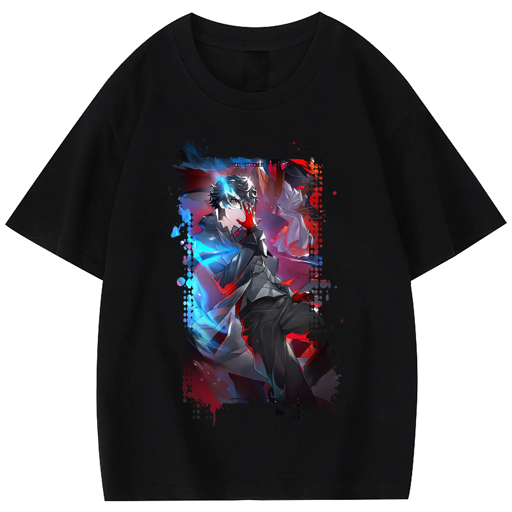 ペルソナ グッズ,主人公 - 綿100% 半袖Tシャツ ・ フロントプリント ・ 快適 通気性 ・ 日常使い 散歩 スポーツ用