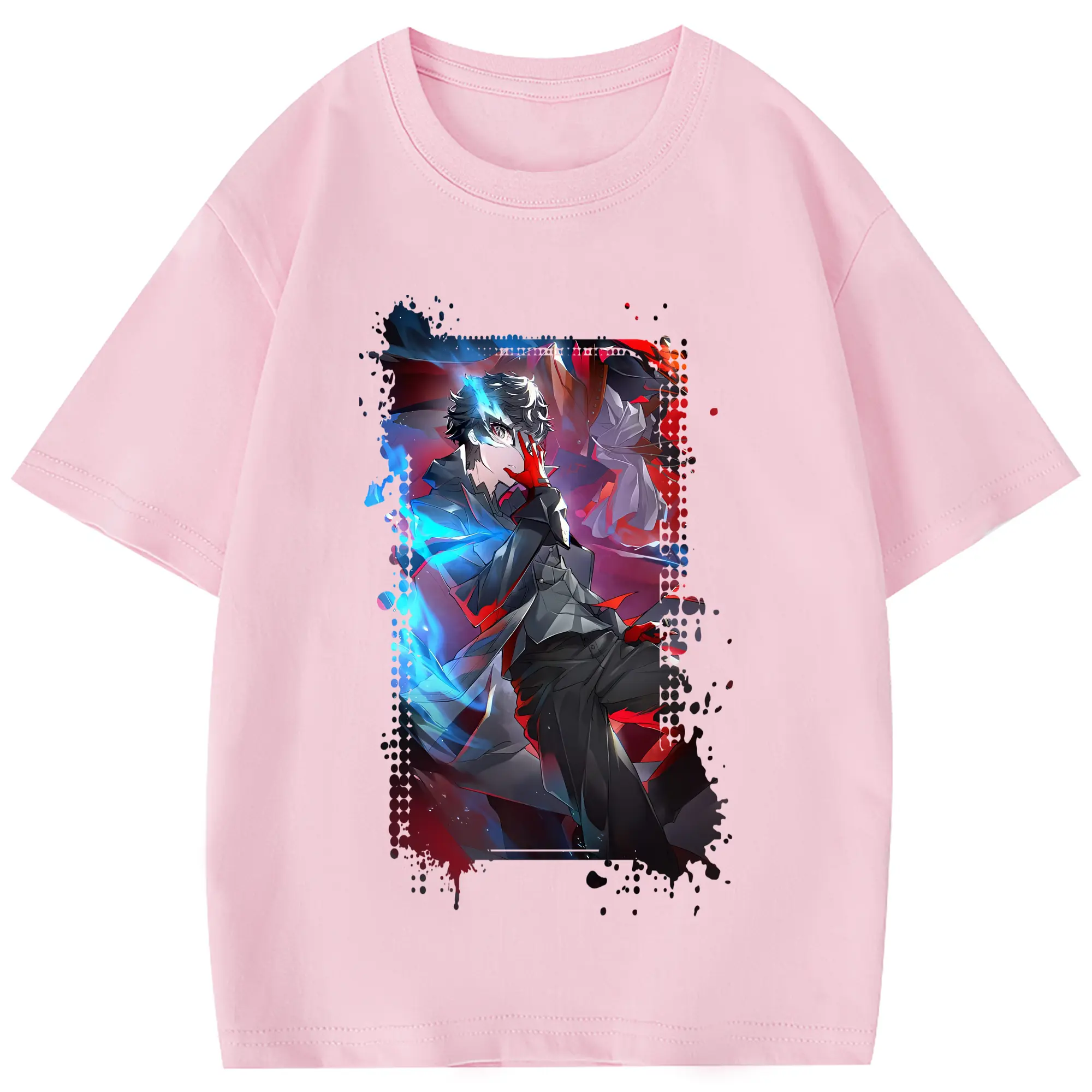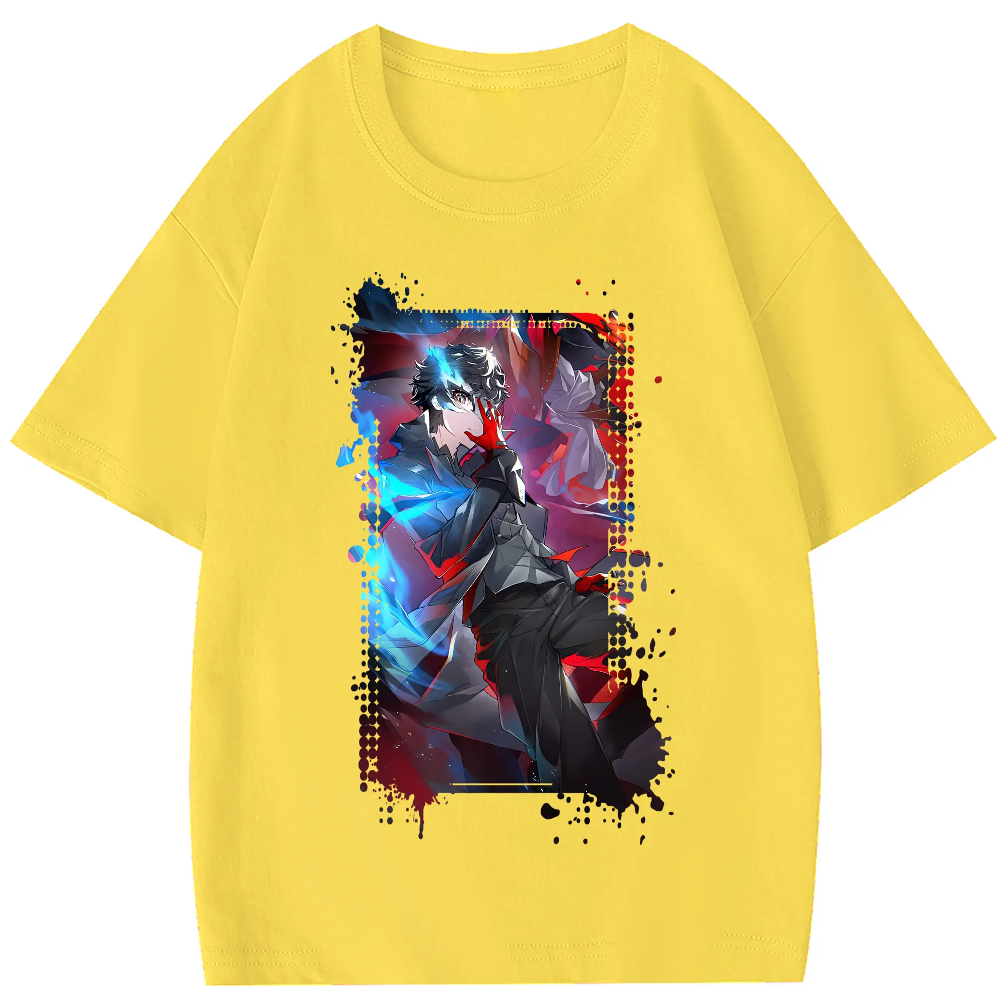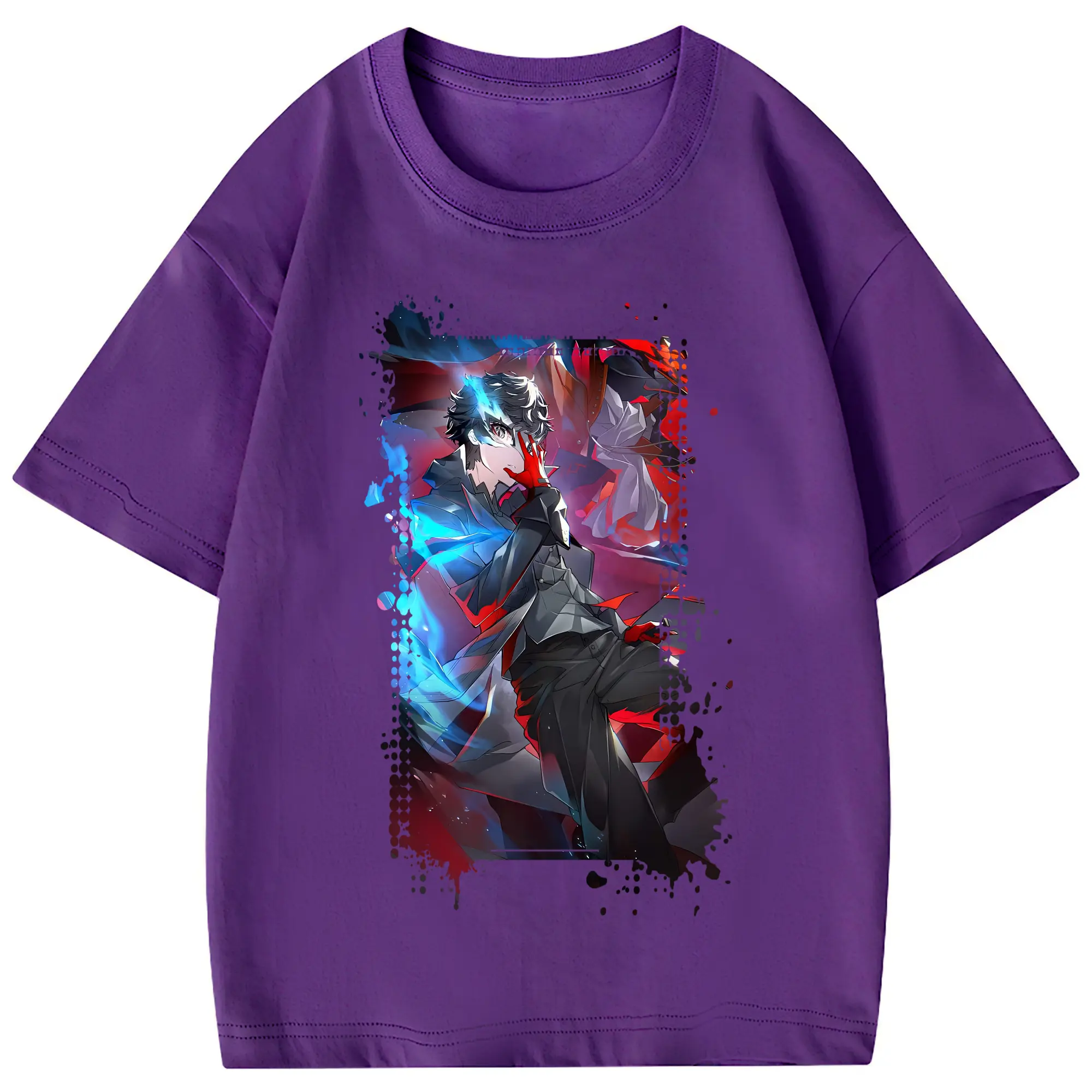 ペルソナ グッズ,主人公 - 綿100% 半袖Tシャツ ・ フロントプリント ・ 快適 通気性 ・ 日常使い 散歩 スポーツ用