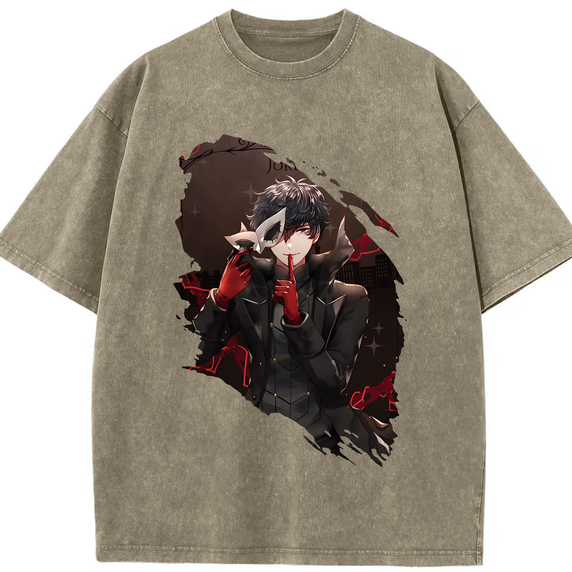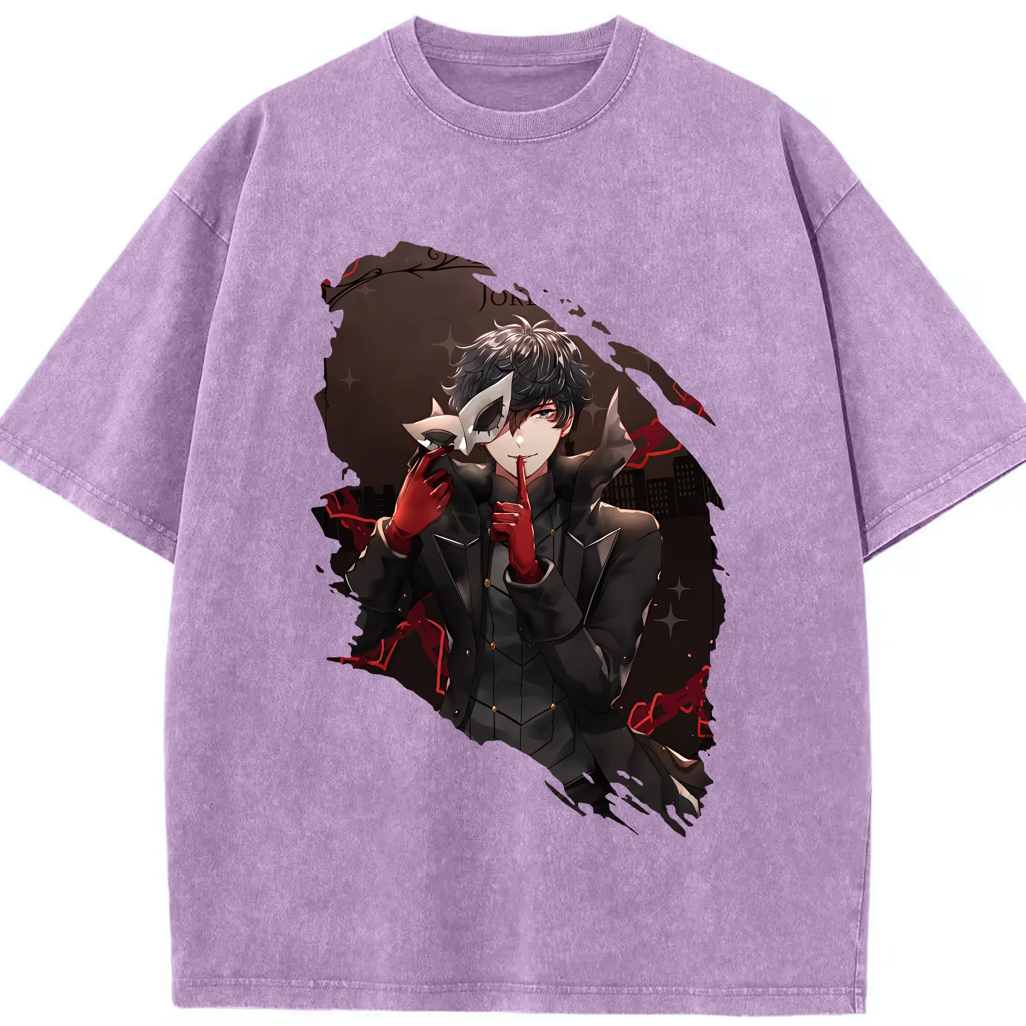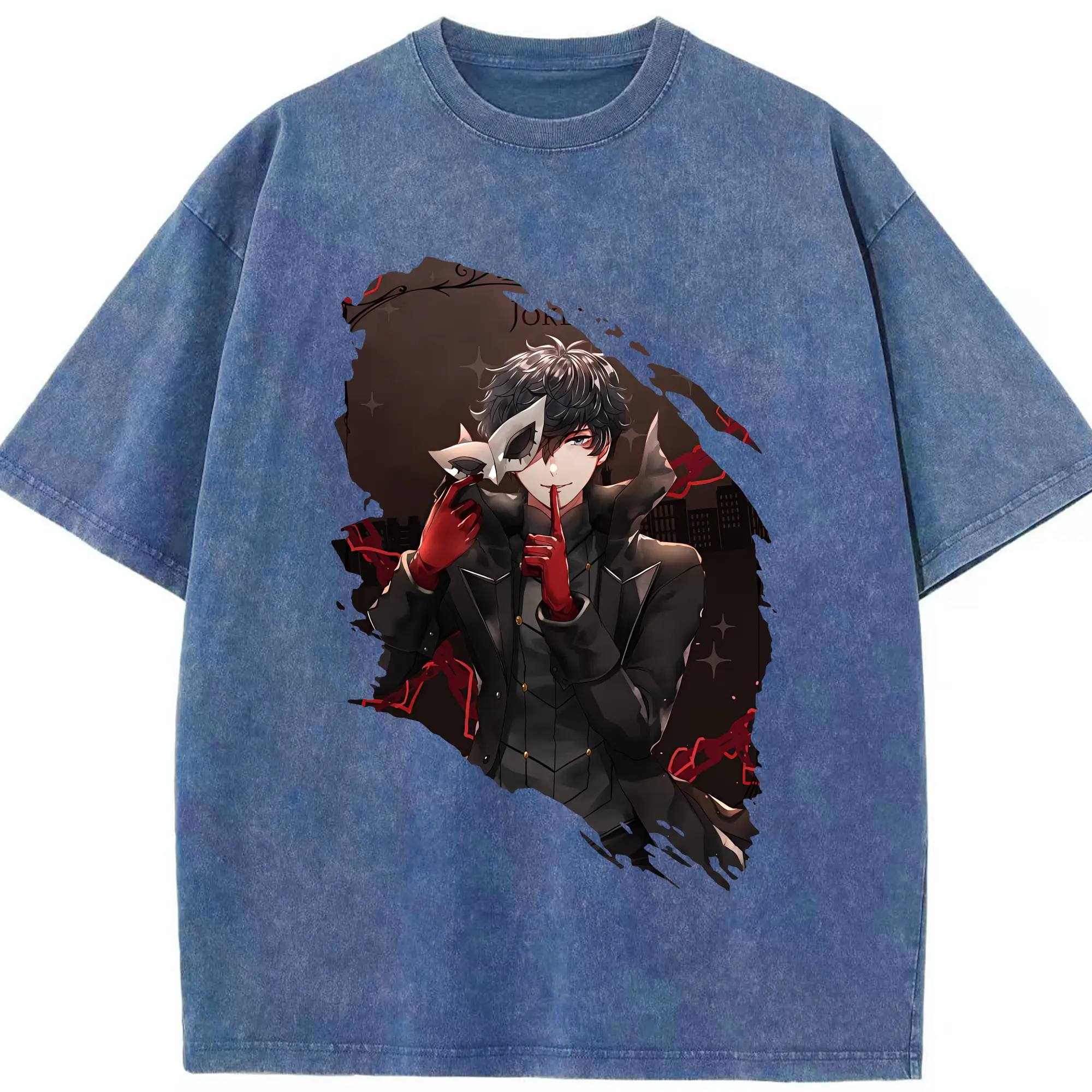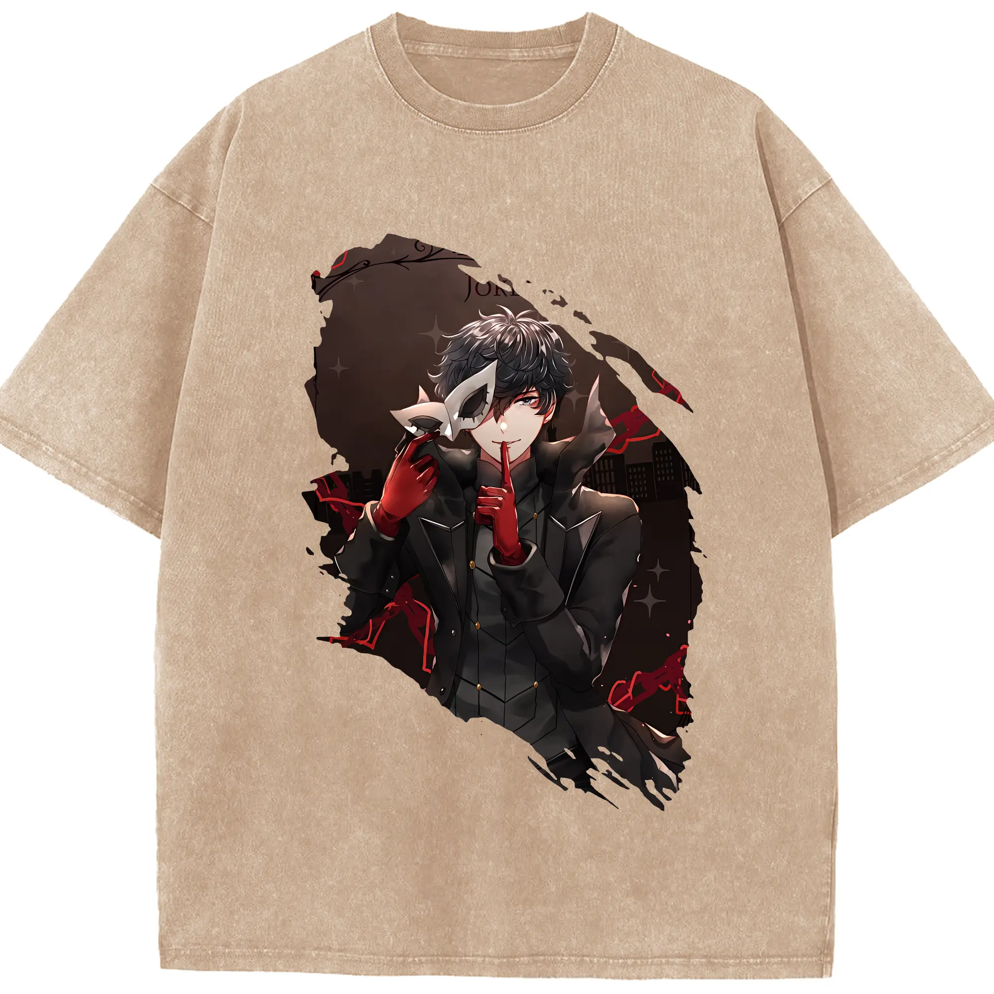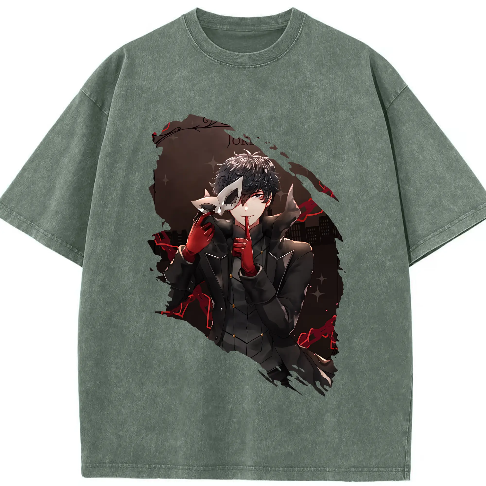 ペルソナ グッズ,主人公 - 綿100% ヴィンテージ風 半袖Tシャツ ・ 背面プリント ・ 柔らか肌触り ・ 通気性 快適 ・ スポーツ カジュアル 外出用
