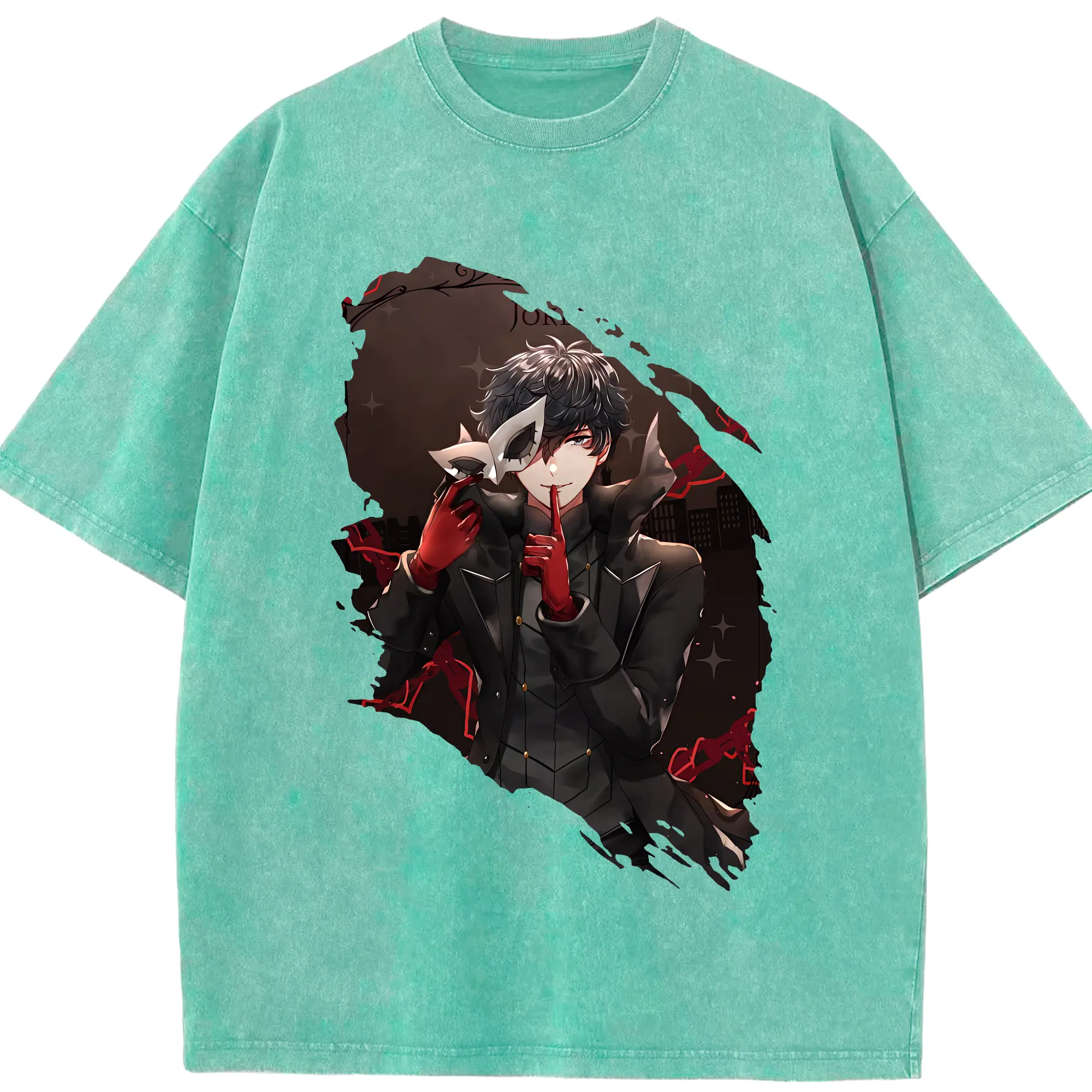 ペルソナ グッズ,主人公 - 綿100% 半袖Tシャツ ・ フロントプリント ・ 快適 通気性 ・ 日常使い 散歩 スポーツ用