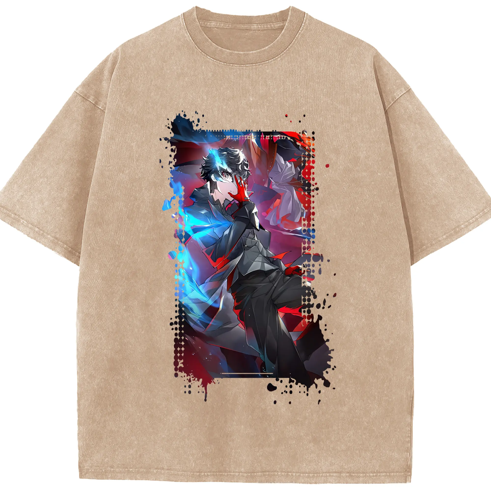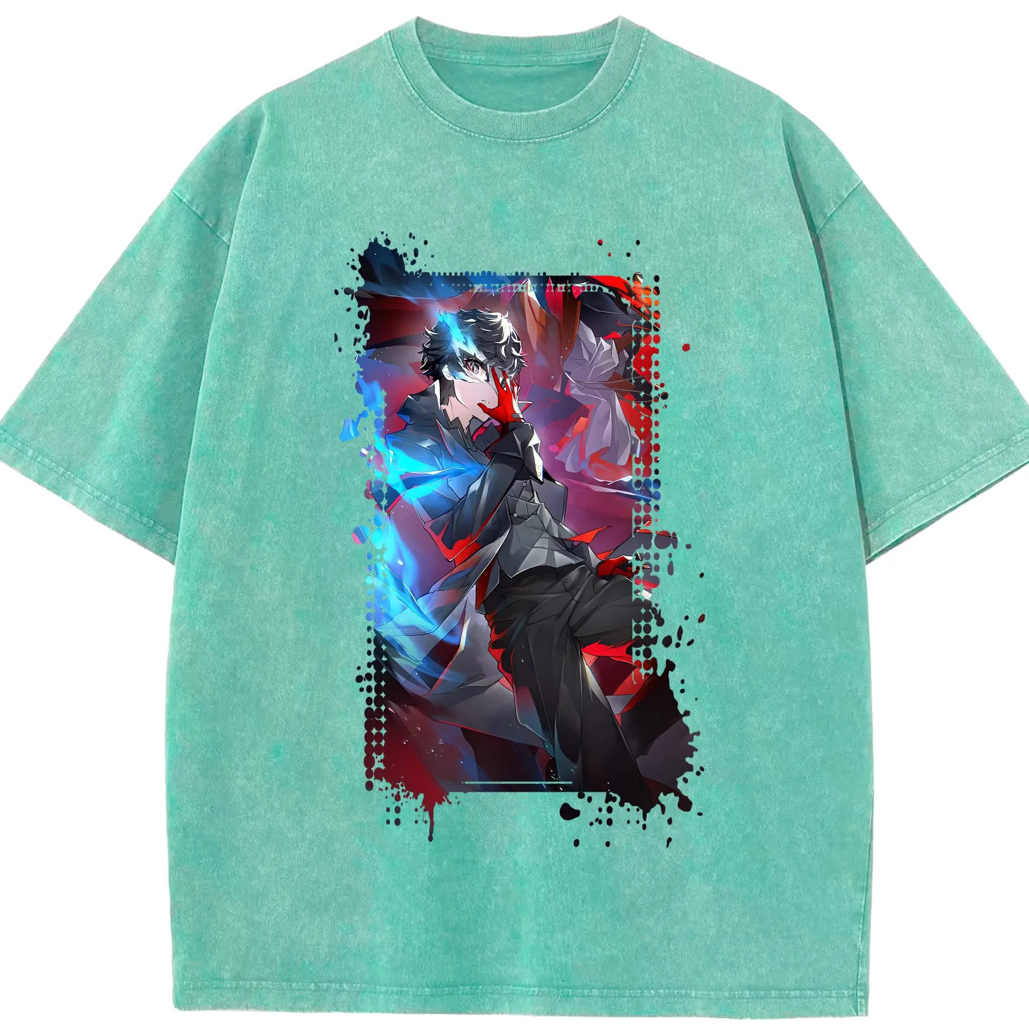 ペルソナ グッズ,主人公 - 綿100% 半袖Tシャツ ・ フロントプリント ・ 快適 通気性 ・ 日常使い 散歩 スポーツ用