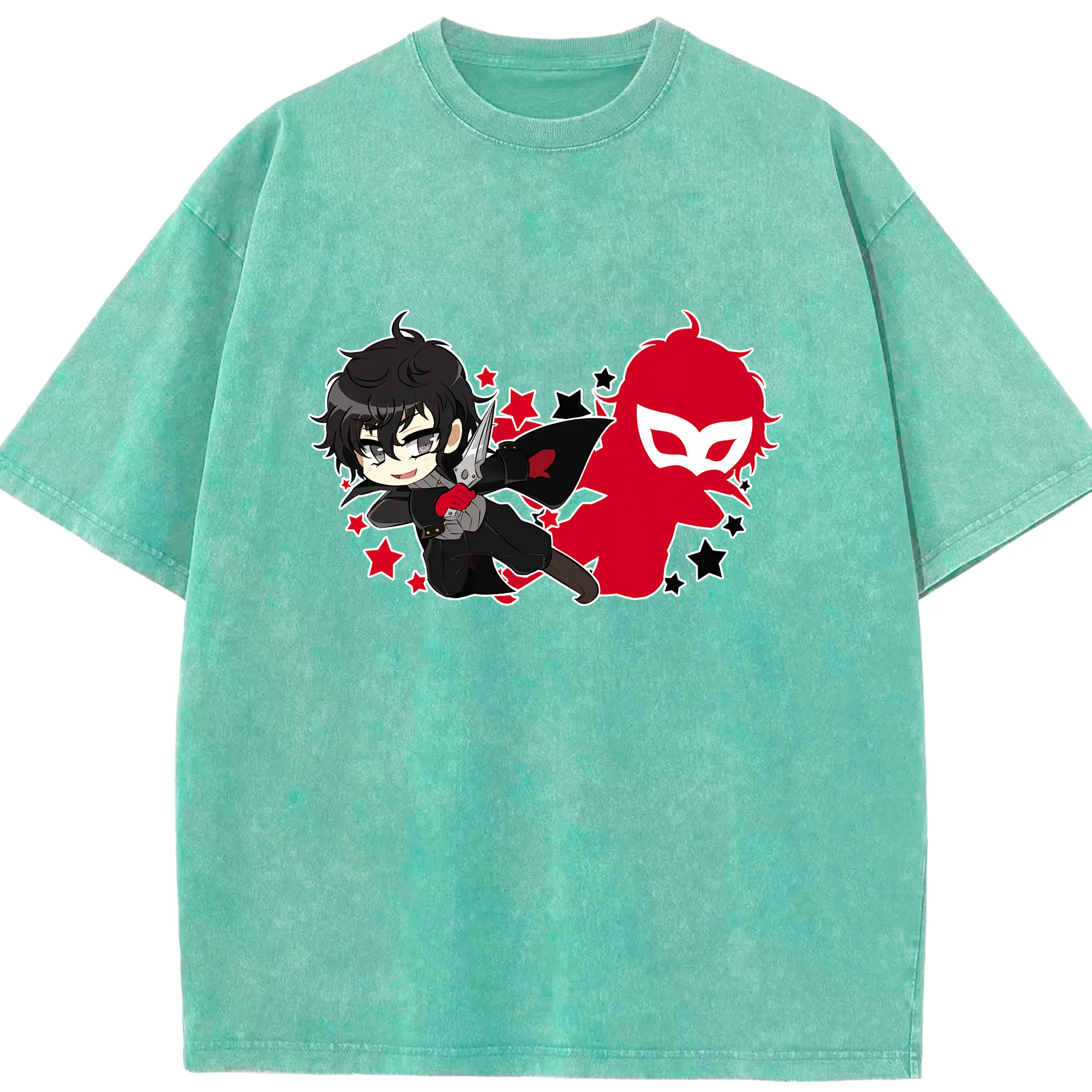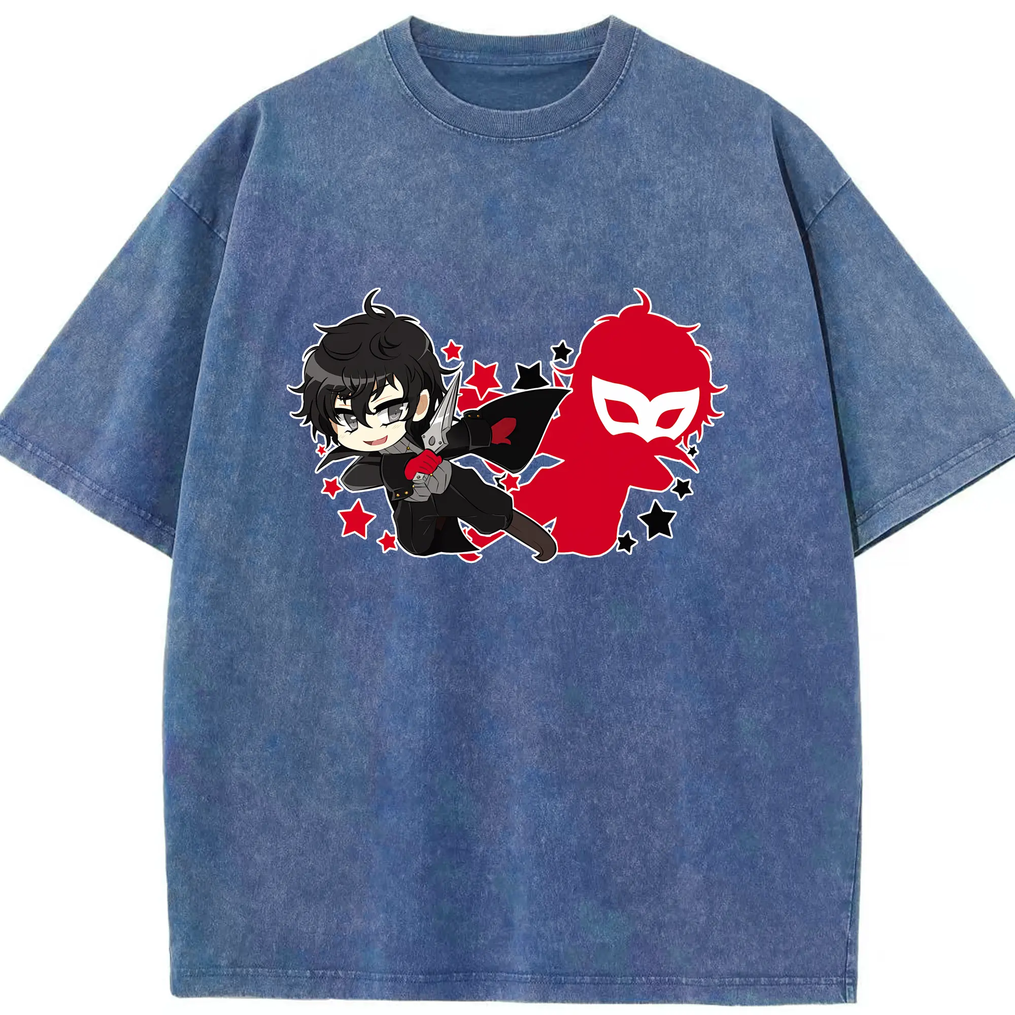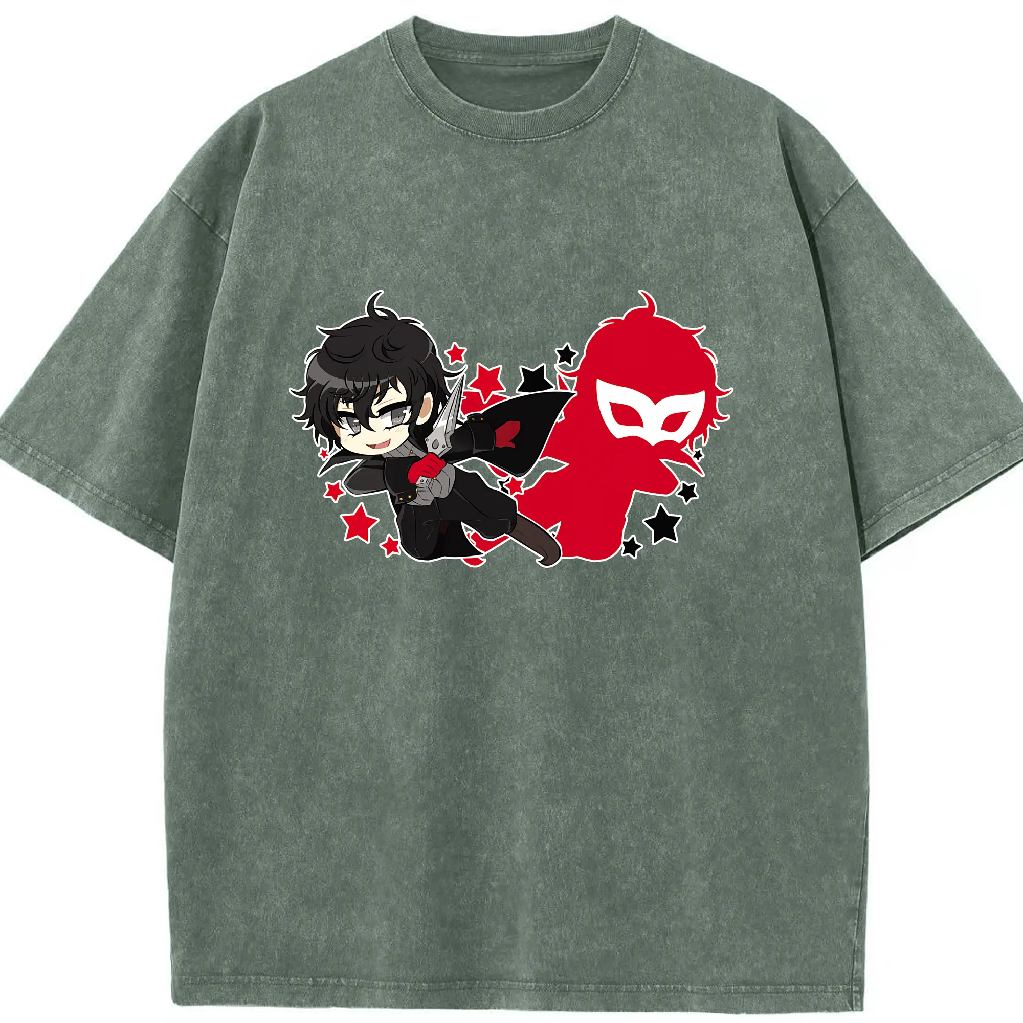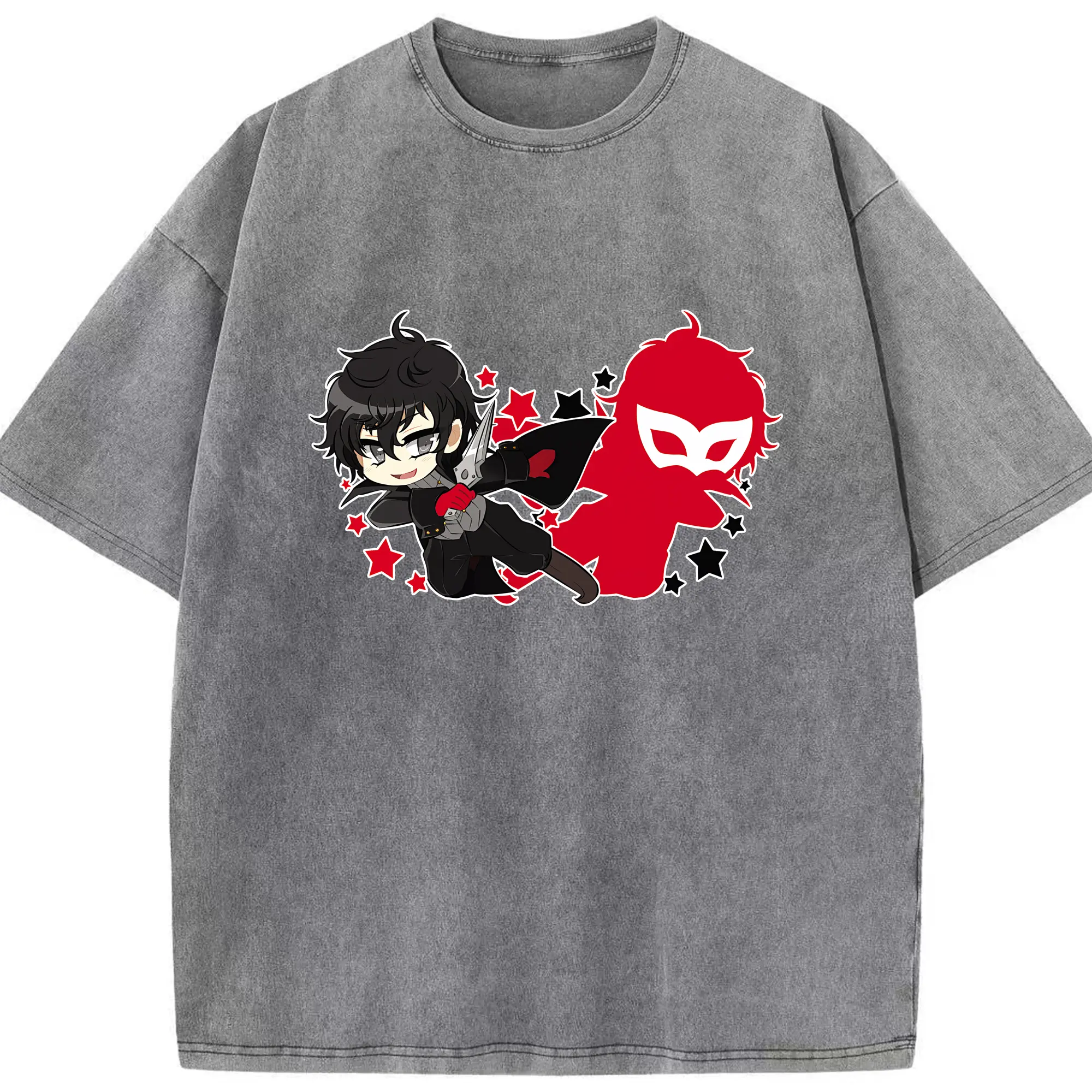 ペルソナ グッズ,主人公 - 綿100% ヴィンテージ風 半袖Tシャツ ・ 背面プリント ・ 柔らか肌触り ・ 通気性 快適 ・ スポーツ カジュアル 外出用
