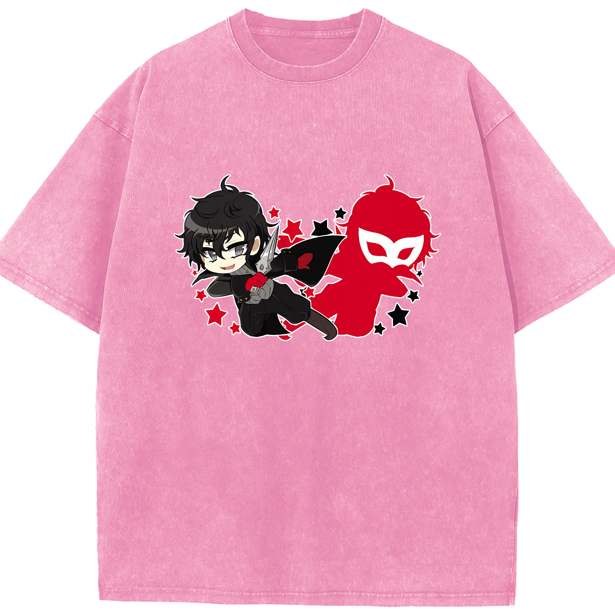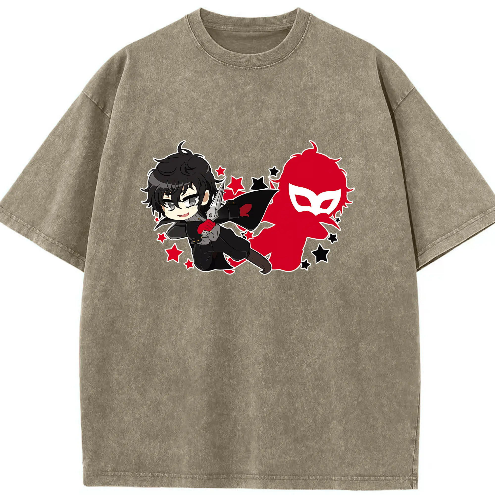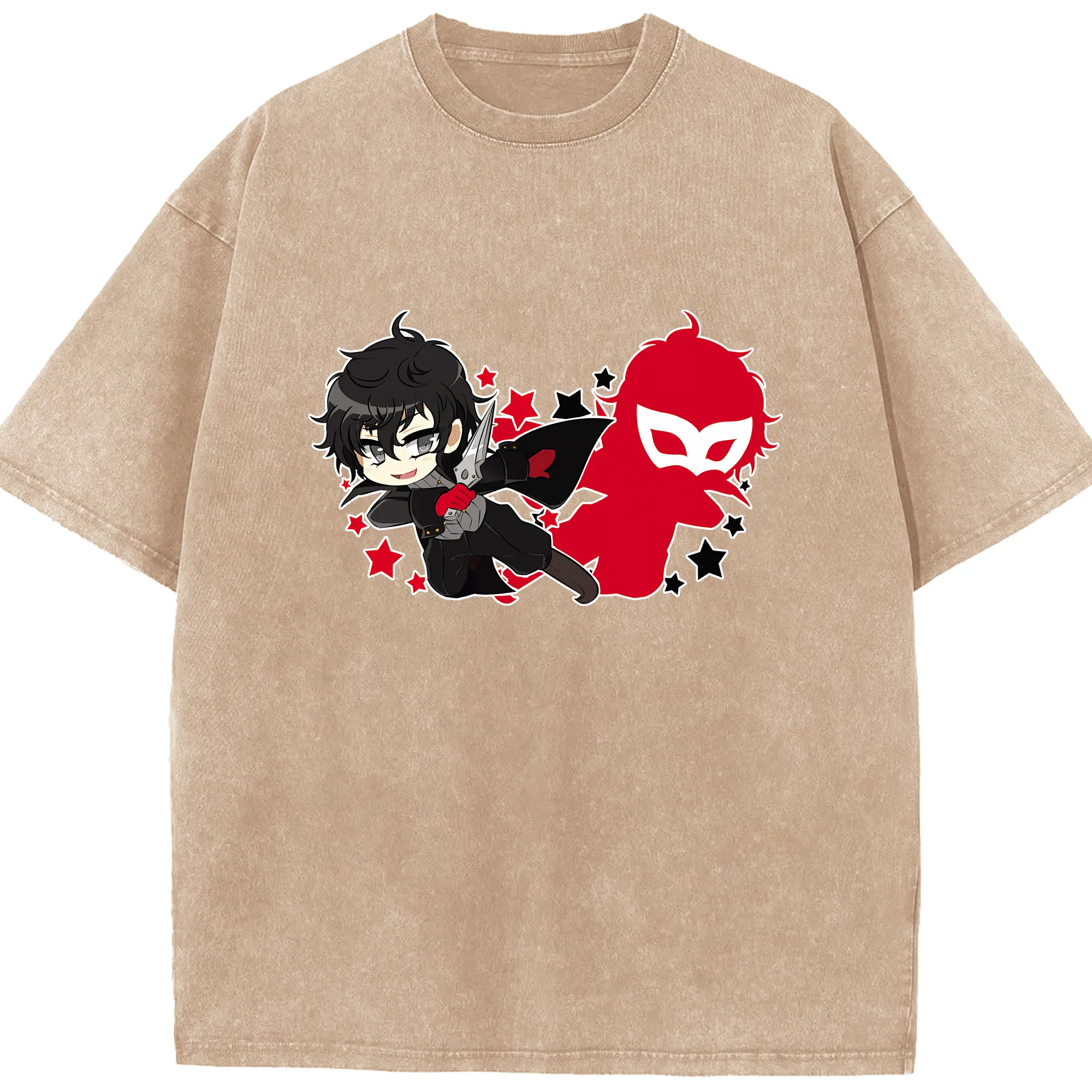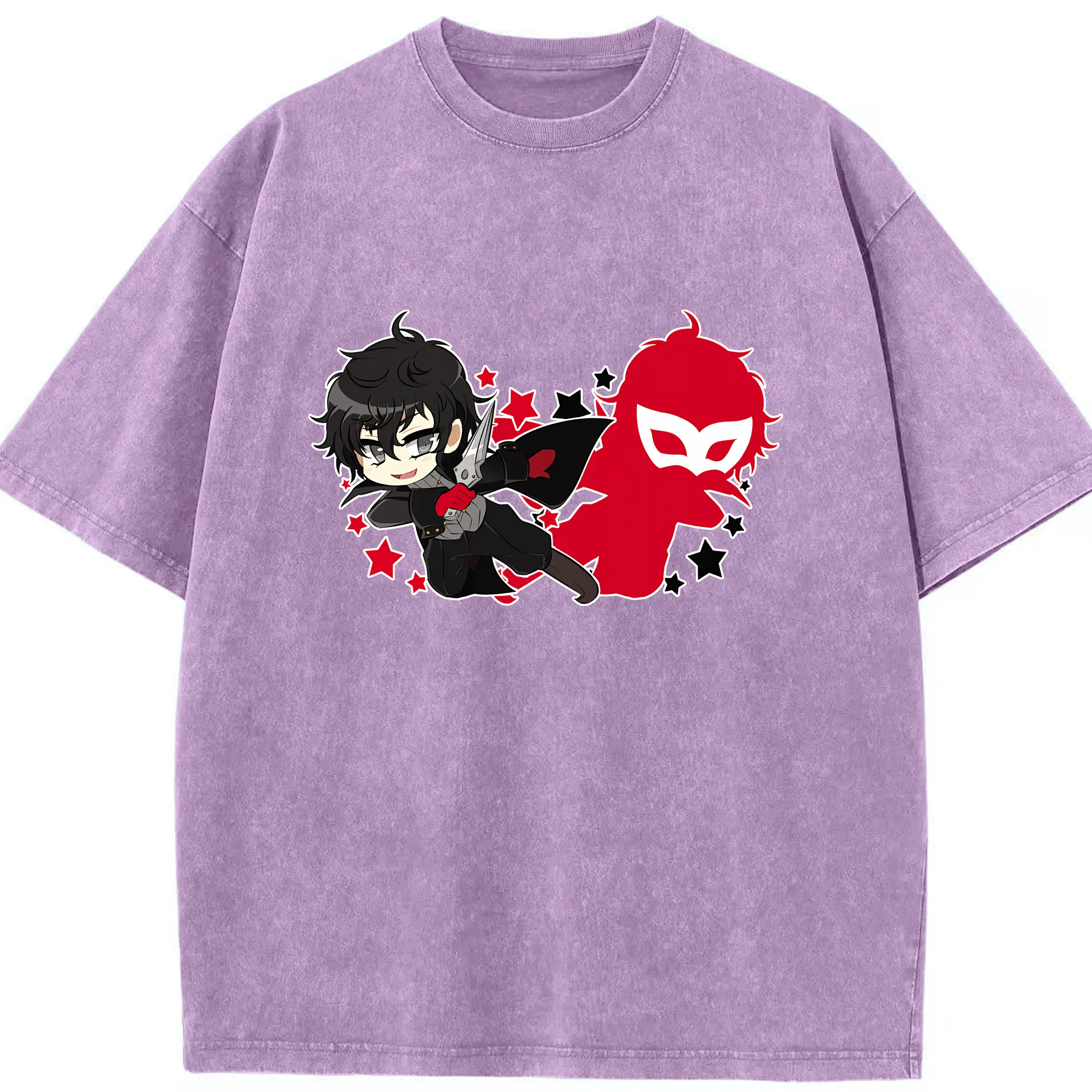 ペルソナ グッズ,主人公 - 綿100% ヴィンテージ風 半袖Tシャツ ・ 背面プリント ・ 柔らか肌触り ・ 通気性 快適 ・ スポーツ カジュアル 外出用