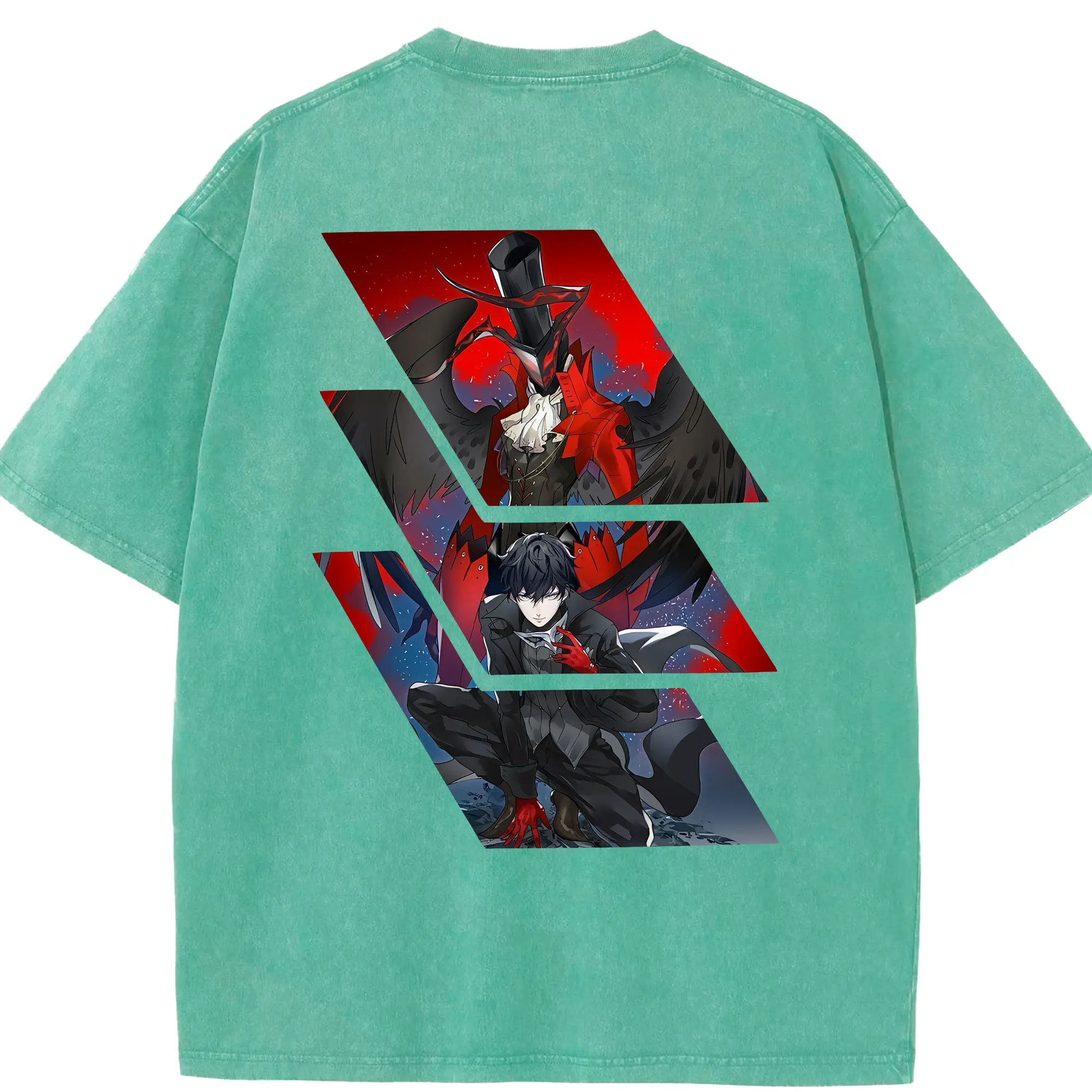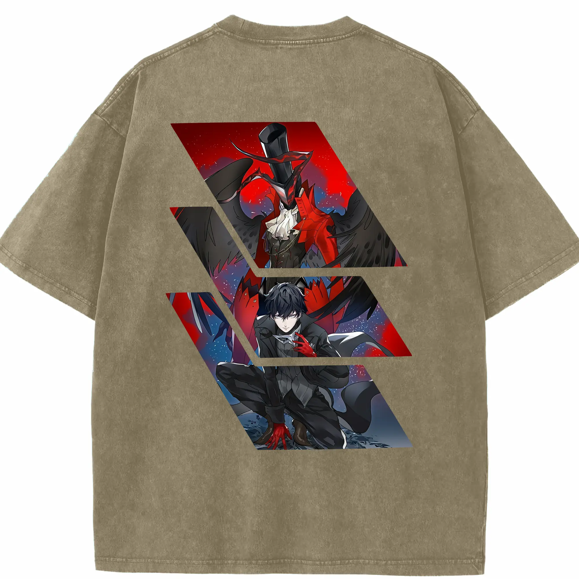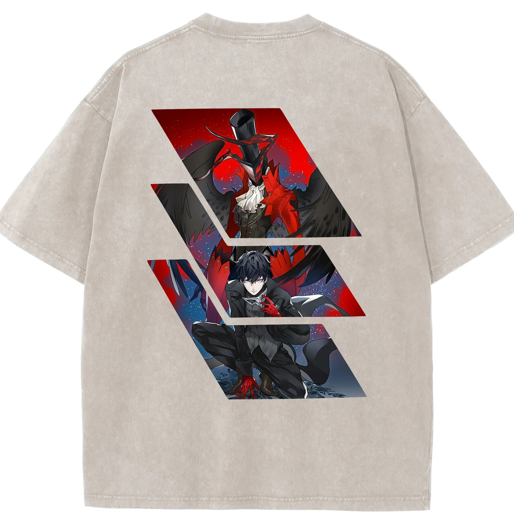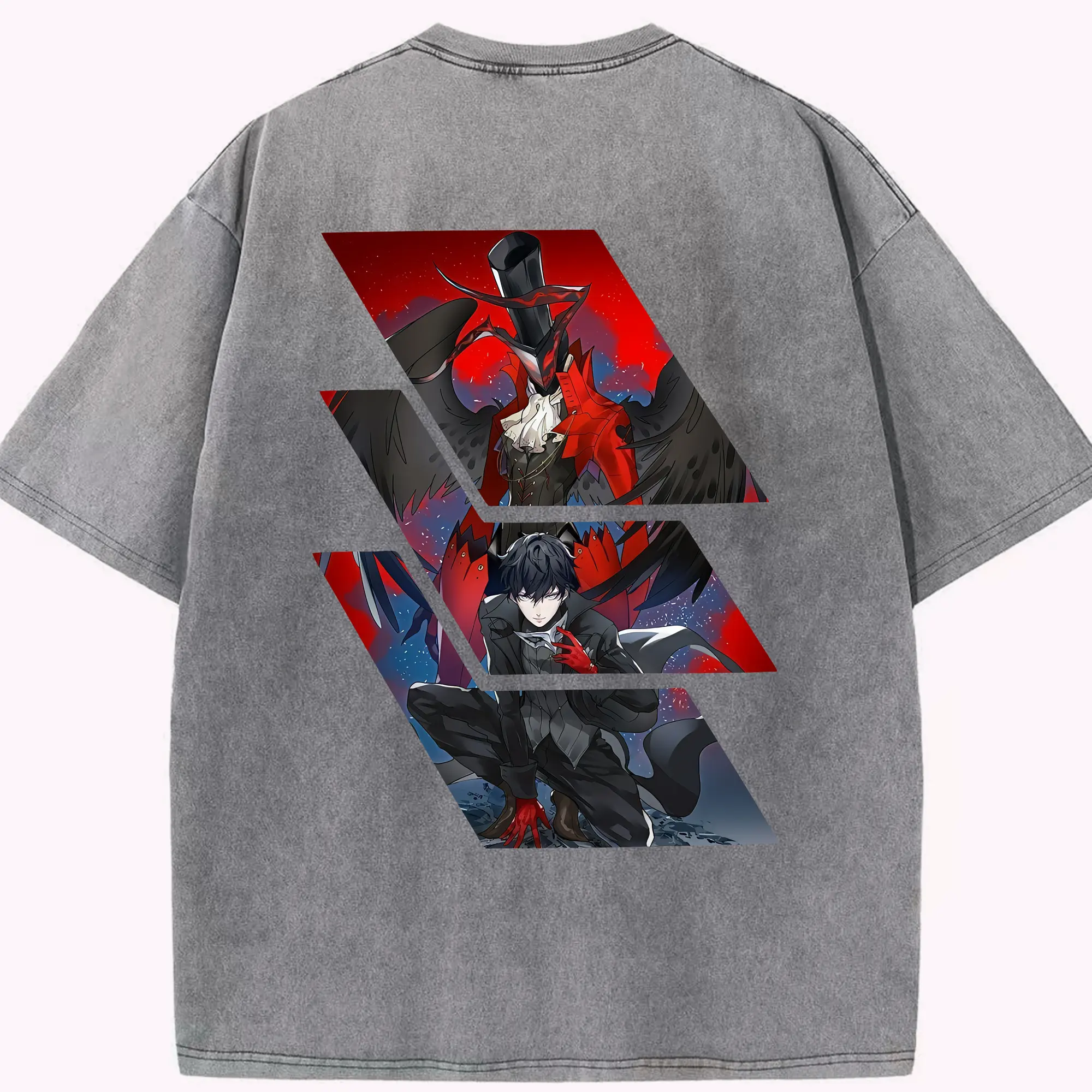 ペルソナ グッズ,主人公 - 綿100% ヴィンテージ風 半袖Tシャツ ・ 背面プリント ・ 柔らか肌触り ・ 通気性 快適 ・ スポーツ カジュアル 外出用