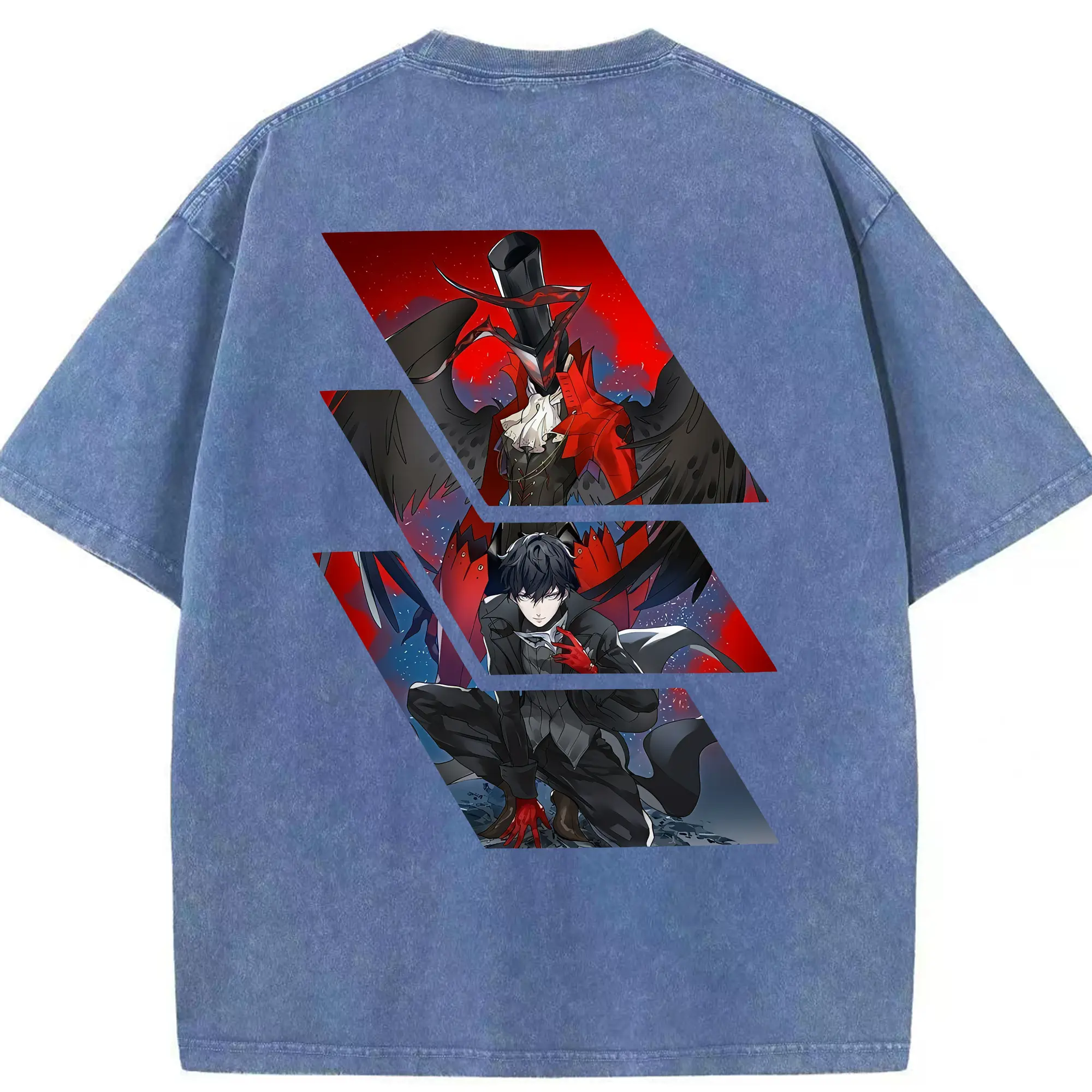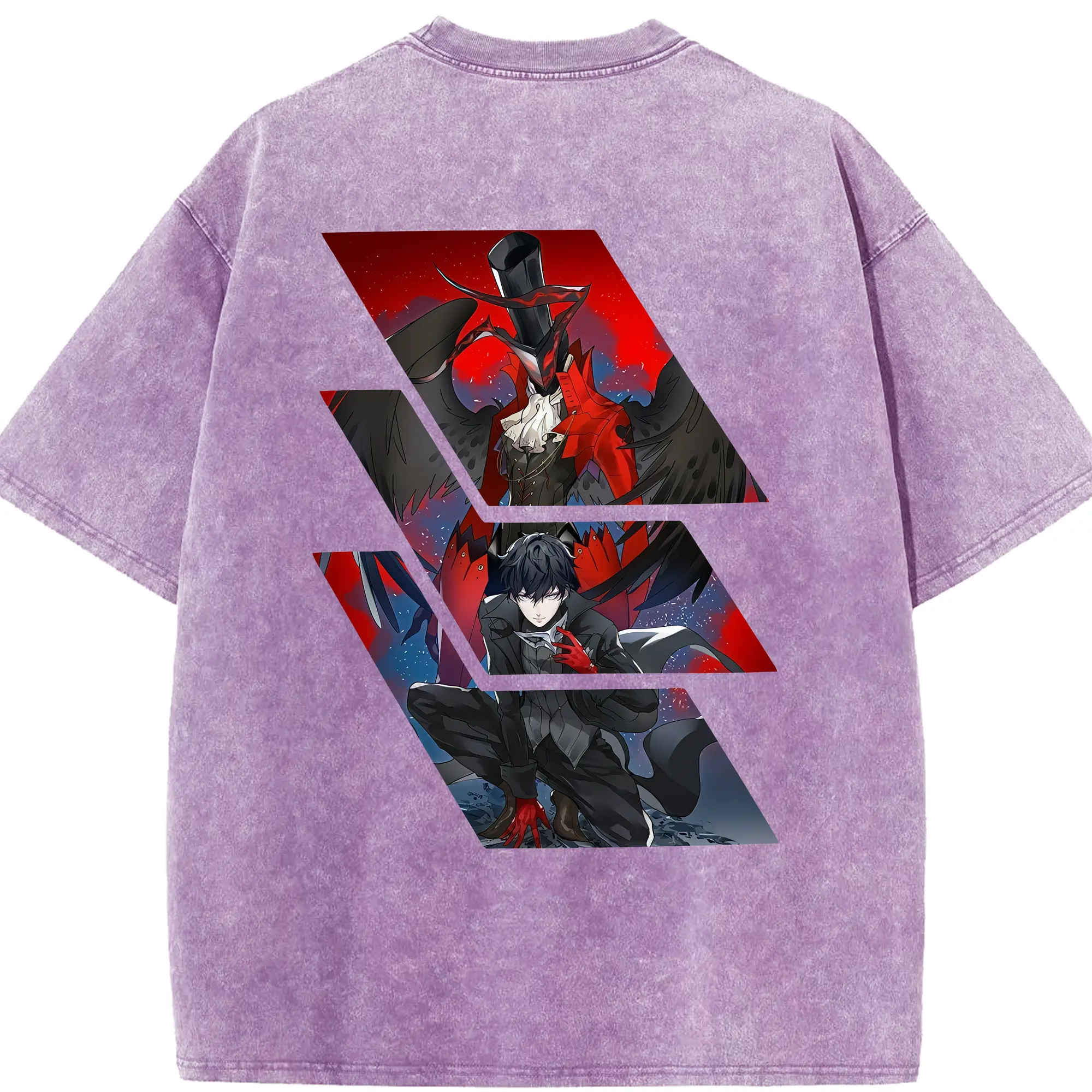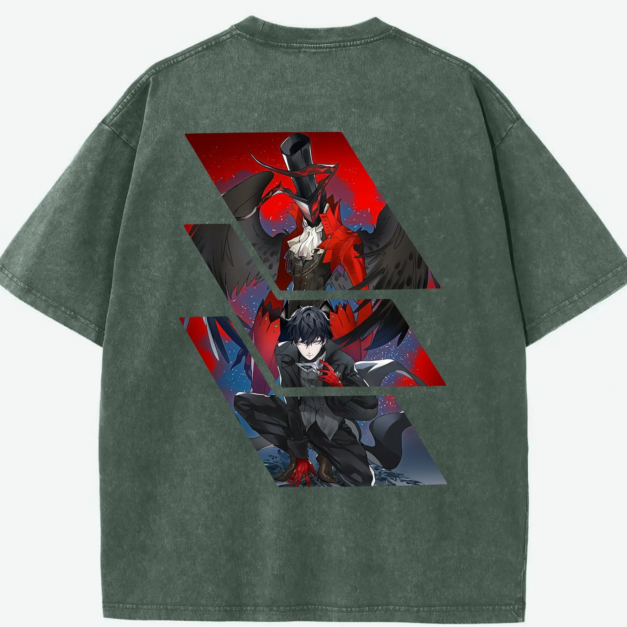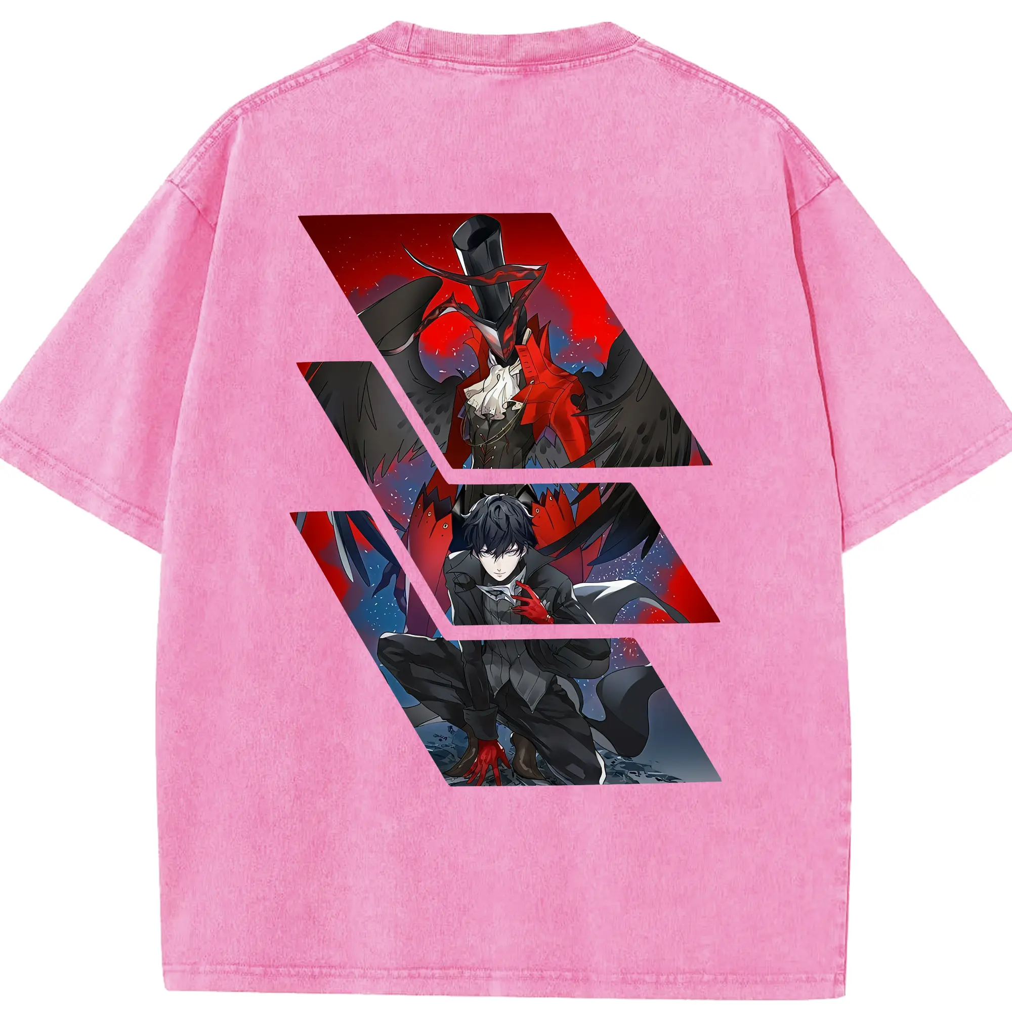 ペルソナ グッズ,主人公 - 綿100% ヴィンテージ風 半袖Tシャツ ・ 背面プリント ・ 柔らか肌触り ・ 通気性 快適 ・ スポーツ カジュアル 外出用