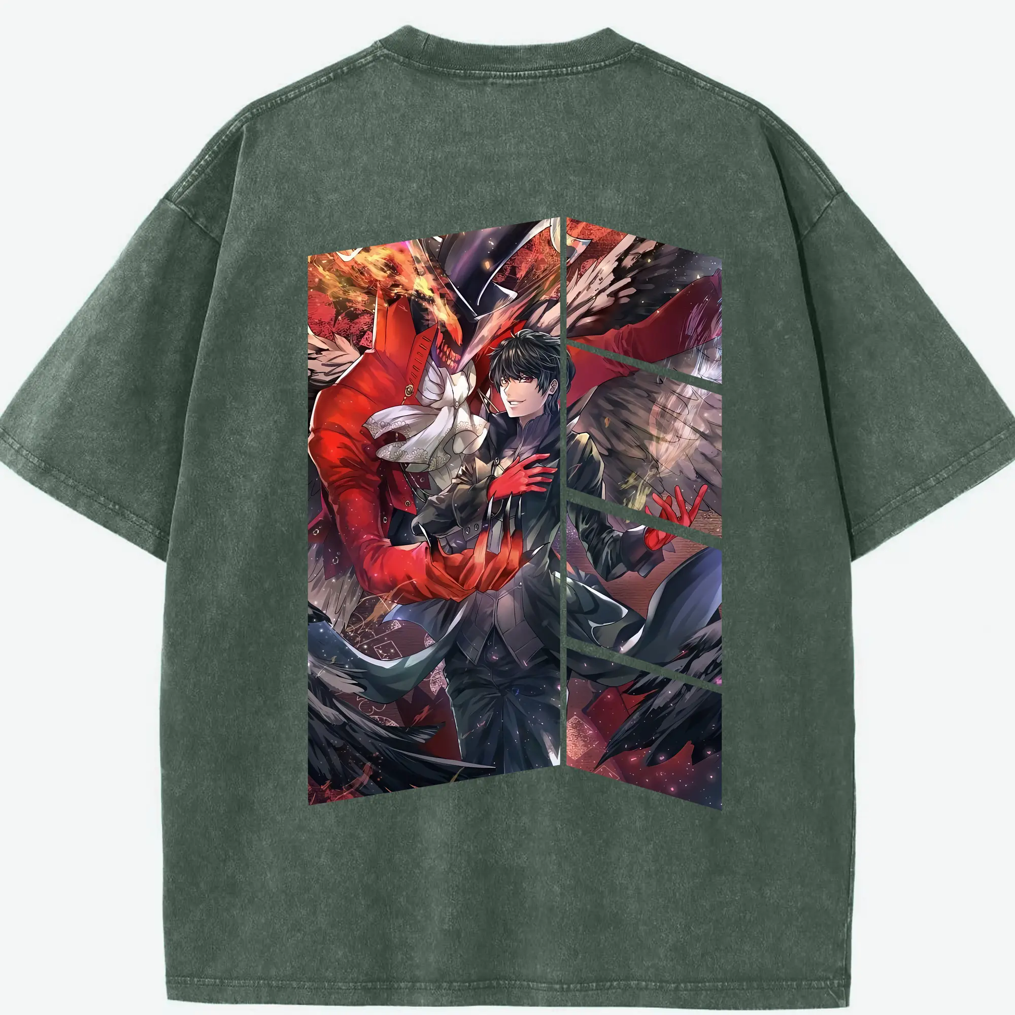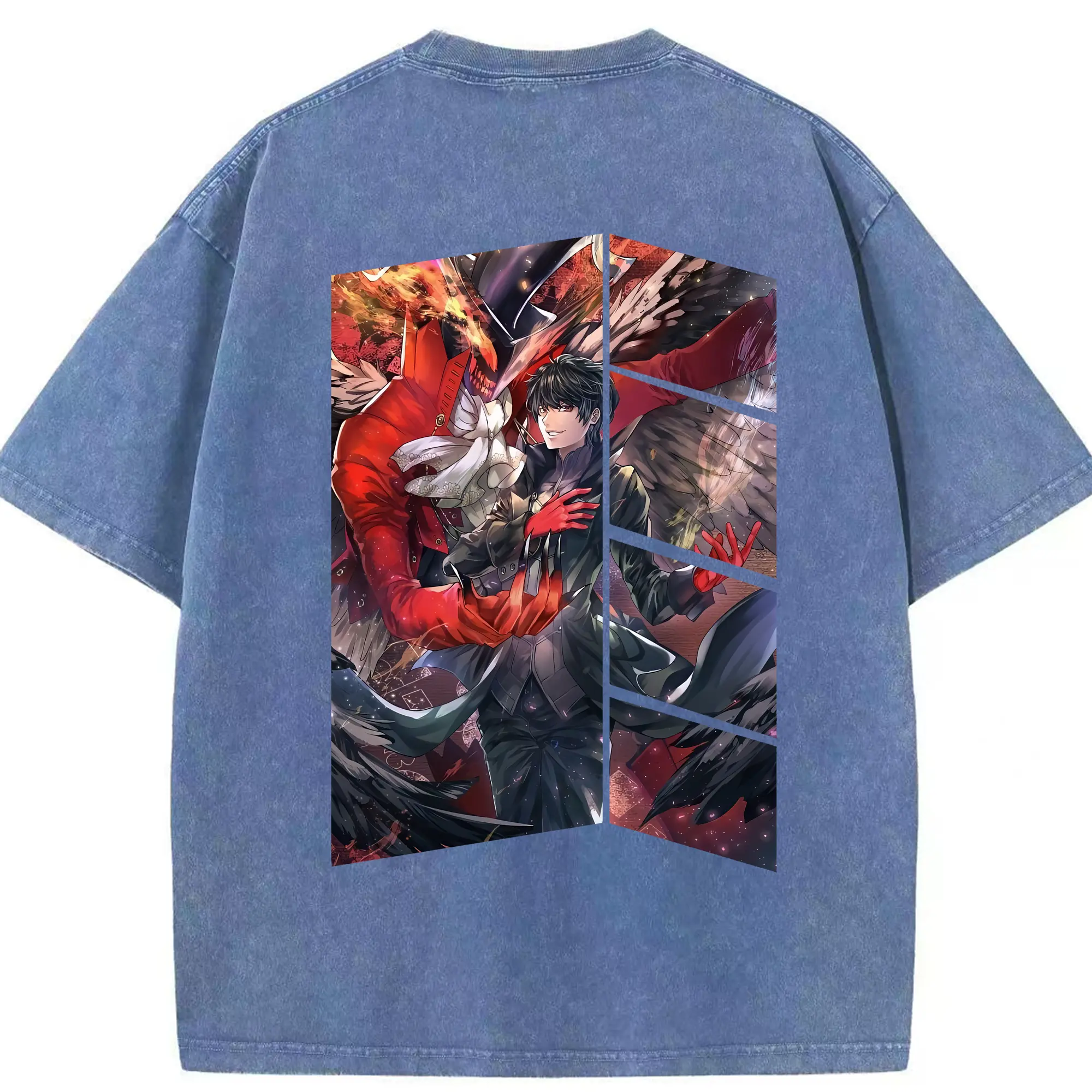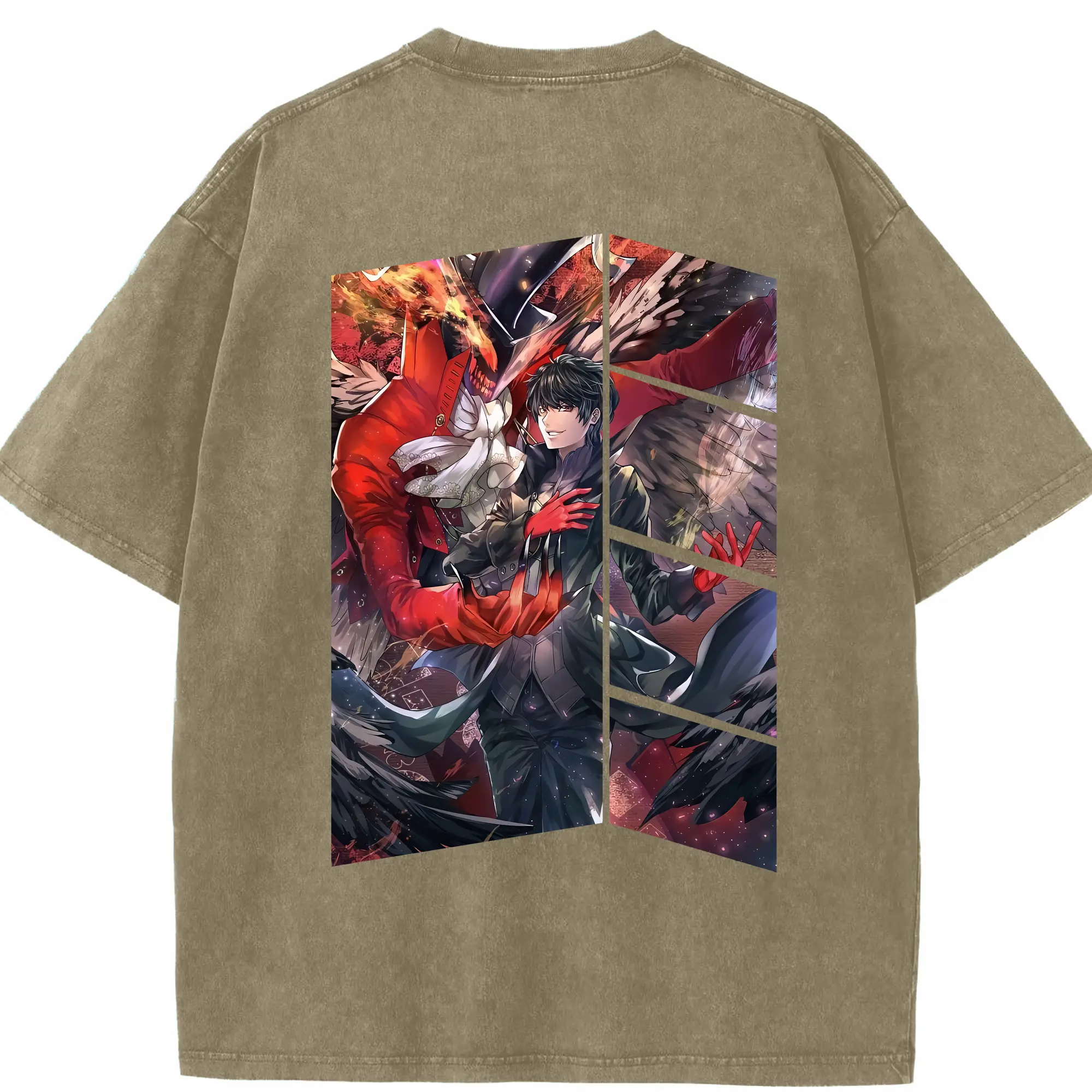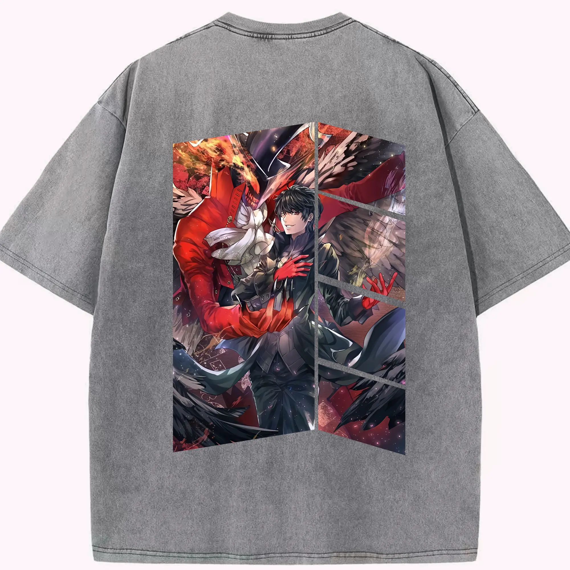 ペルソナ グッズ,主人公 - 綿100% ヴィンテージ風 半袖Tシャツ ・ フロントプリント ・ 柔らか肌触り ・ 通気性 快適 ・ スポーツ カジュアル 外出用