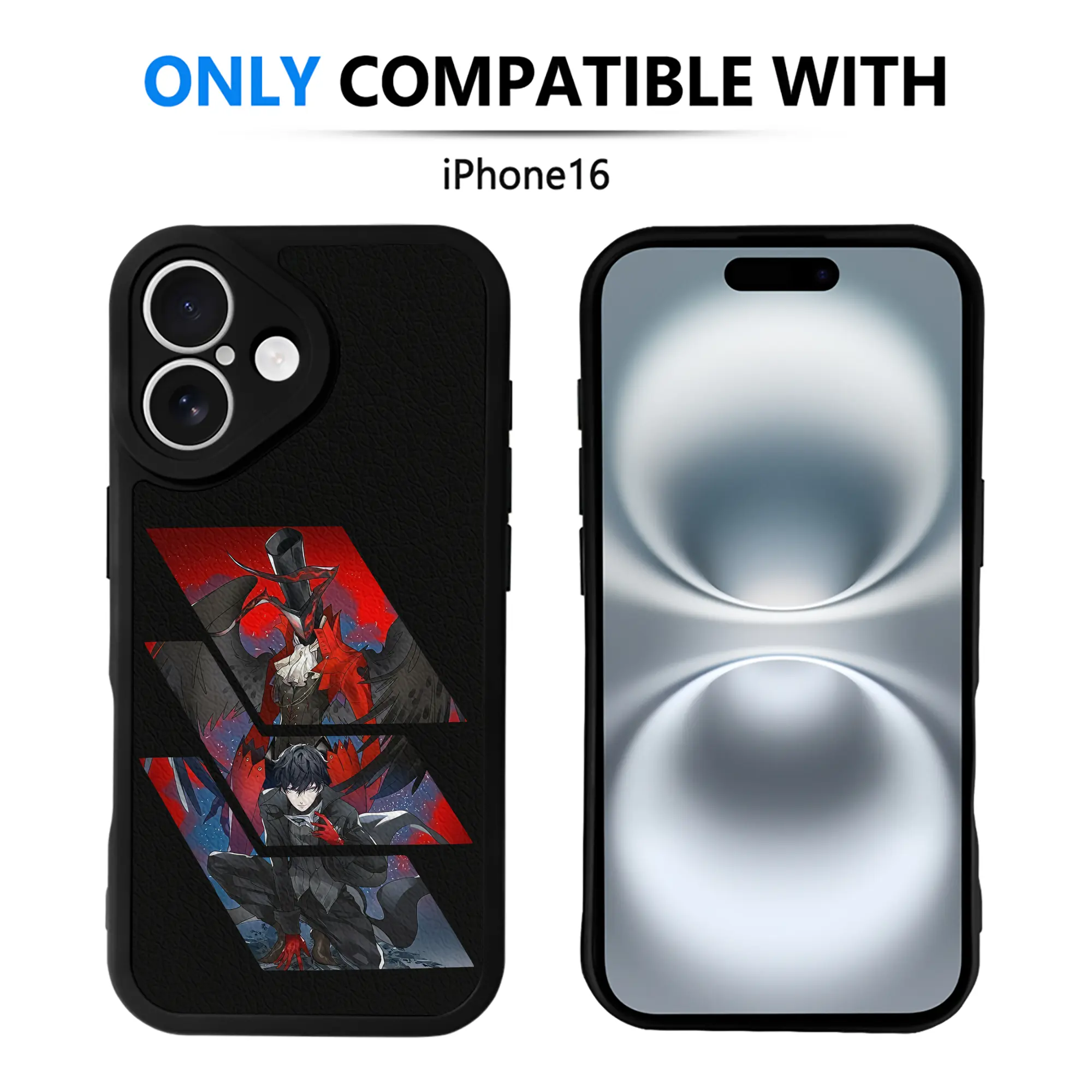 ペルソナ グッズ,主人公 - IPhone 16シリーズ対応 ・ シリコンスマホケース ・ レザー調 ・ 高精度フィット ・ 耐衝撃 ・ ワイヤレス充電対応 ・ 精密カット
