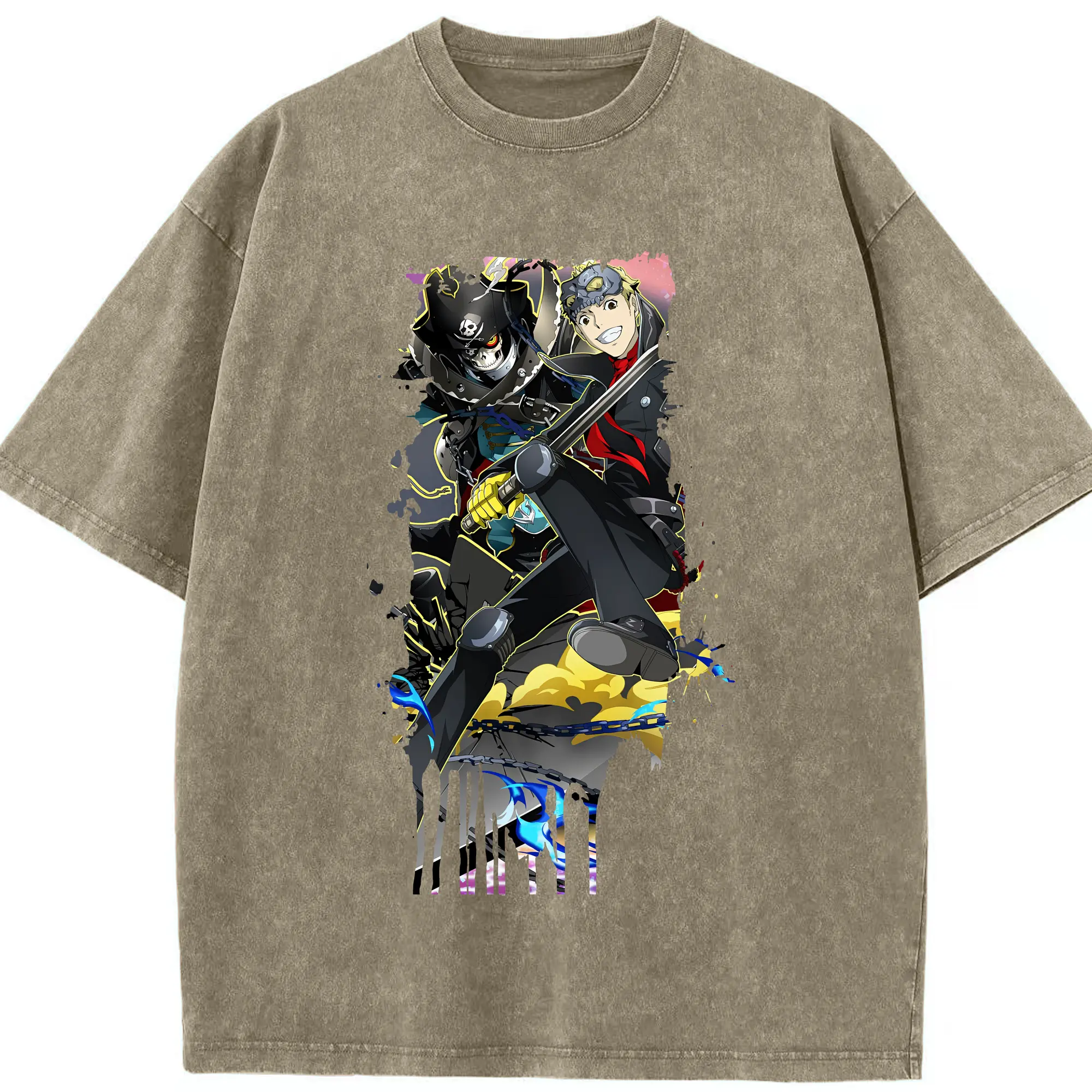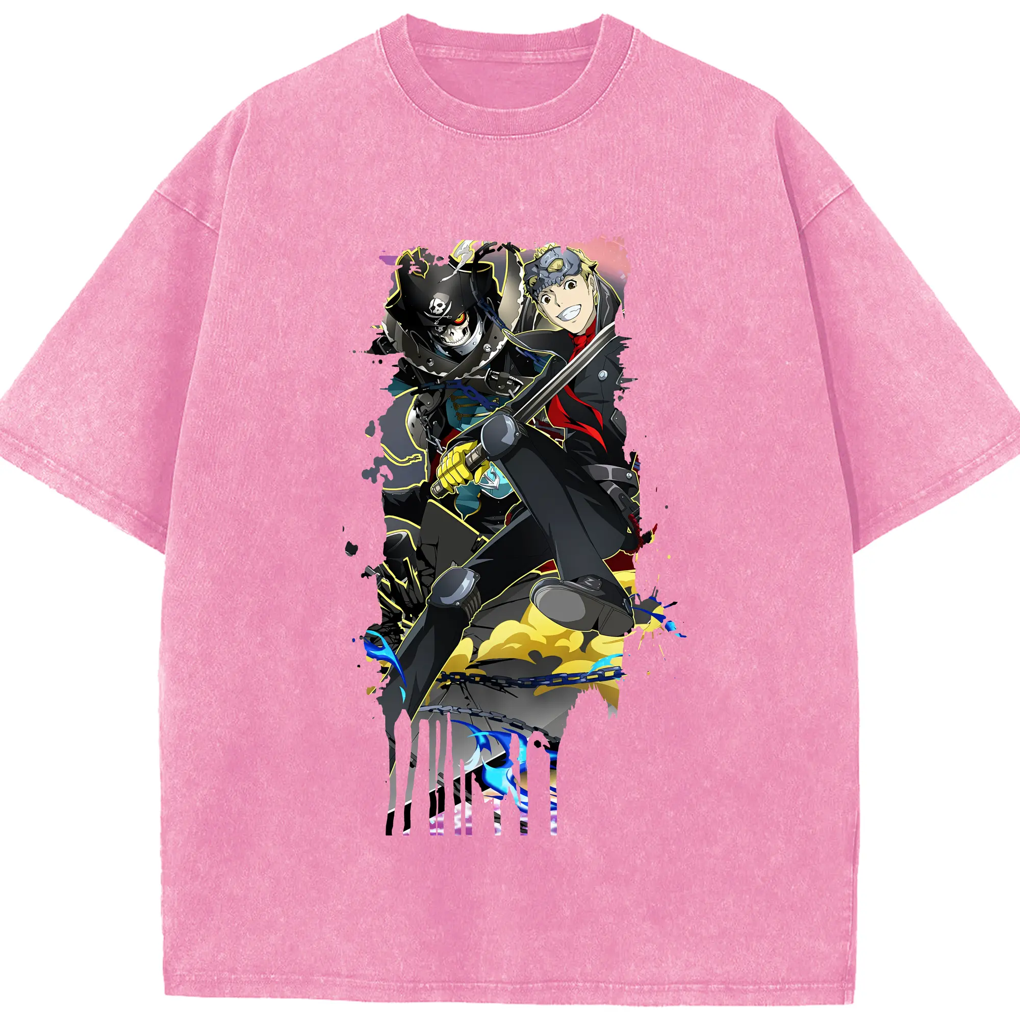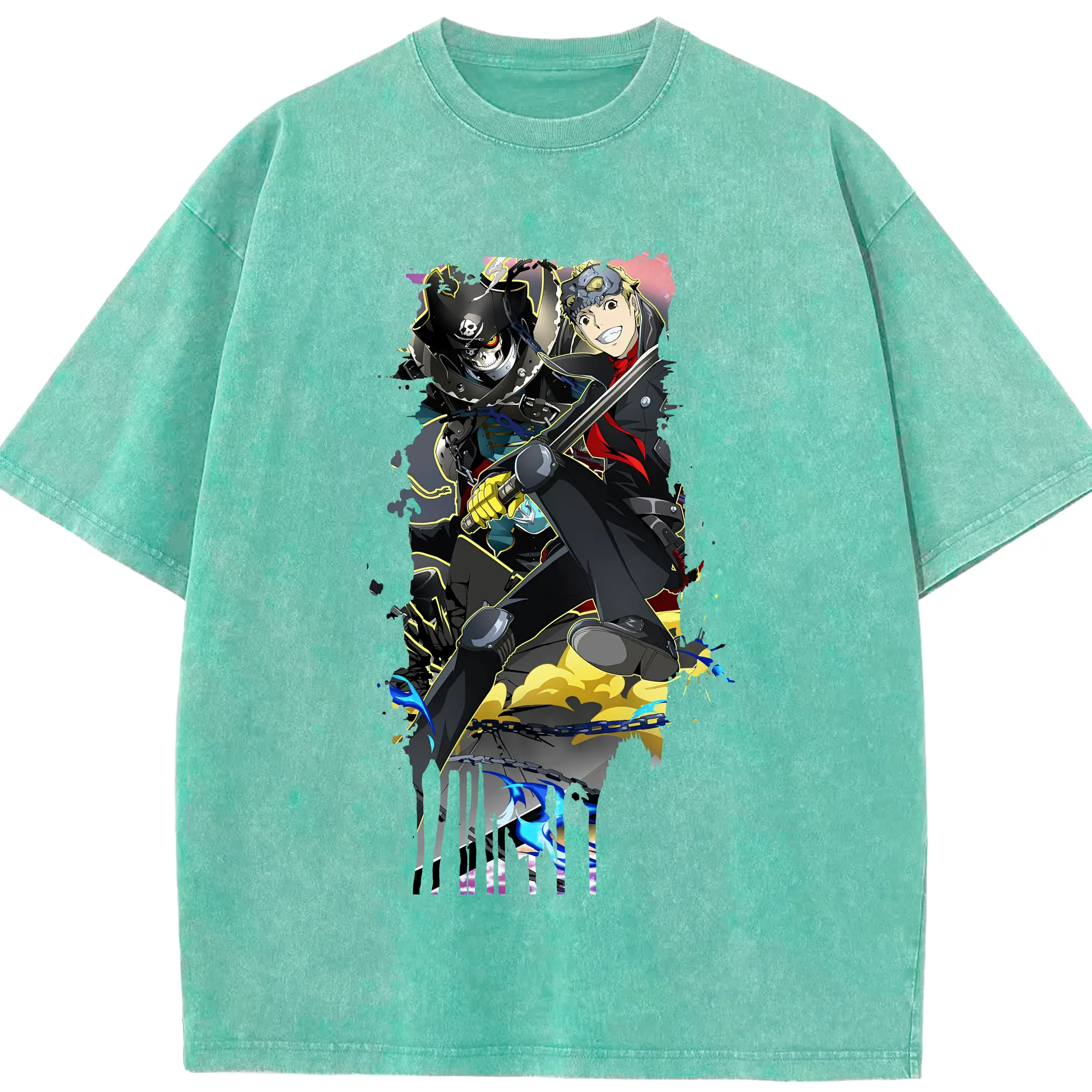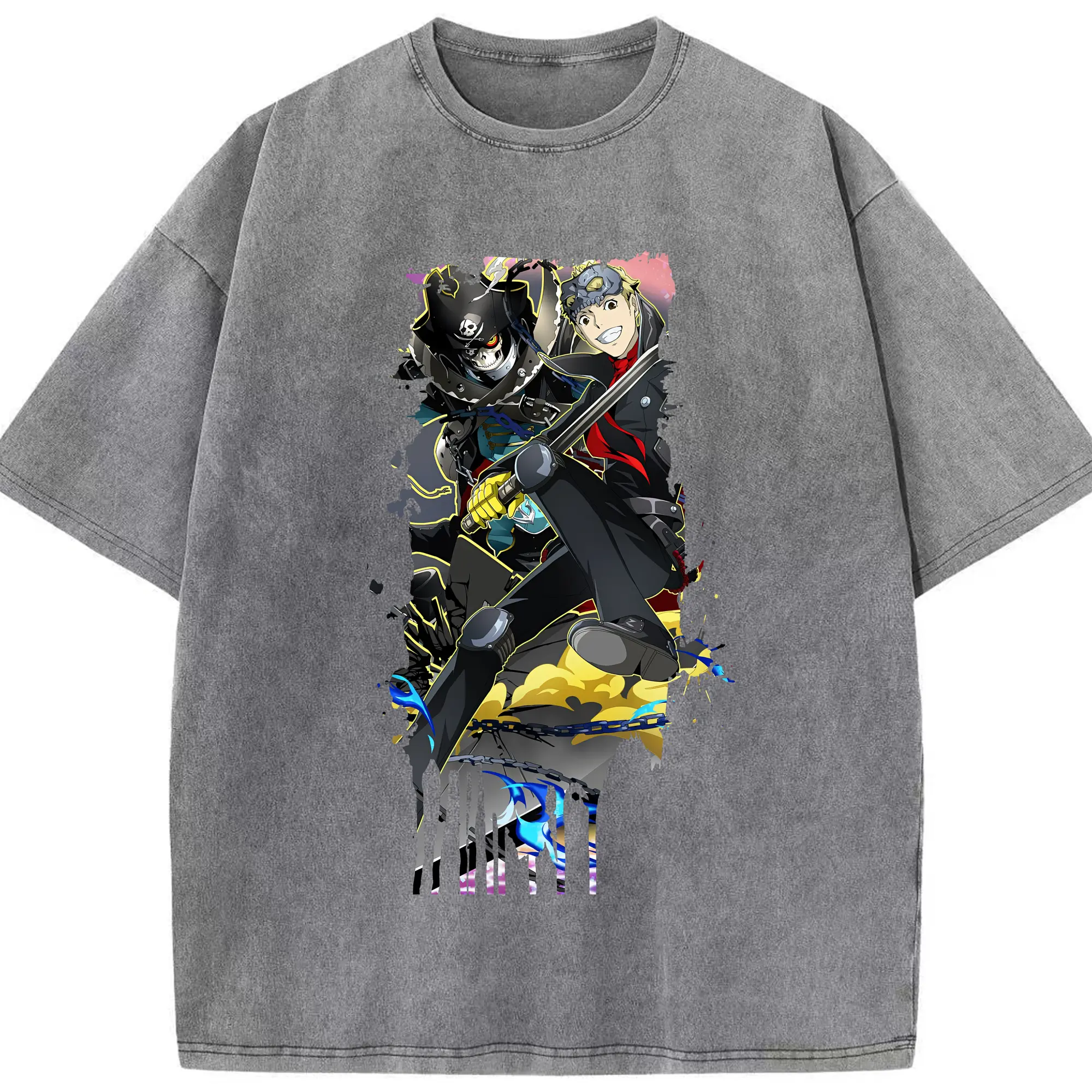 ペルソナ グッズ,坂本竜司 - 綿100% ヴィンテージ風 半袖Tシャツ ・ 背面プリント ・ 柔らか肌触り ・ 通気性 快適 ・ スポーツ カジュアル 外出用