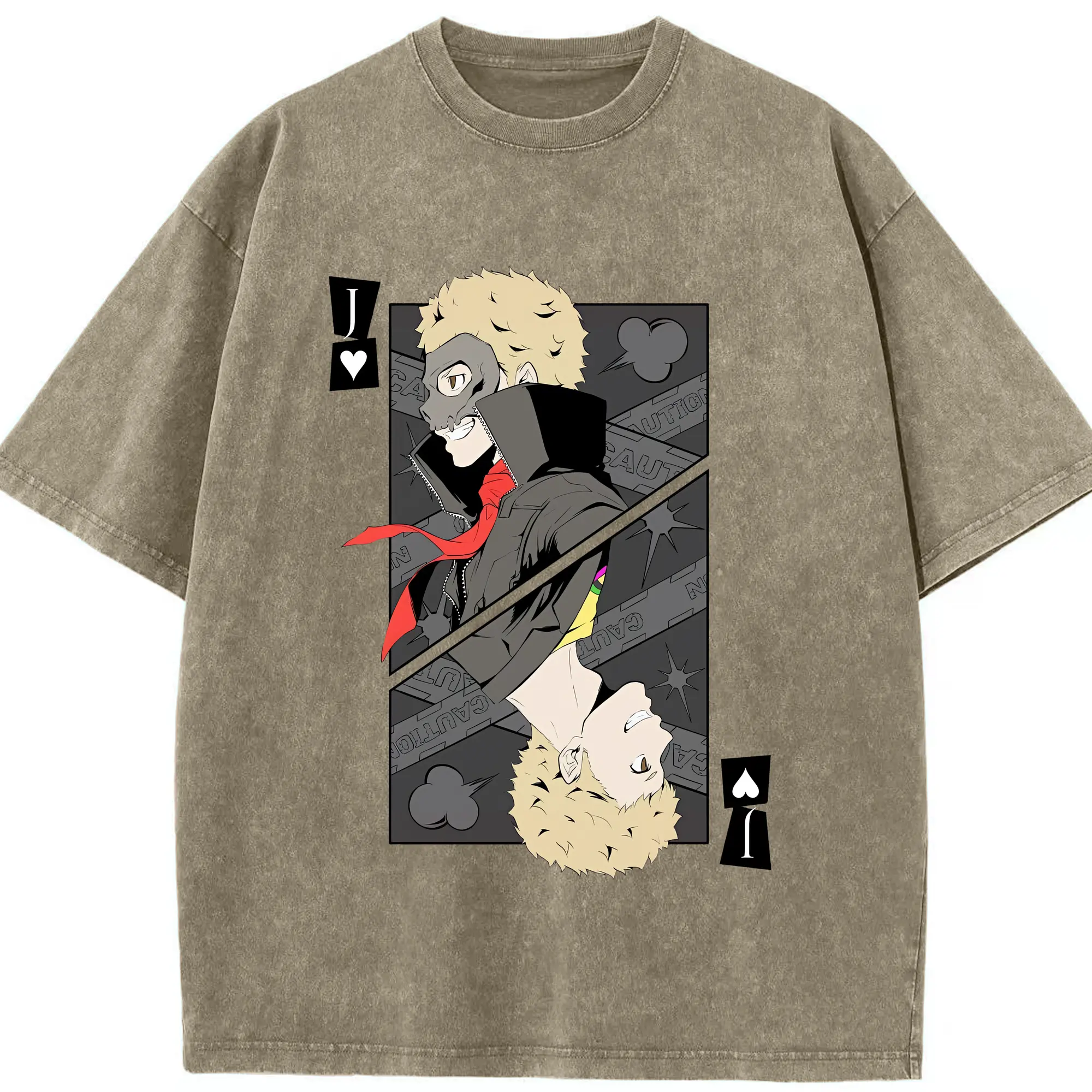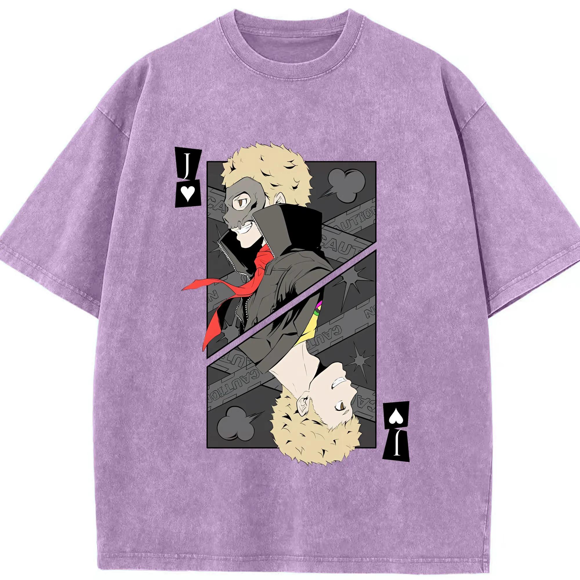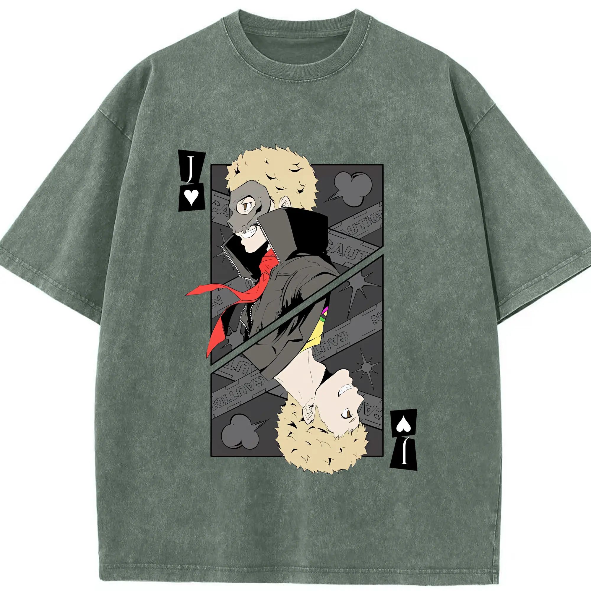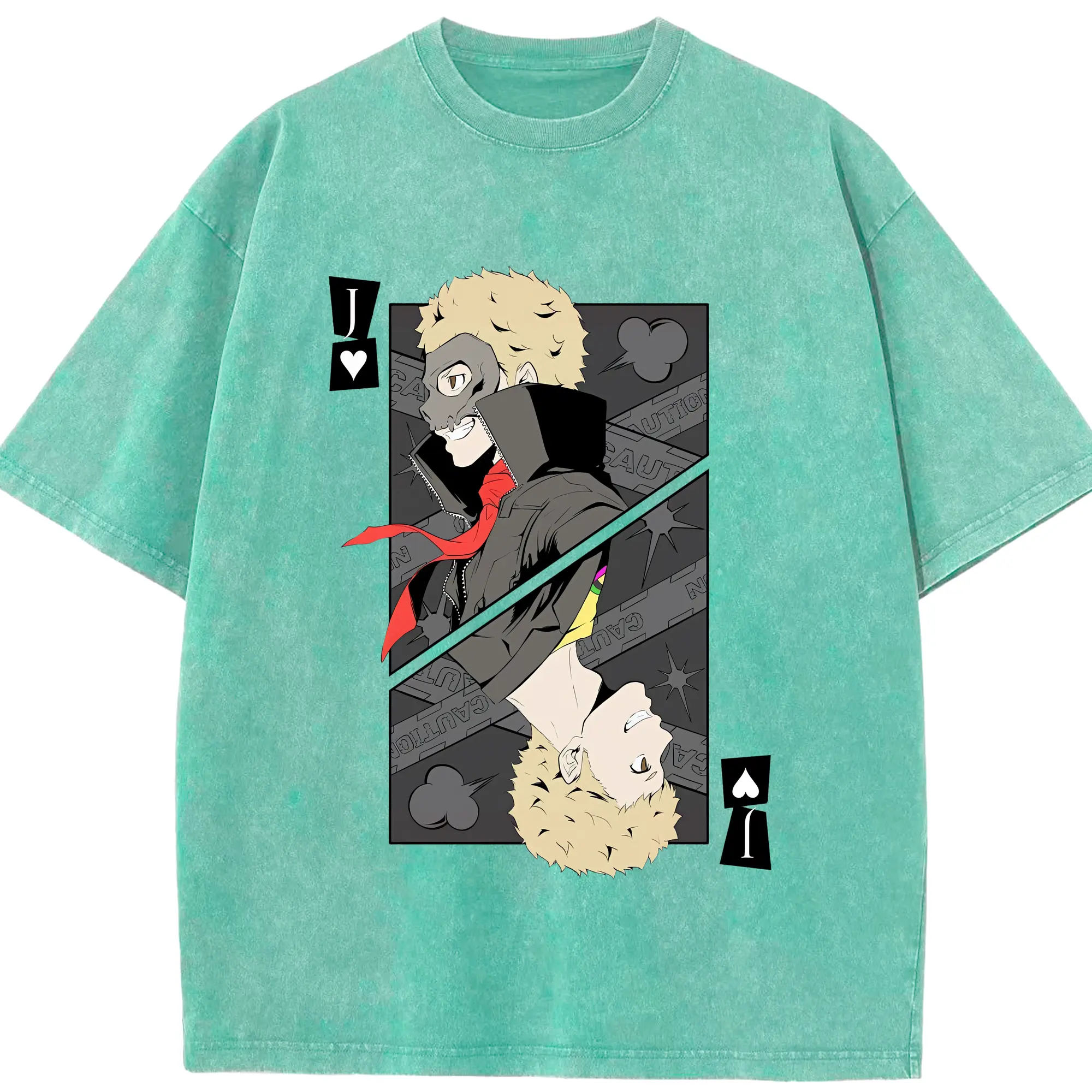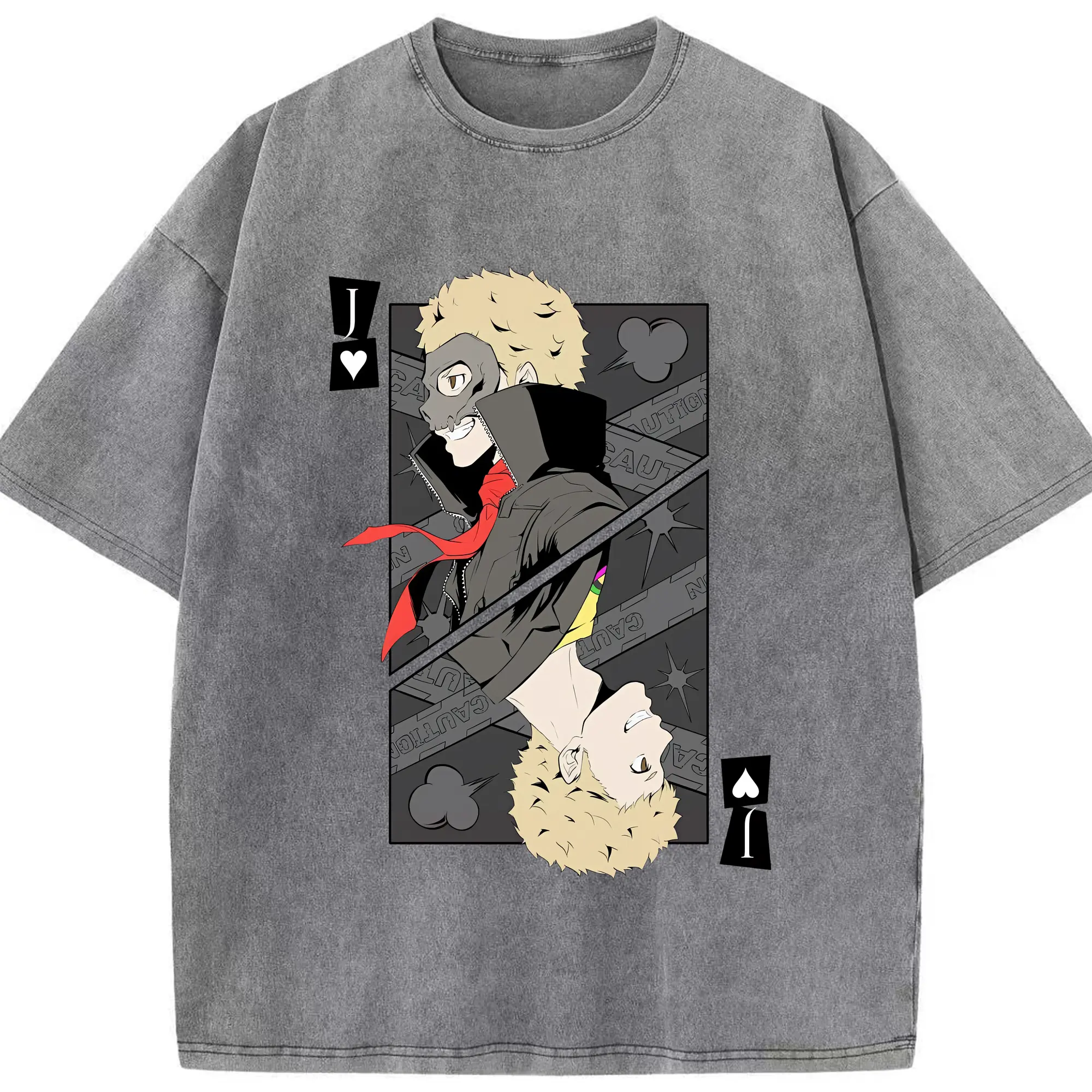 ペルソナ グッズ,坂本竜司 - 綿100% ヴィンテージ風 半袖Tシャツ ・ 背面プリント ・ 柔らか肌触り ・ 通気性 快適 ・ スポーツ カジュアル 外出用