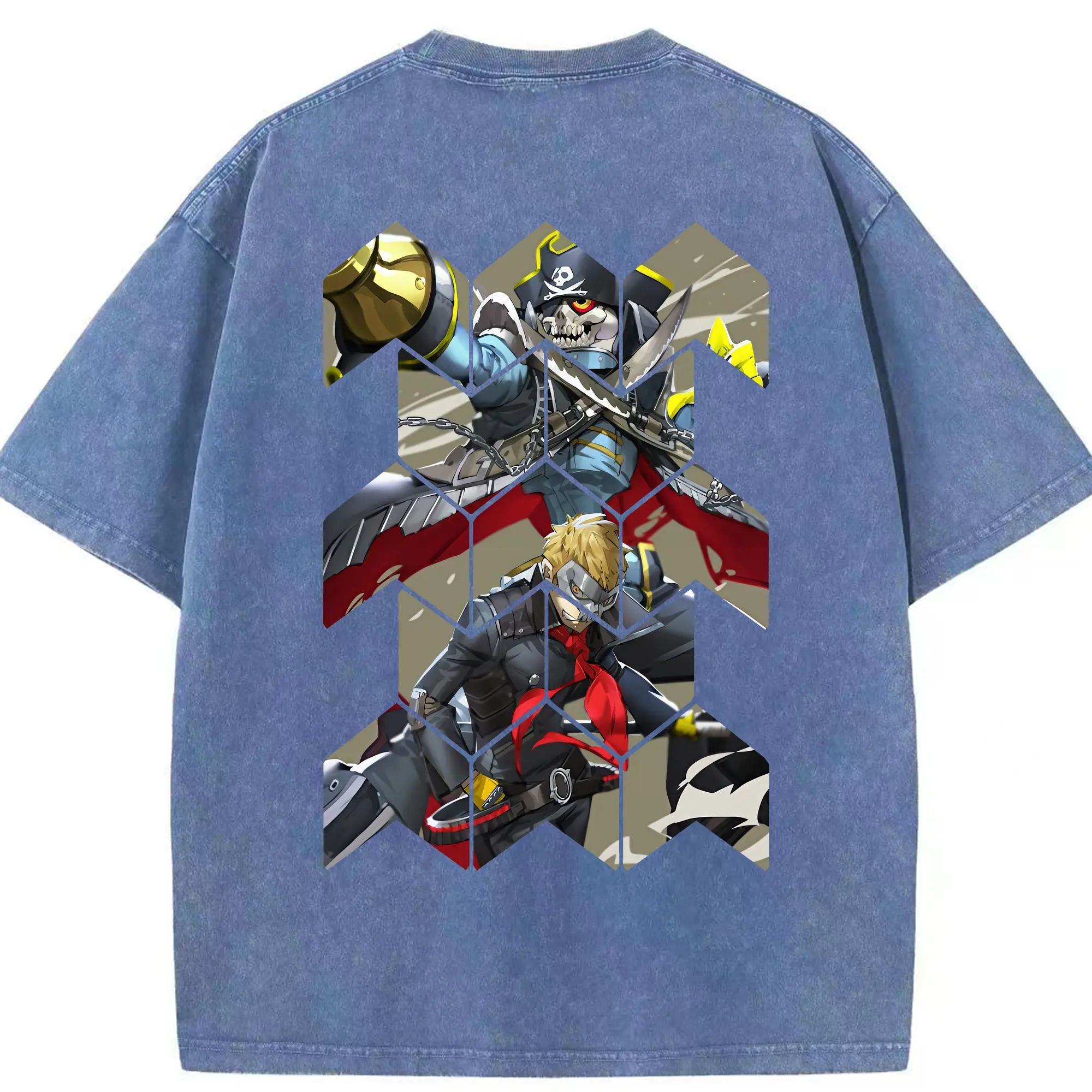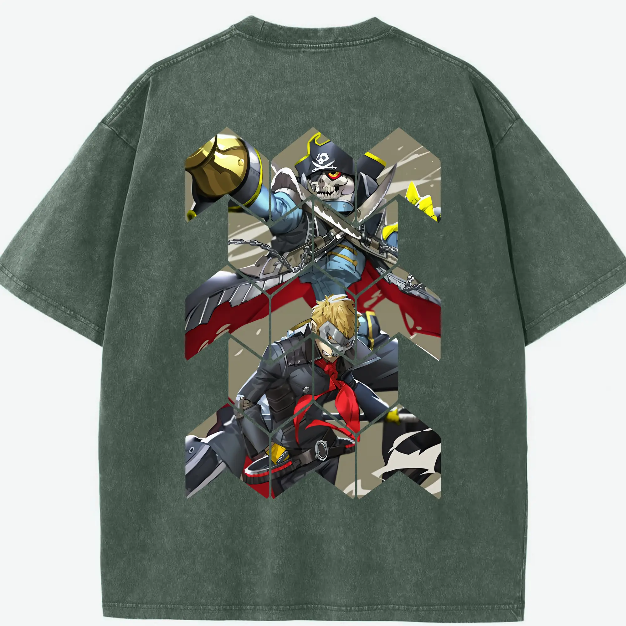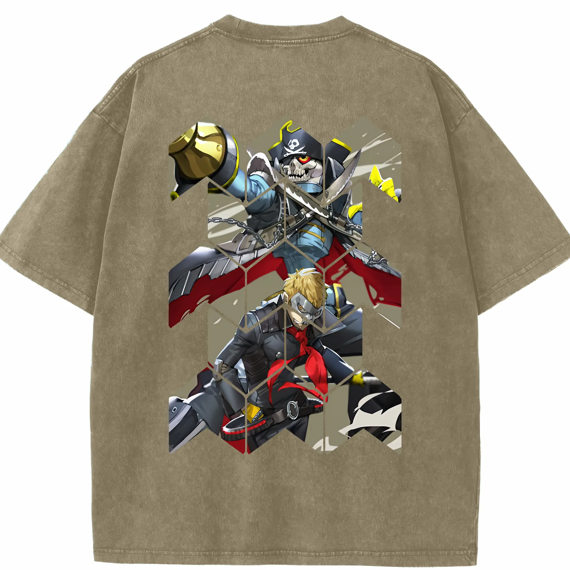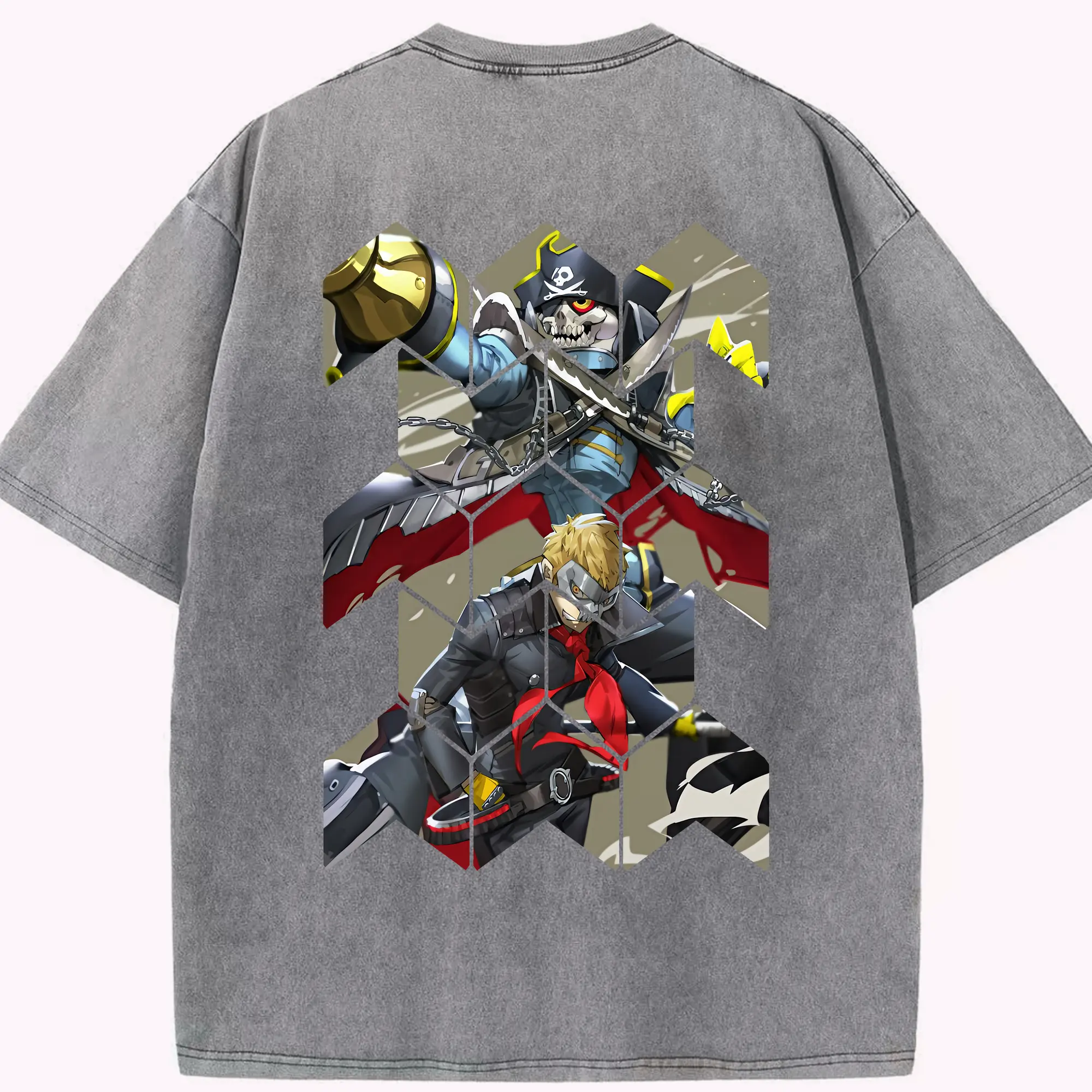 ペルソナ グッズ,坂本竜司 - 綿100% ヴィンテージ風 半袖Tシャツ ・ フロントプリント ・ 柔らか肌触り ・ 通気性 快適 ・ スポーツ カジュアル 外出用
