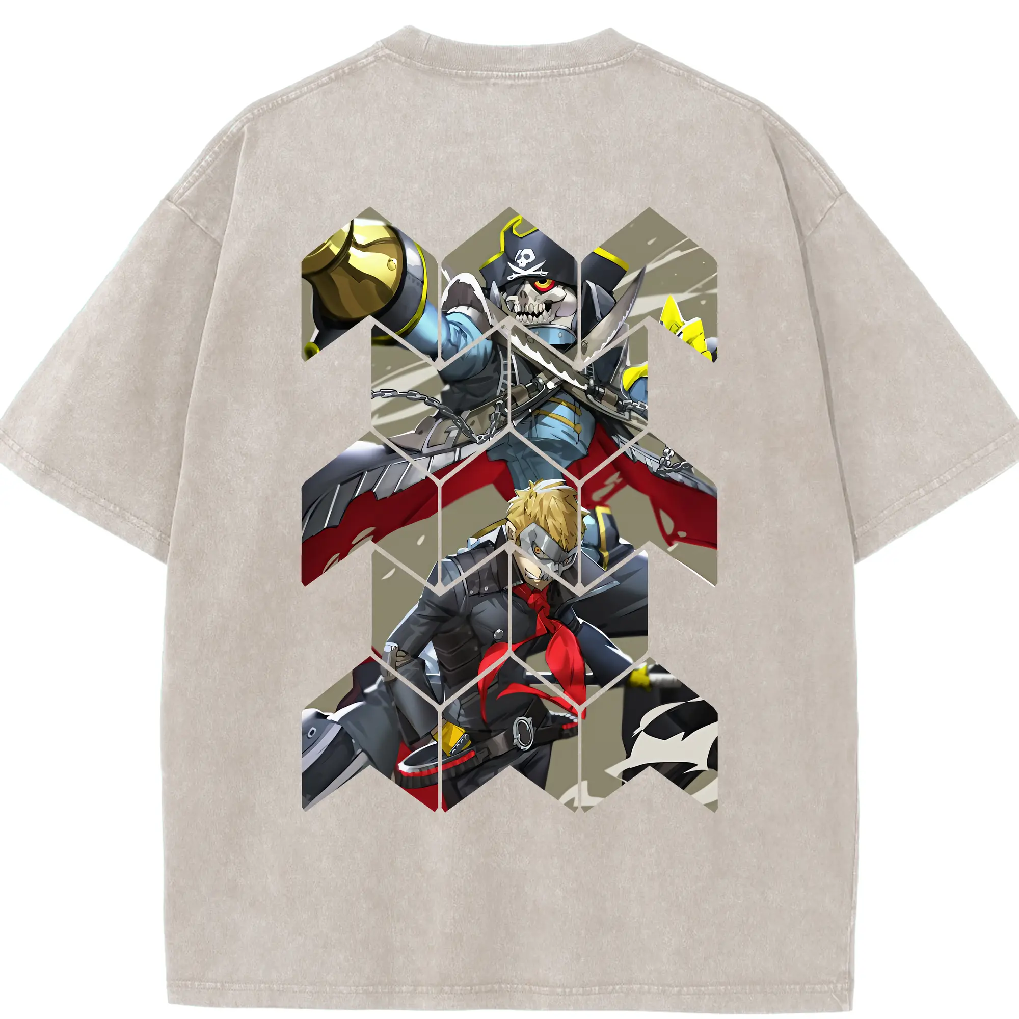 鳴潮 グッズ ザンニー - 綿100% ヴィンテージ風 半袖Tシャツ ・ 背面プリント ・ 柔らか肌触り ・ 通気性 快適 ・ スポーツ カジュアル 外出用