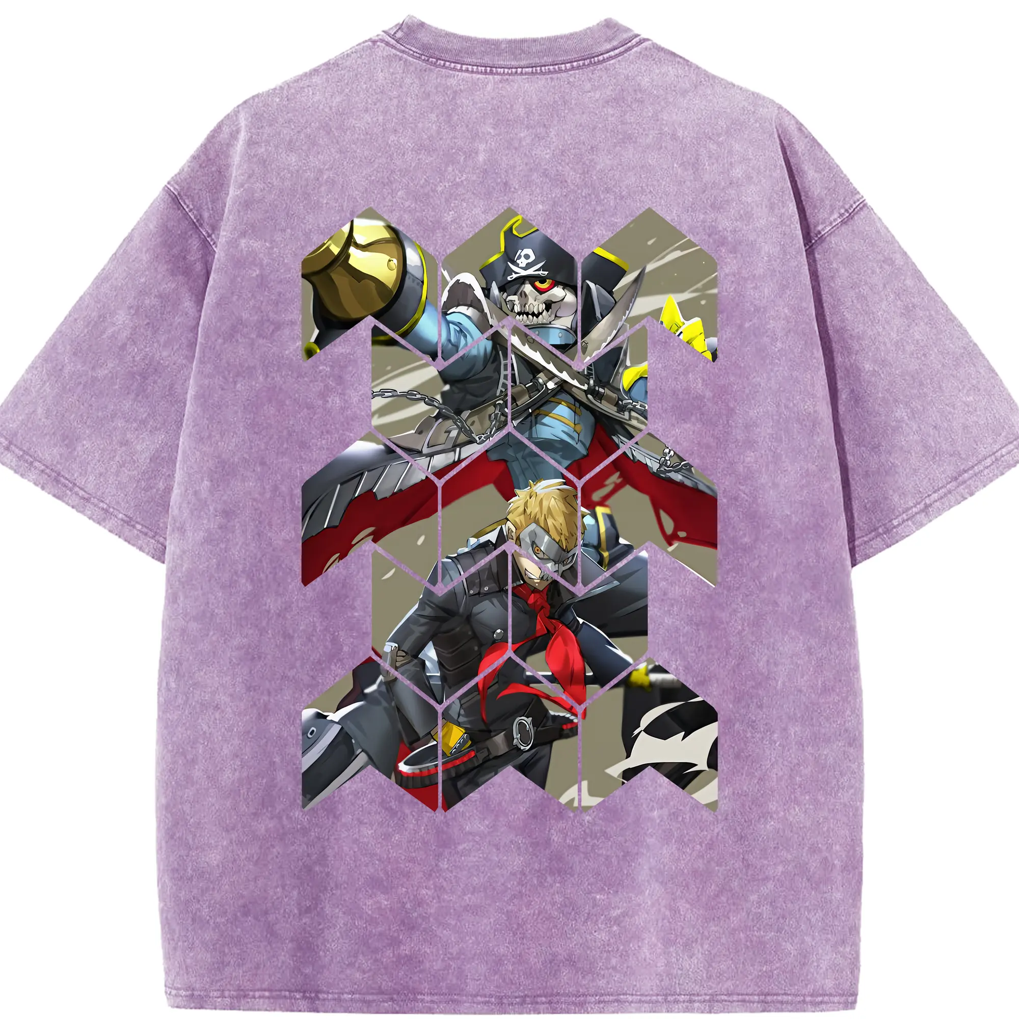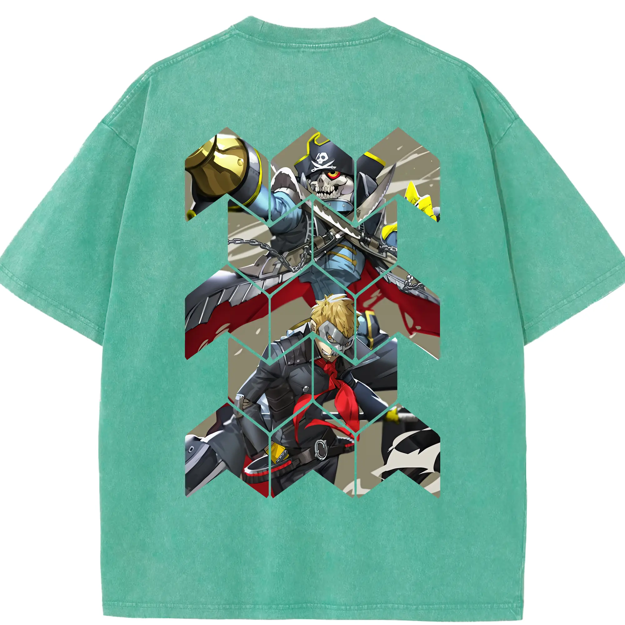 ペルソナ グッズ,坂本竜司 - 綿100% ヴィンテージ風 半袖Tシャツ ・ 背面プリント ・ 柔らか肌触り ・ 通気性 快適 ・ スポーツ カジュアル 外出用