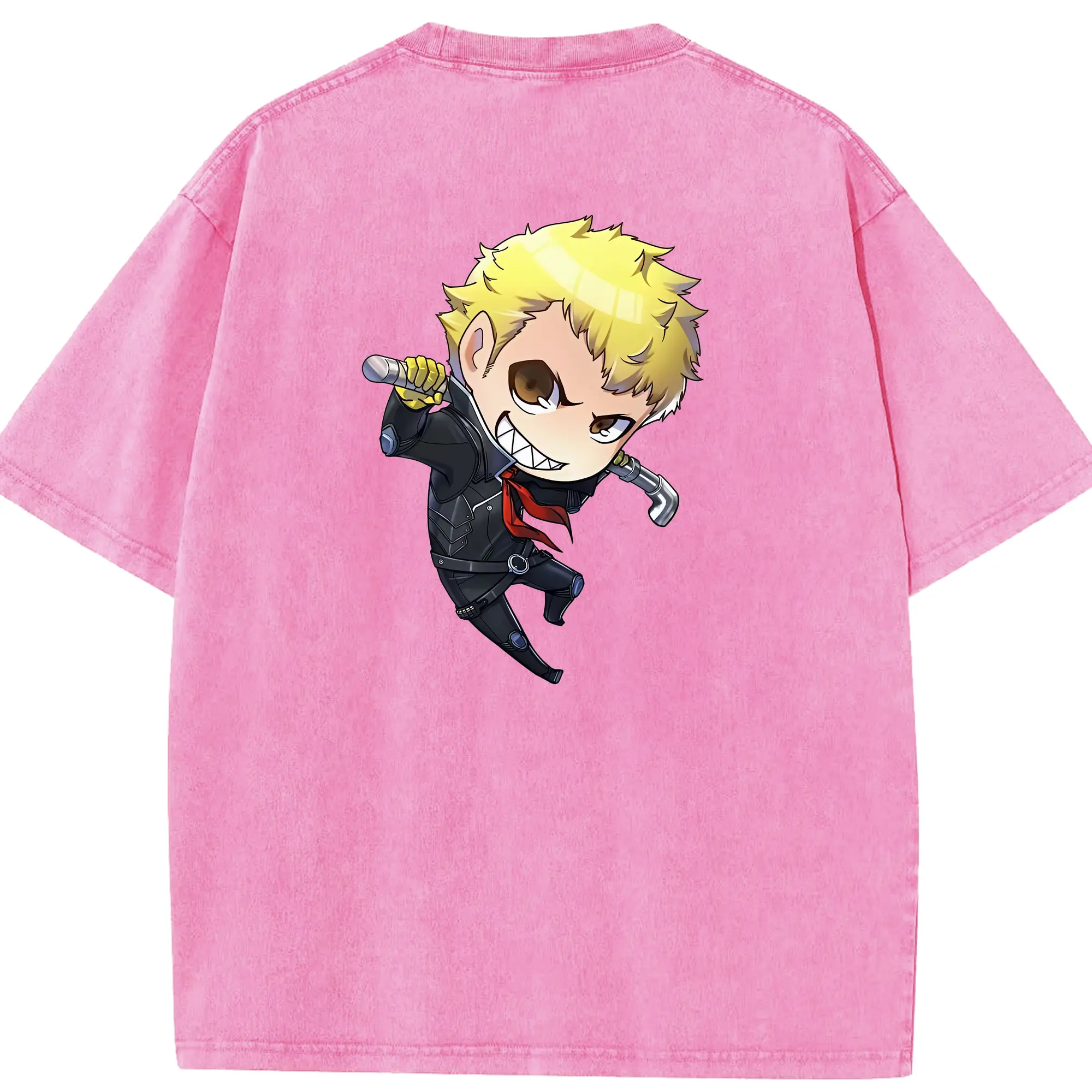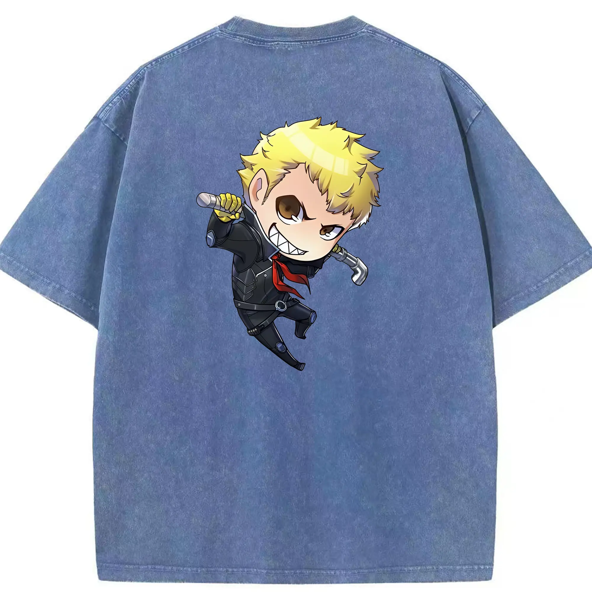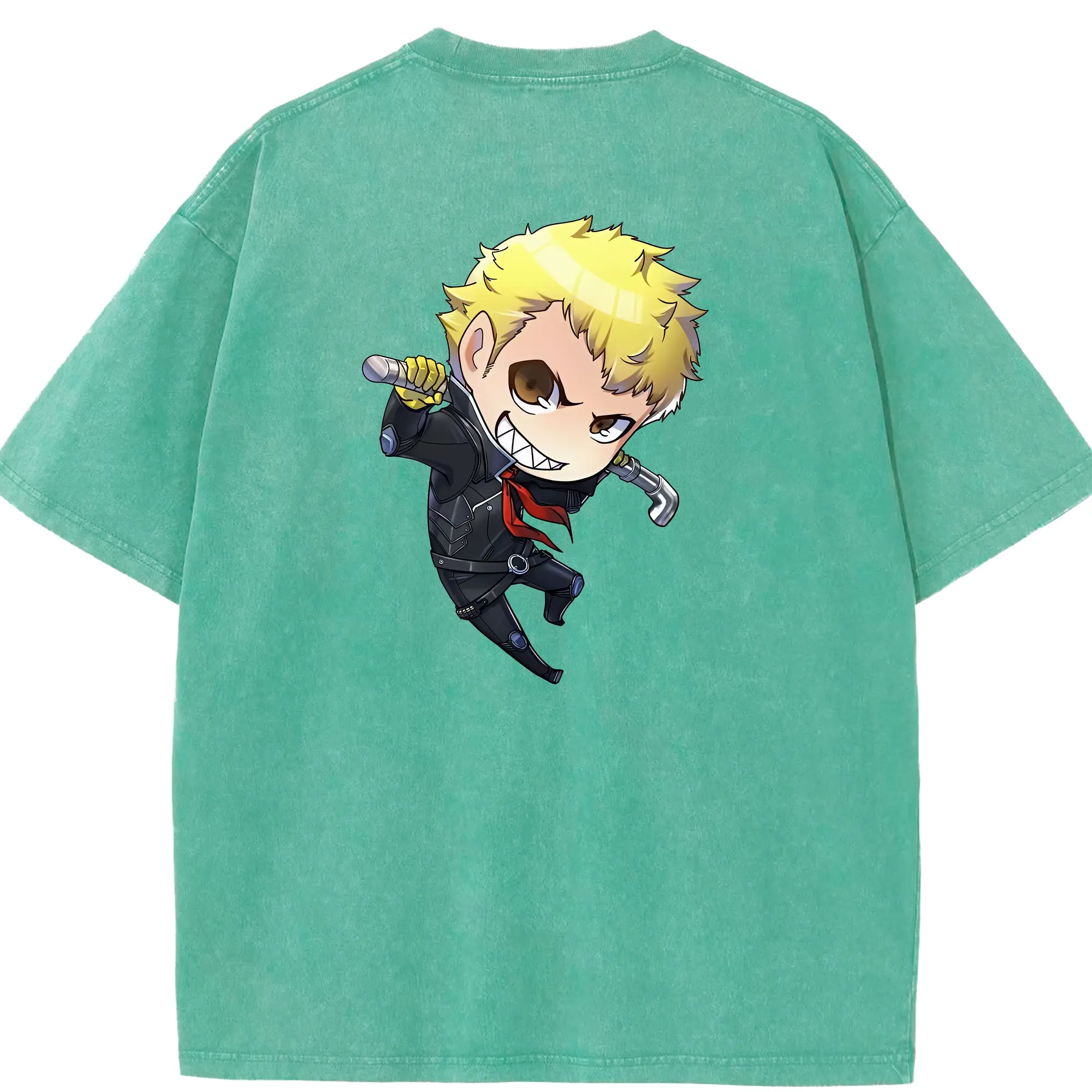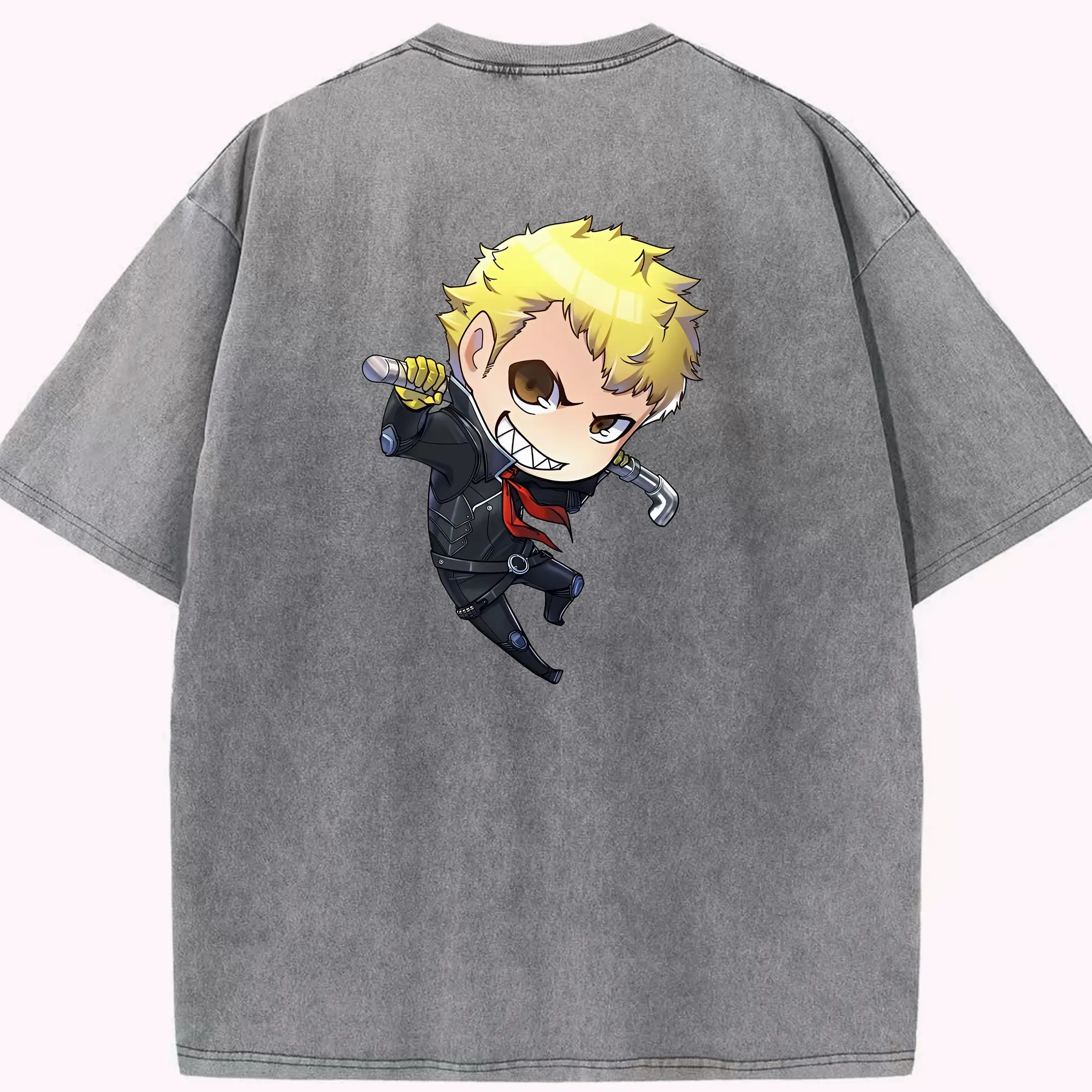 ペルソナ グッズ,坂本竜司 - 綿100% ヴィンテージ風 半袖Tシャツ ・ フロントプリント ・ 柔らか肌触り ・ 通気性 快適 ・ スポーツ カジュアル 外出用