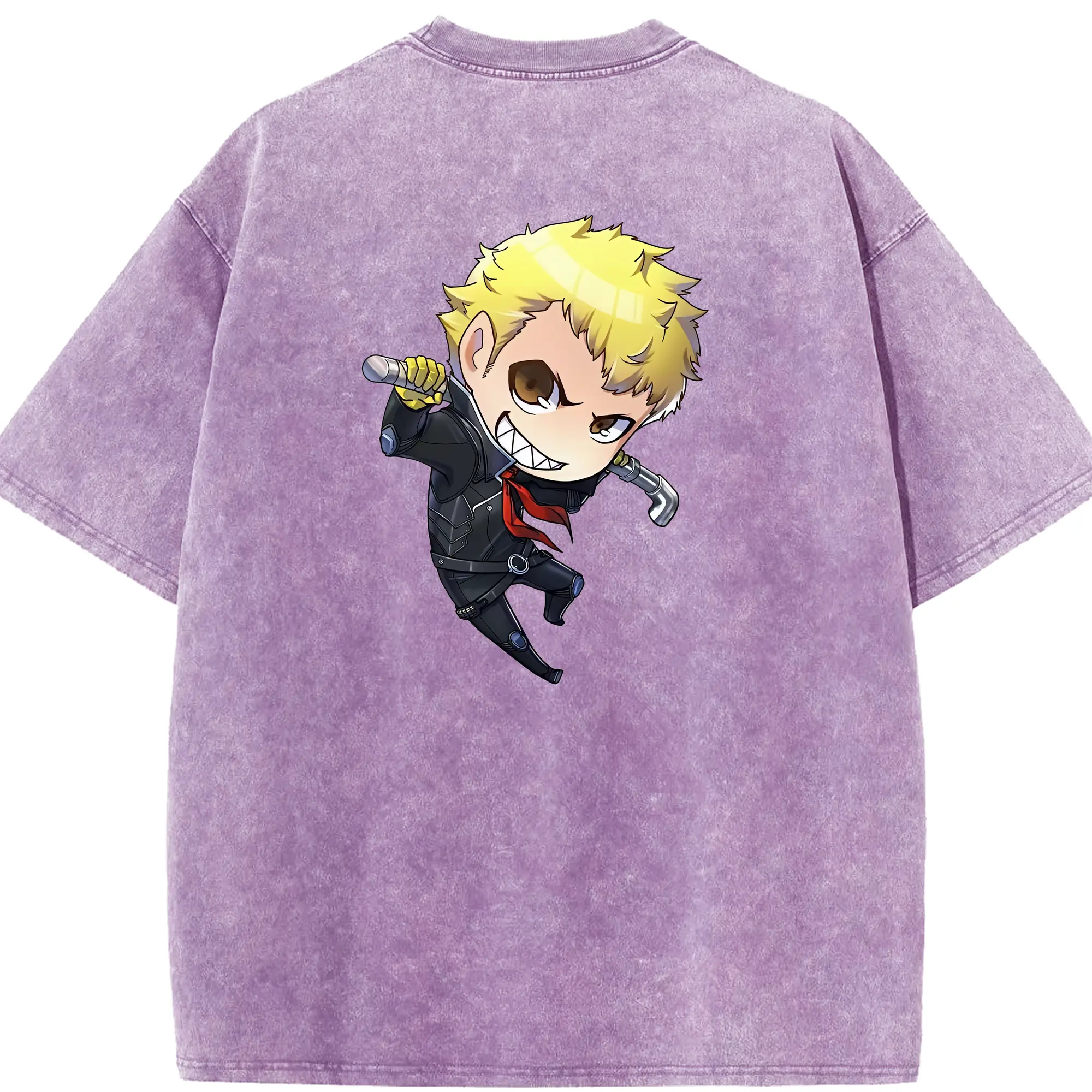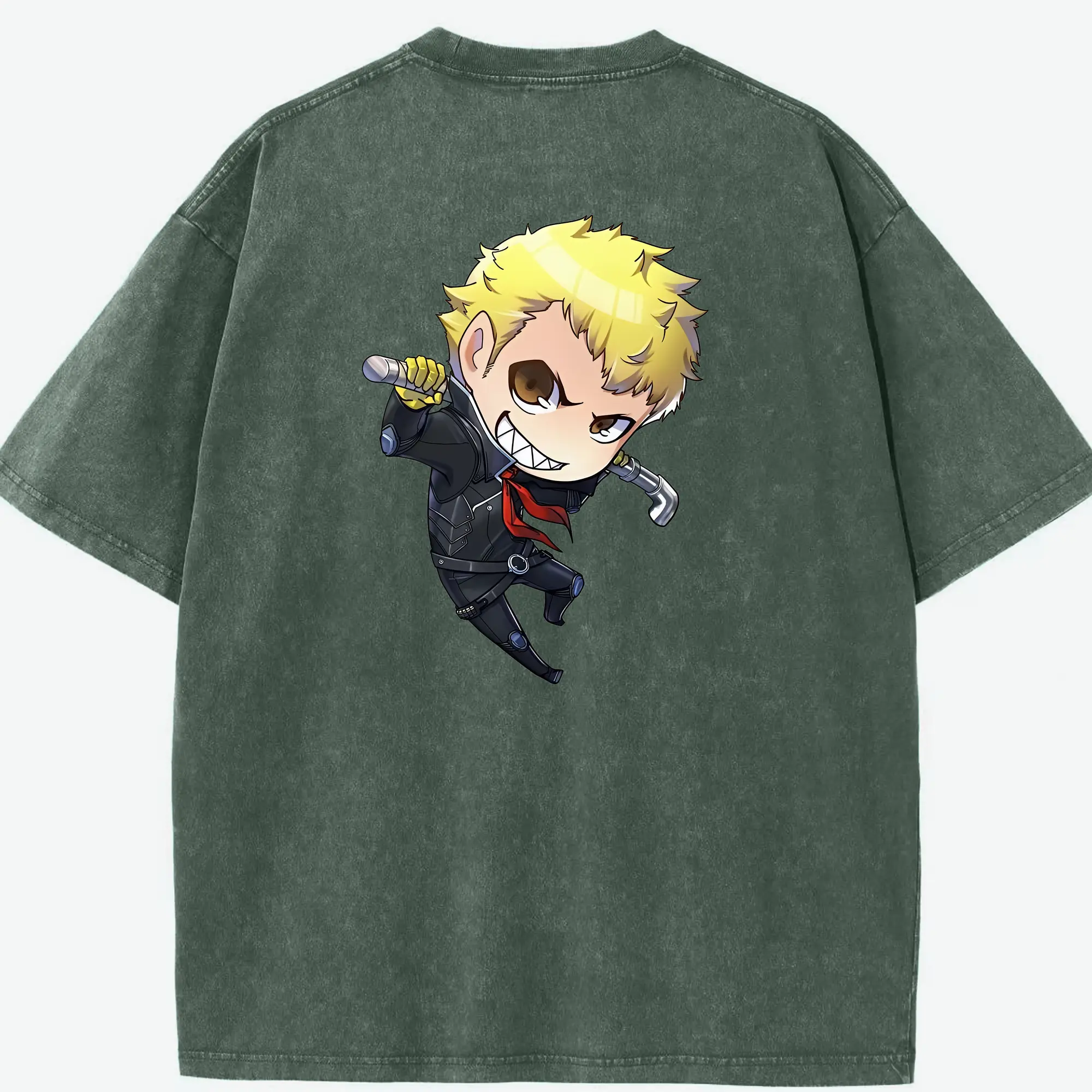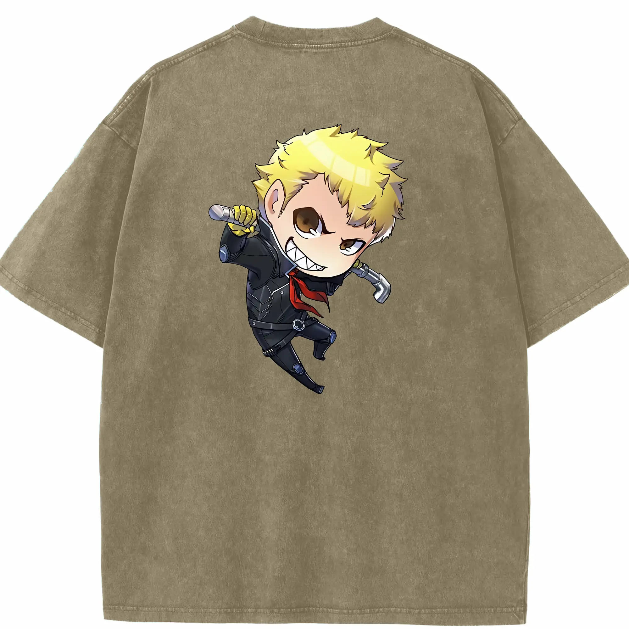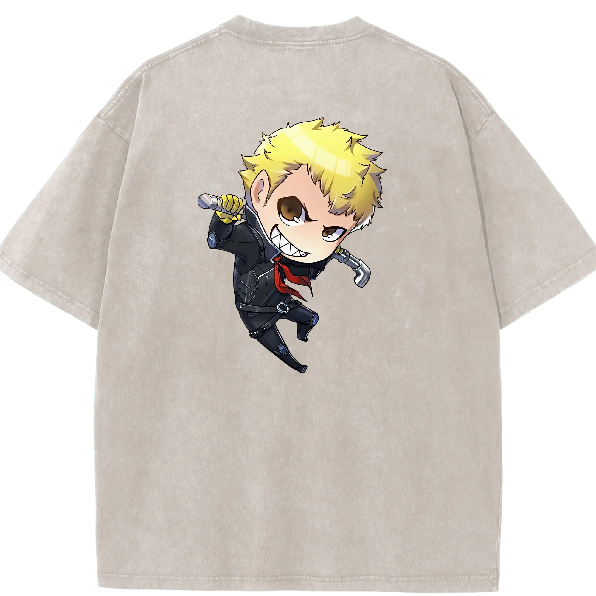 ペルソナ グッズ,坂本竜司 - 綿100% ヴィンテージ風 半袖Tシャツ ・ フロントプリント ・ 柔らか肌触り ・ 通気性 快適 ・ スポーツ カジュアル 外出用