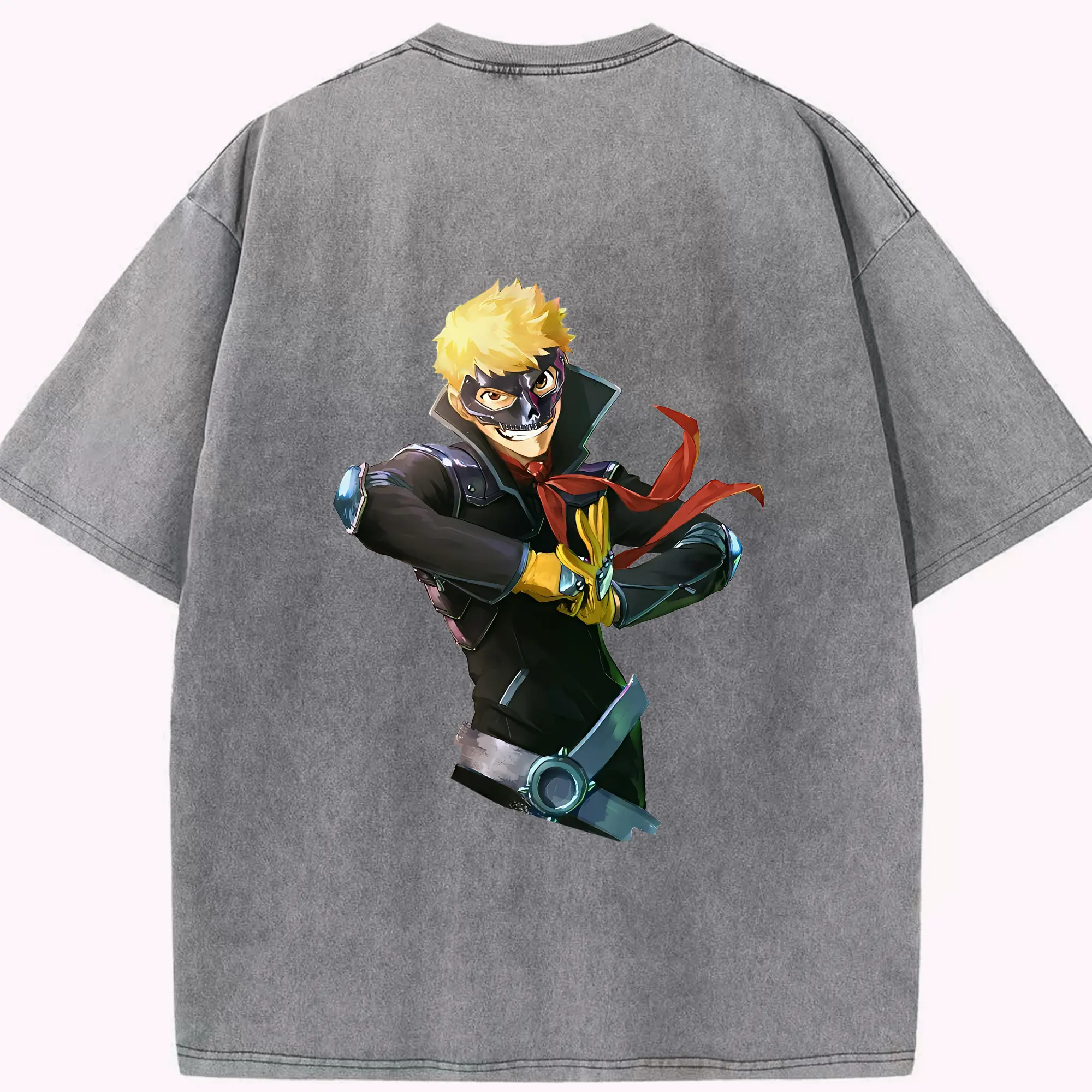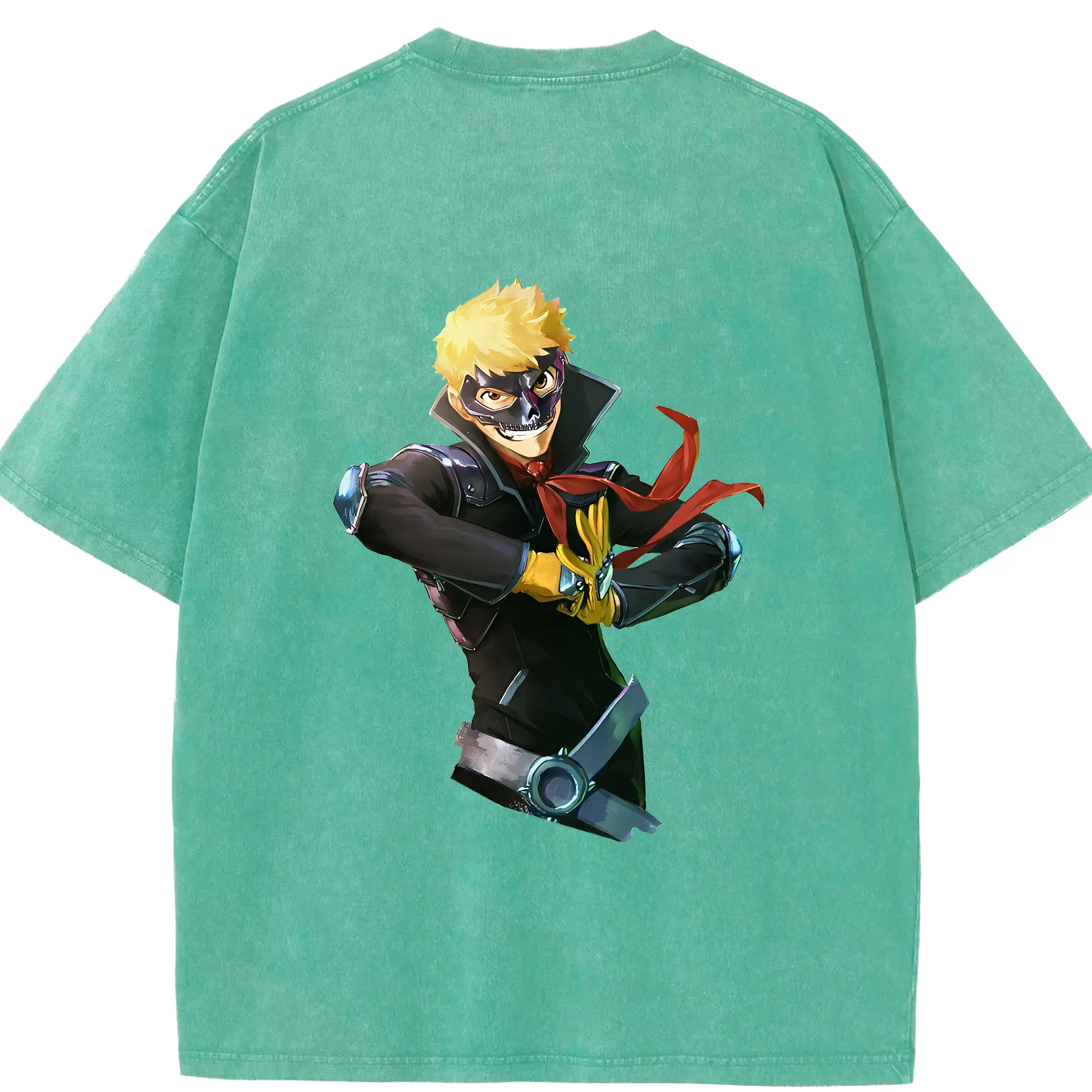 ペルソナ グッズ,坂本竜司 - 綿100% ヴィンテージ風 半袖Tシャツ ・ フロントプリント ・ 柔らか肌触り ・ 通気性 快適 ・ スポーツ カジュアル 外出用