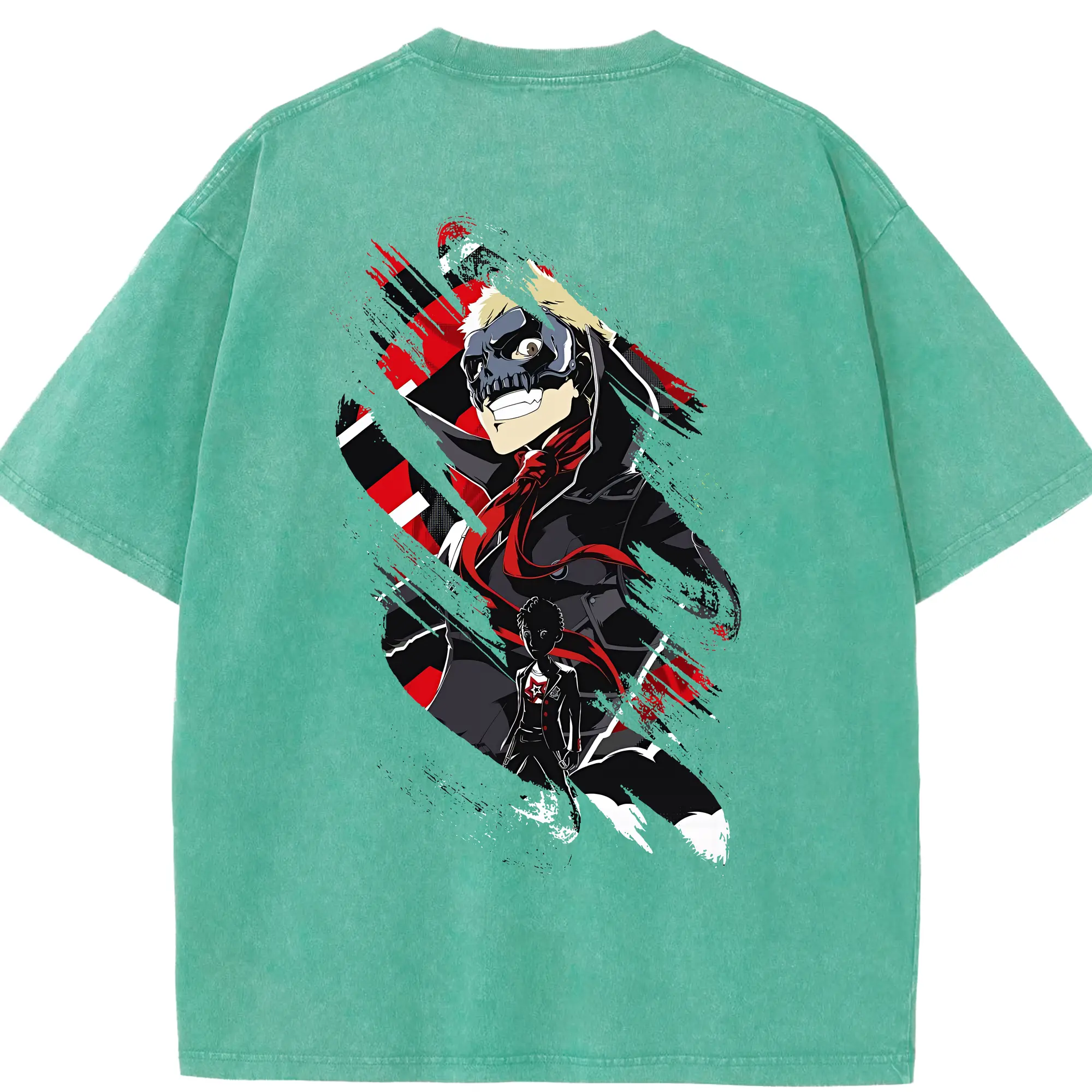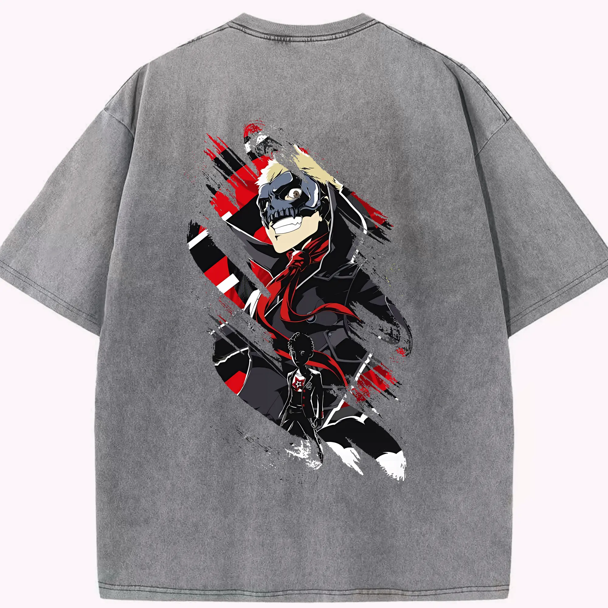 ペルソナ グッズ,坂本竜司 - 綿100% ヴィンテージ風 半袖Tシャツ ・ フロントプリント ・ 柔らか肌触り ・ 通気性 快適 ・ スポーツ カジュアル 外出用