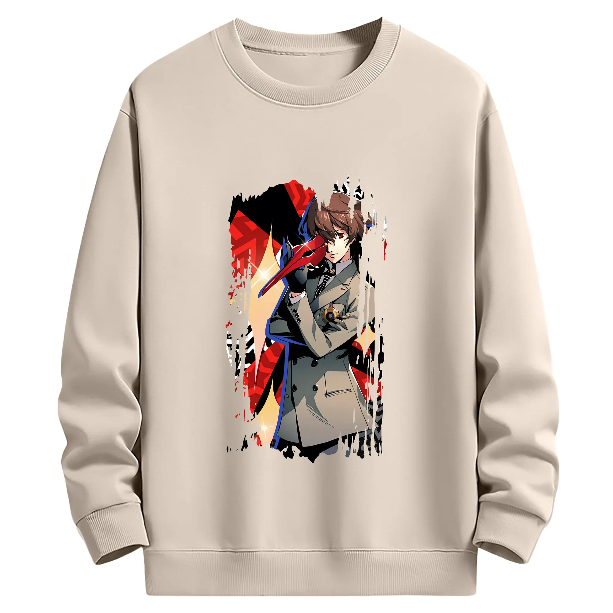 ペルソナ グッズ,明智吾郎 - 薄手 クルーネック スウェット 裏毛260g · ポリエステル 春秋向け カジュアル 男女兼用 · トレーナー デイリー スポーツ 散歩に最適