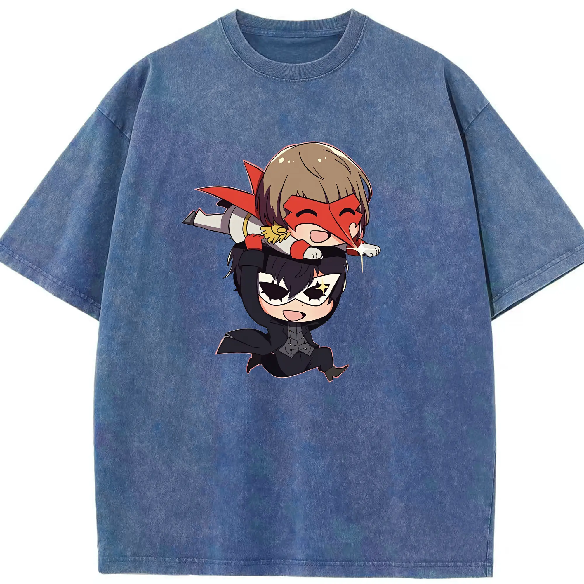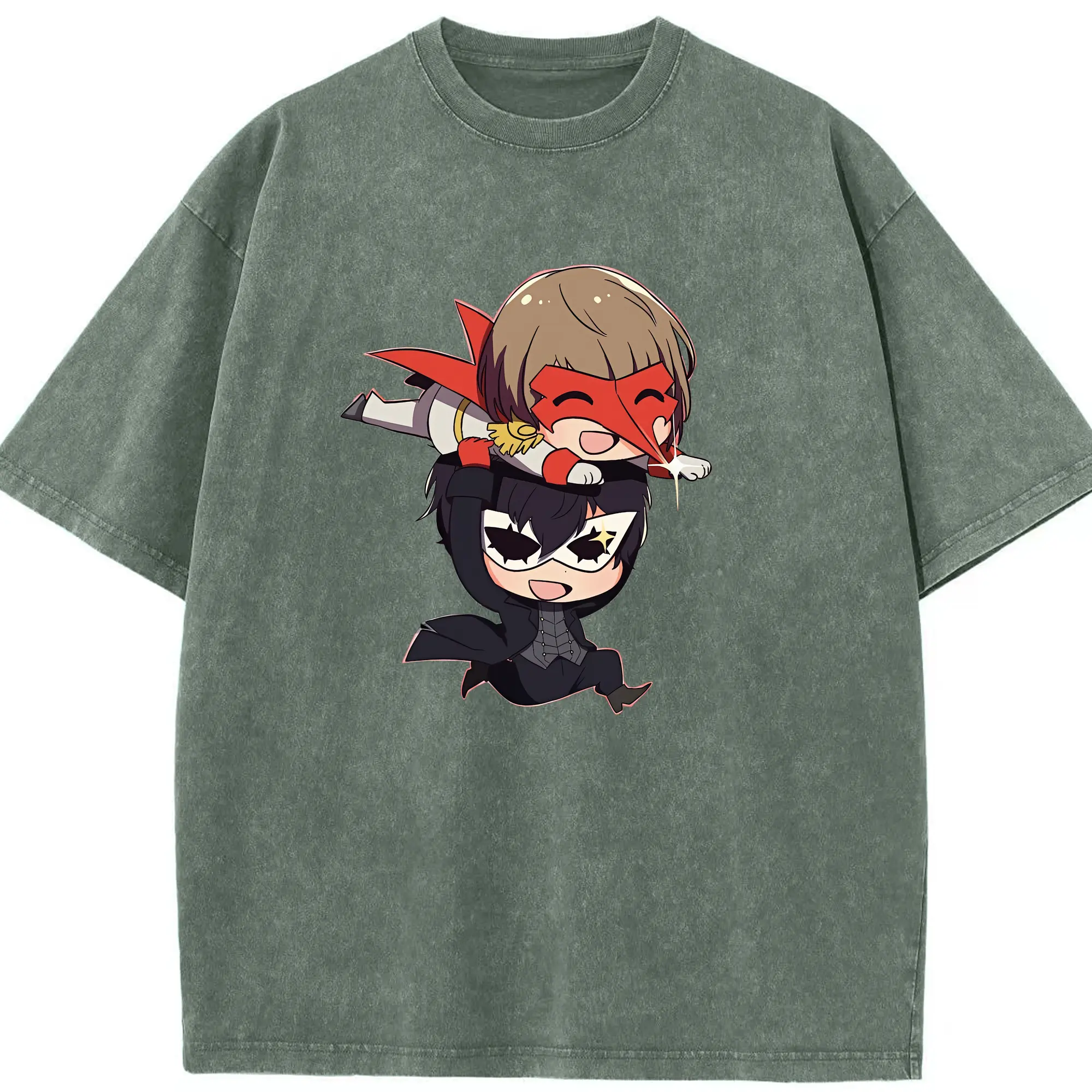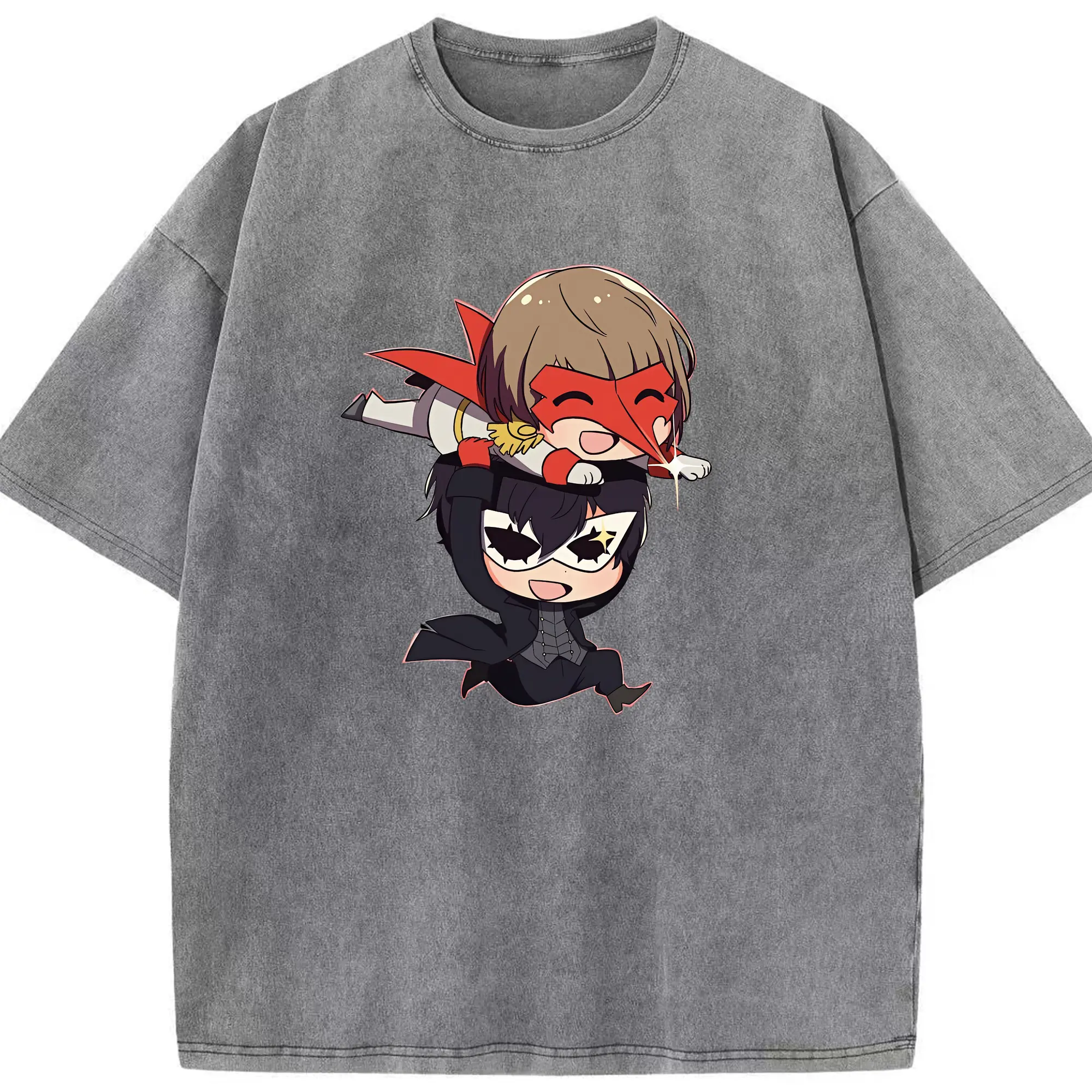 ペルソナ グッズ,明智吾郎 - 綿100% ヴィンテージ風 半袖Tシャツ ・ 背面プリント ・ 柔らか肌触り ・ 通気性 快適 ・ スポーツ カジュアル 外出用