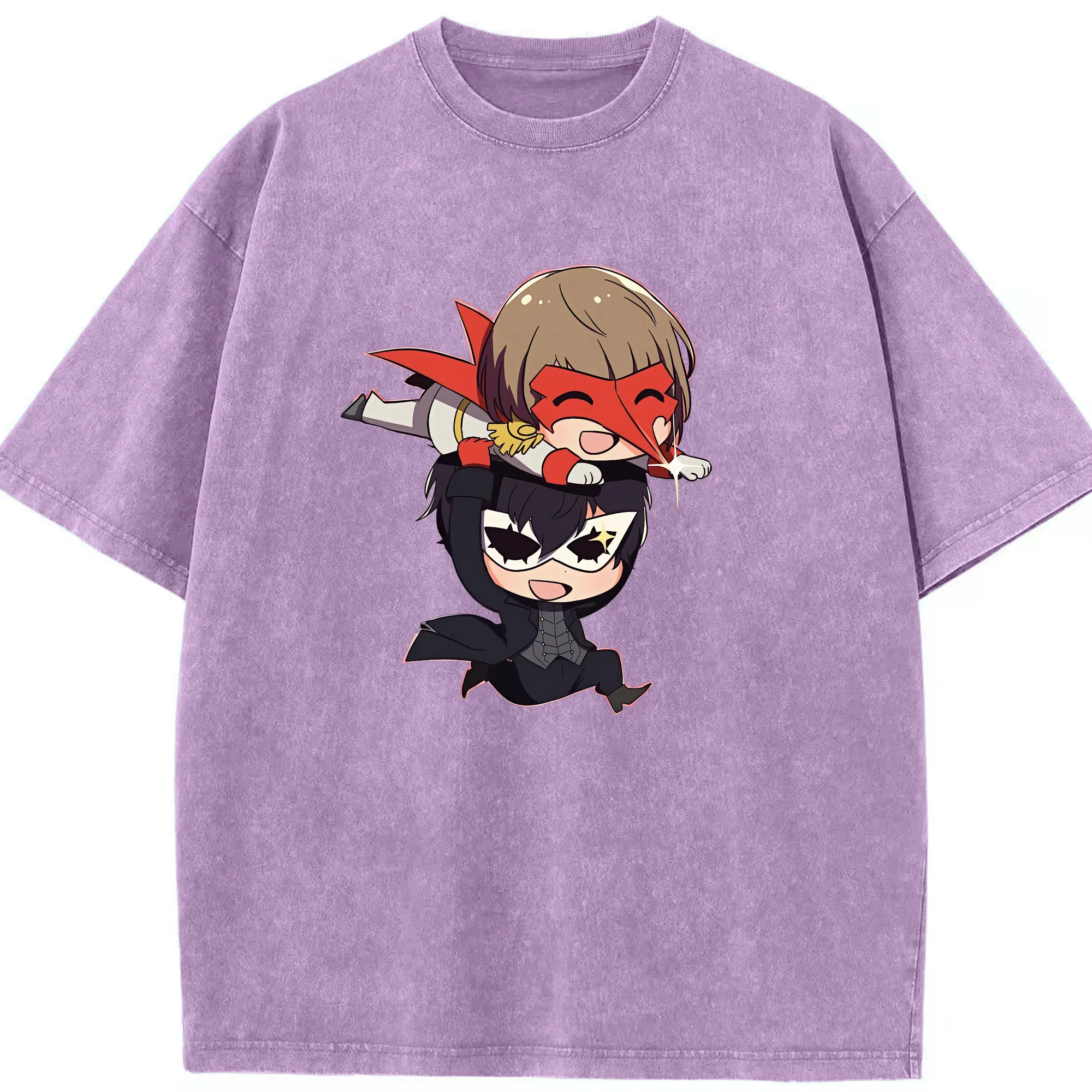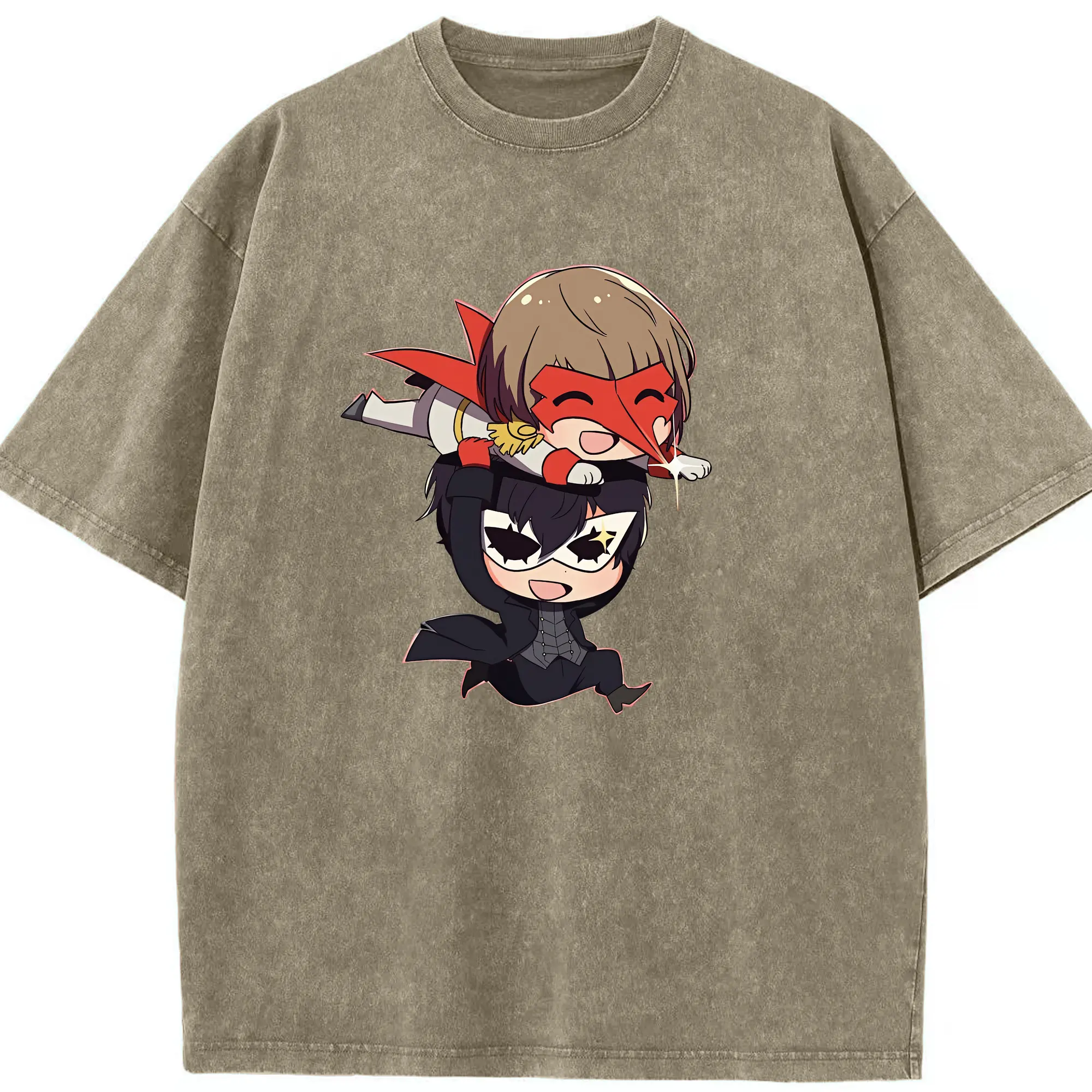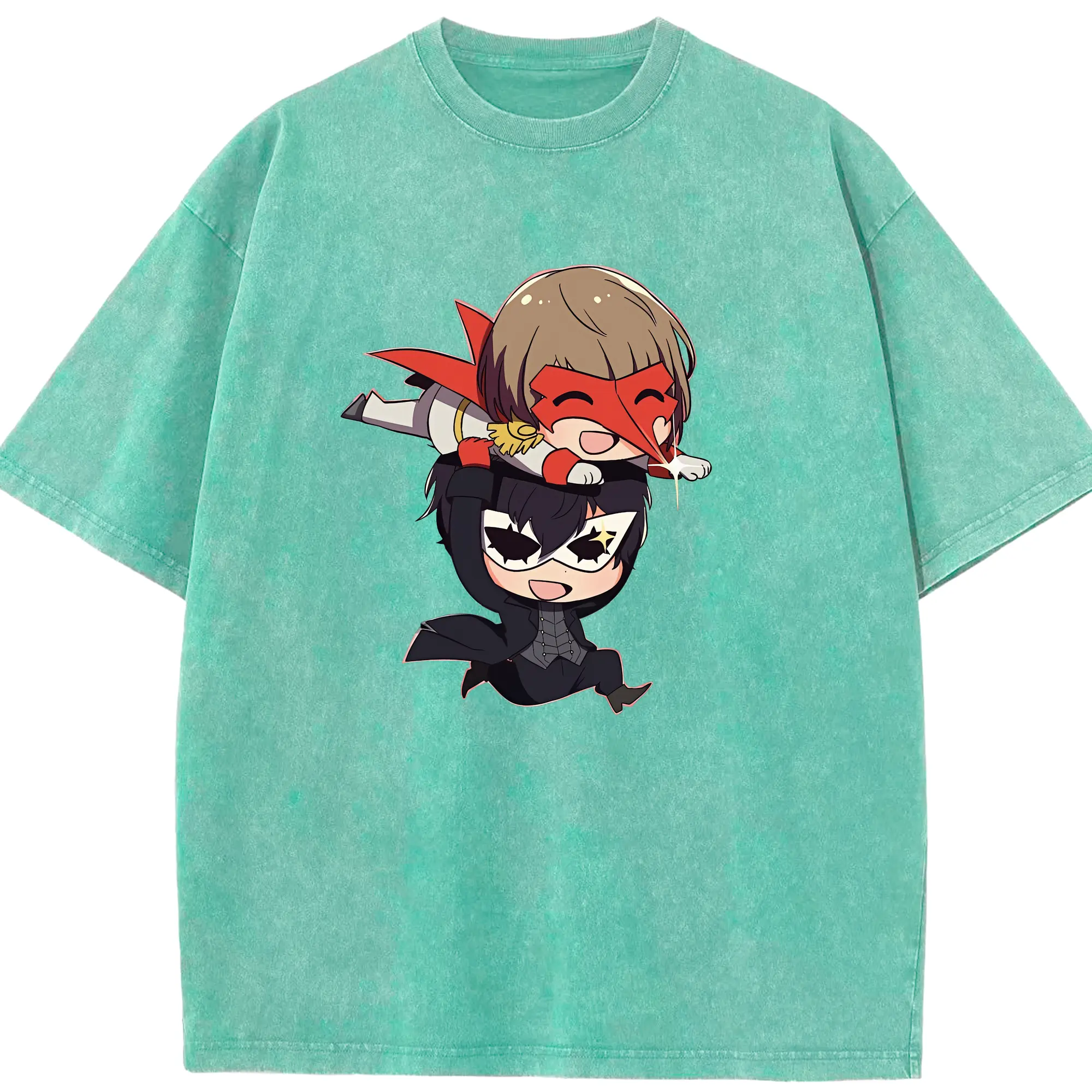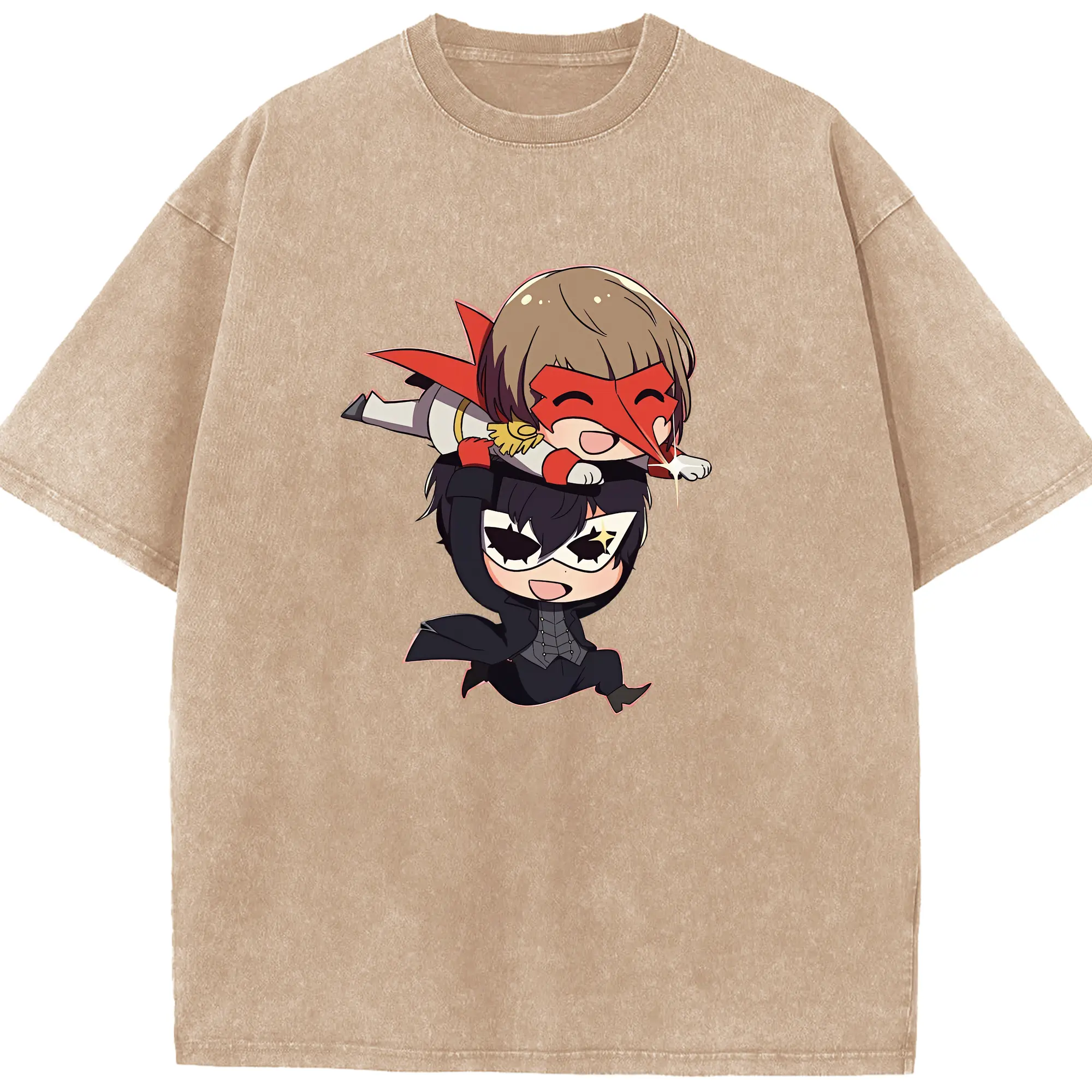 ペルソナ グッズ,明智吾郎 - 綿100% ヴィンテージ風 半袖Tシャツ ・ 背面プリント ・ 柔らか肌触り ・ 通気性 快適 ・ スポーツ カジュアル 外出用