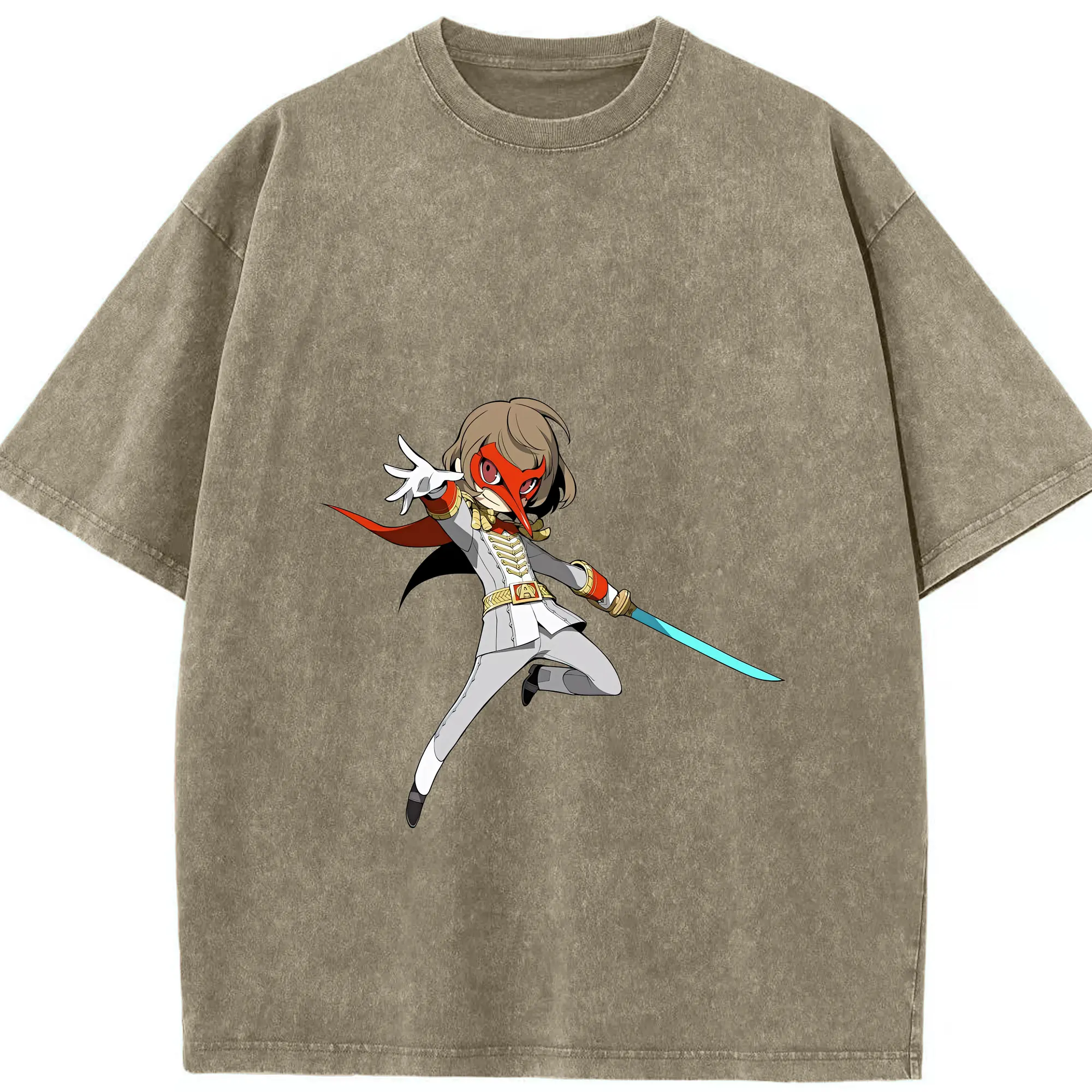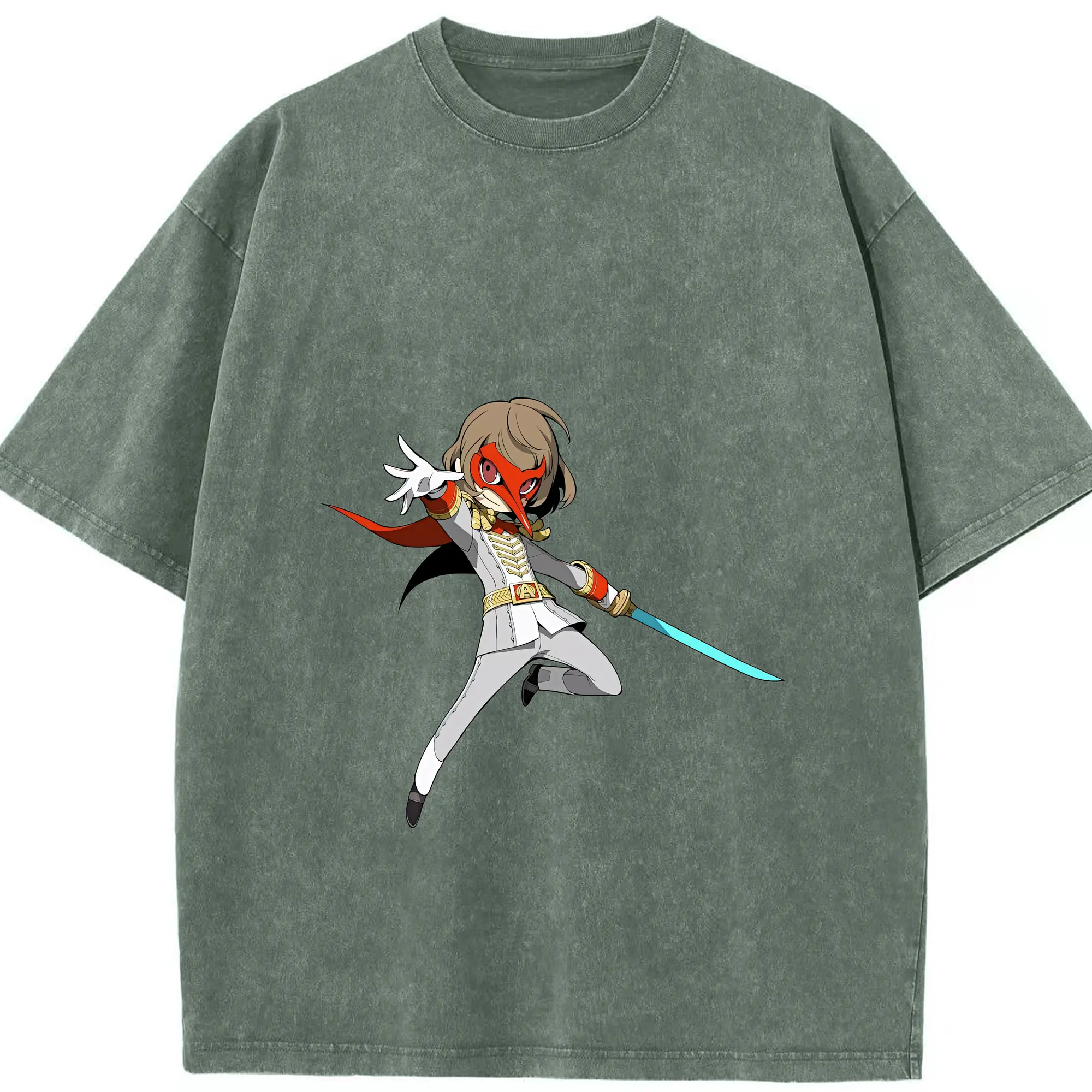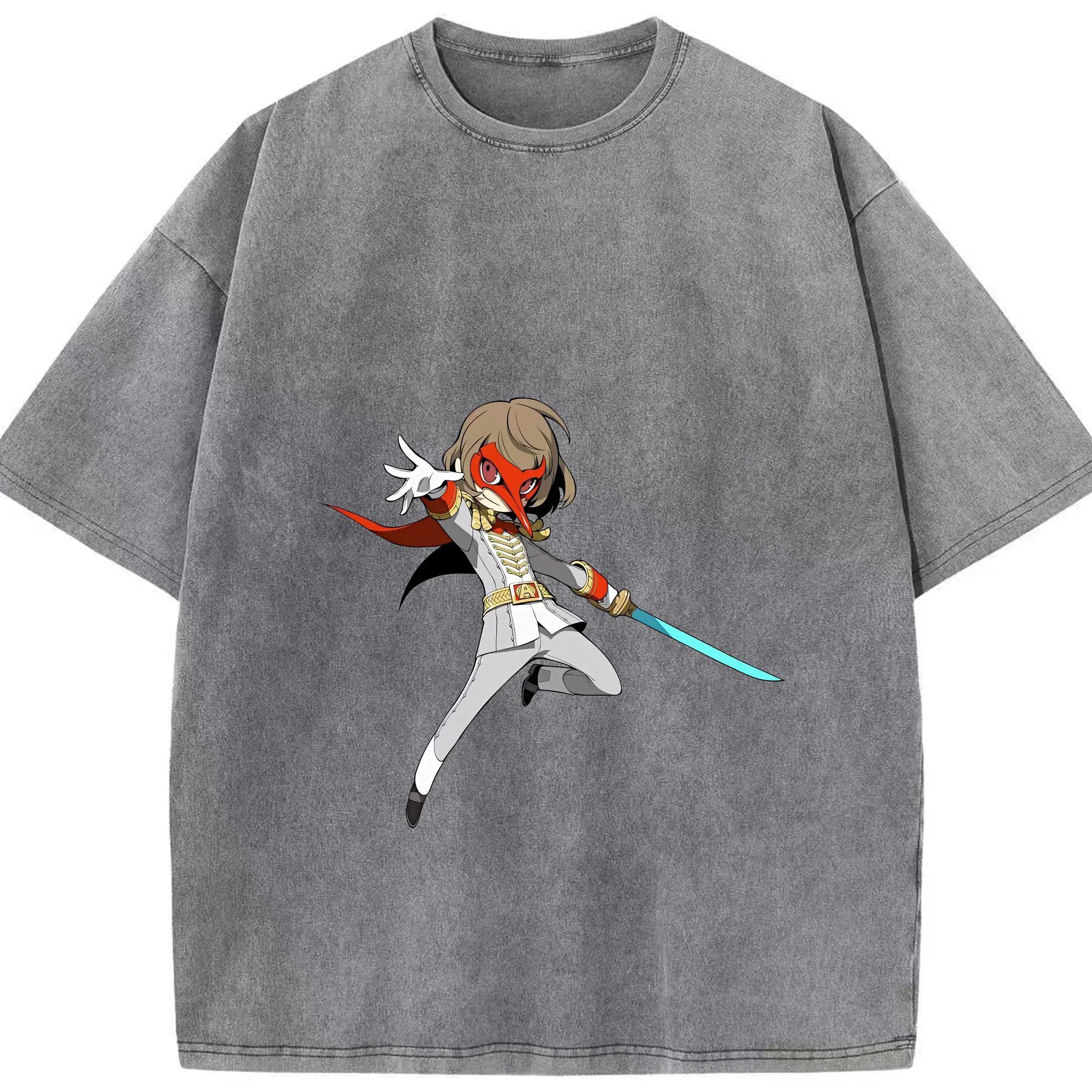 ペルソナ グッズ,明智吾郎 - 綿100% ヴィンテージ風 半袖Tシャツ ・ 背面プリント ・ 柔らか肌触り ・ 通気性 快適 ・ スポーツ カジュアル 外出用