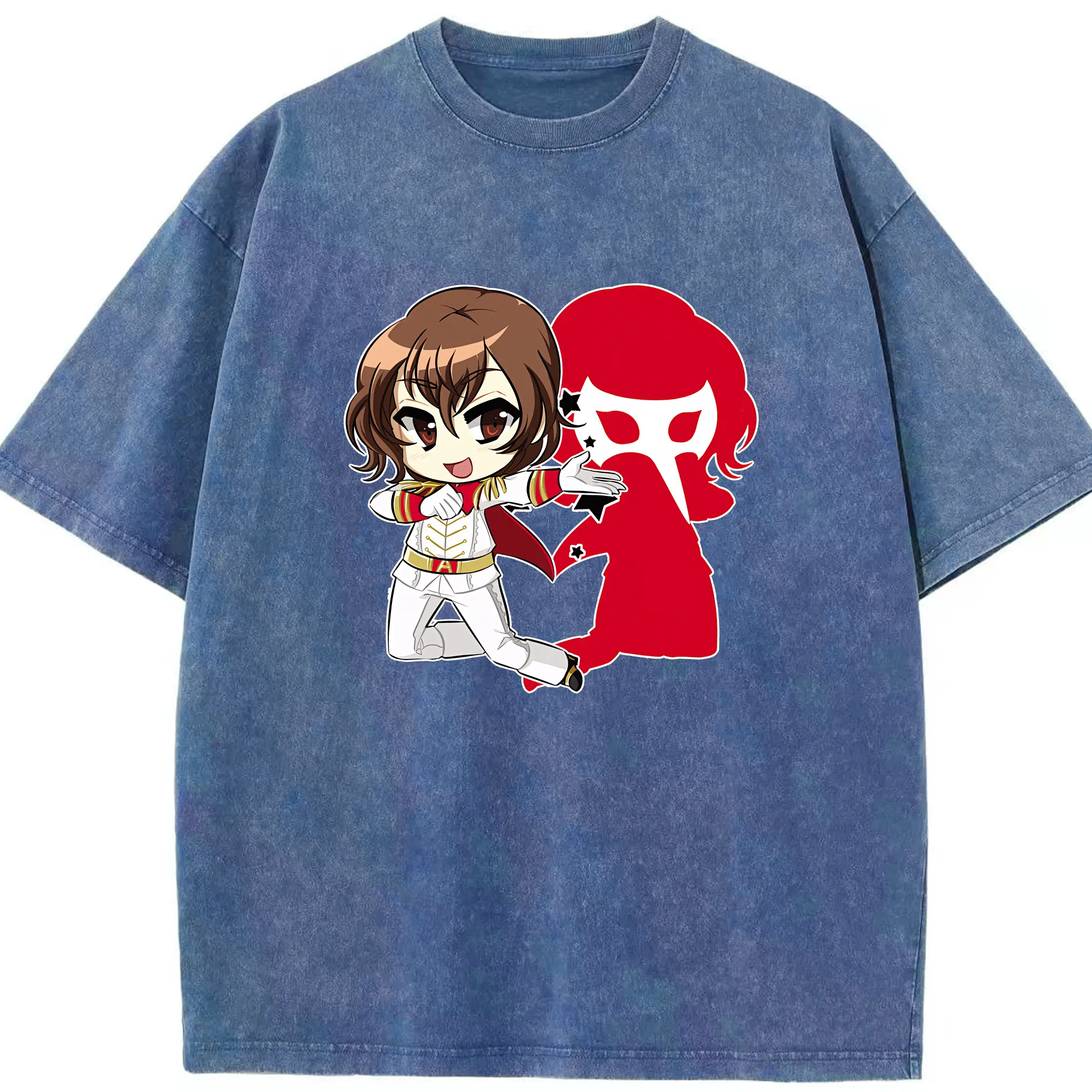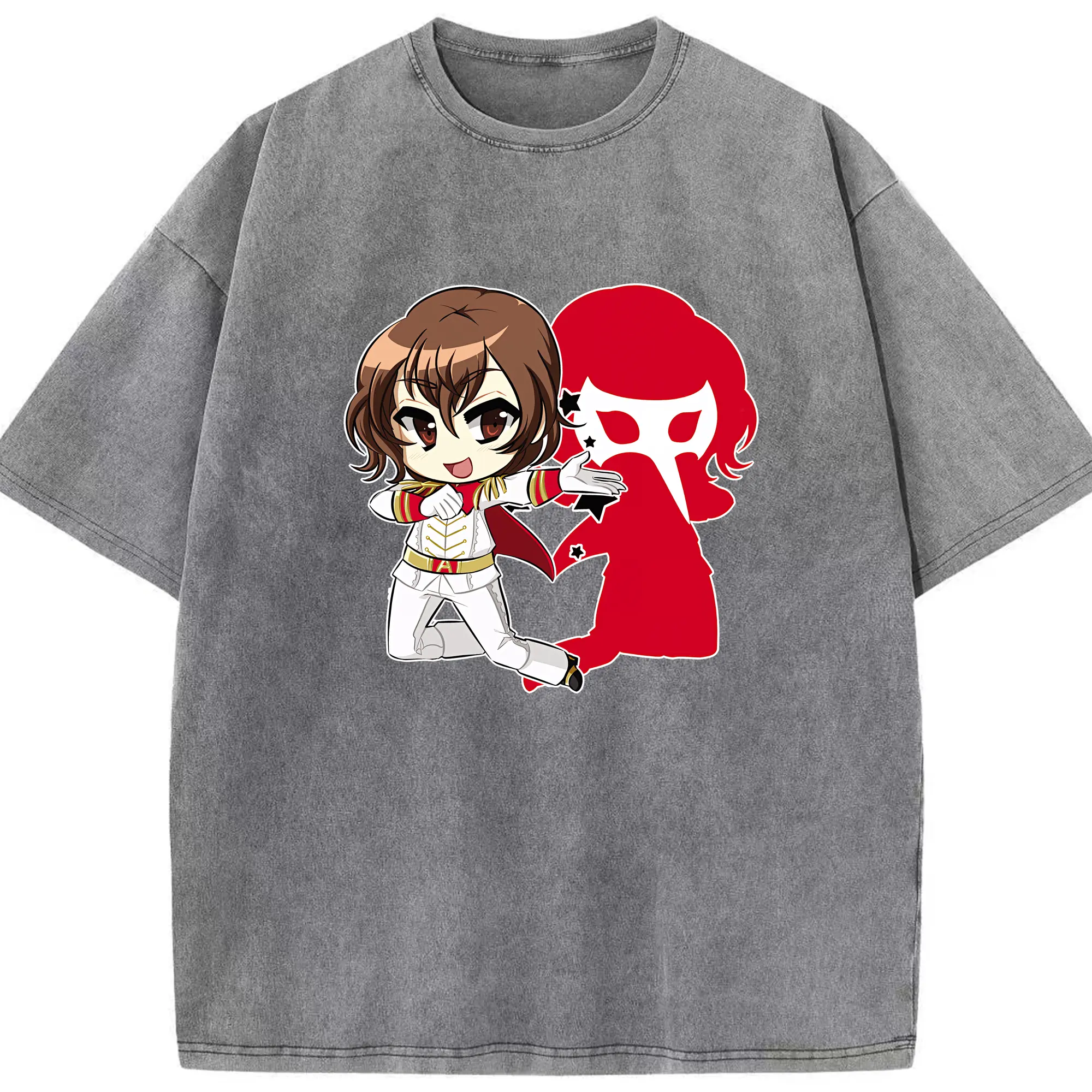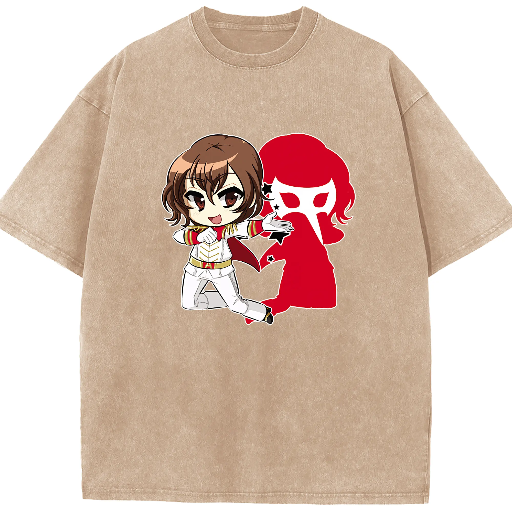 ペルソナ グッズ,明智吾郎 - 綿100% ヴィンテージ風 半袖Tシャツ ・ 背面プリント ・ 柔らか肌触り ・ 通気性 快適 ・ スポーツ カジュアル 外出用