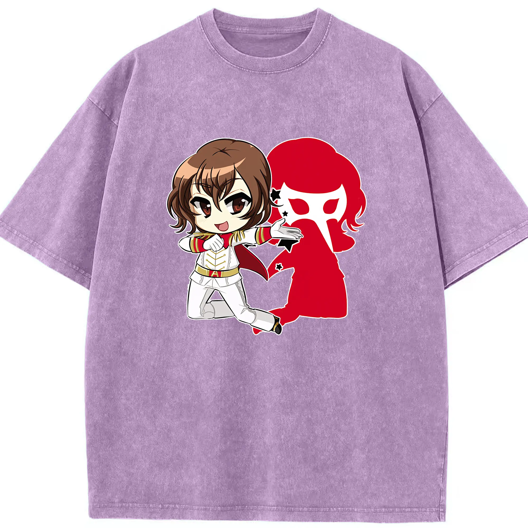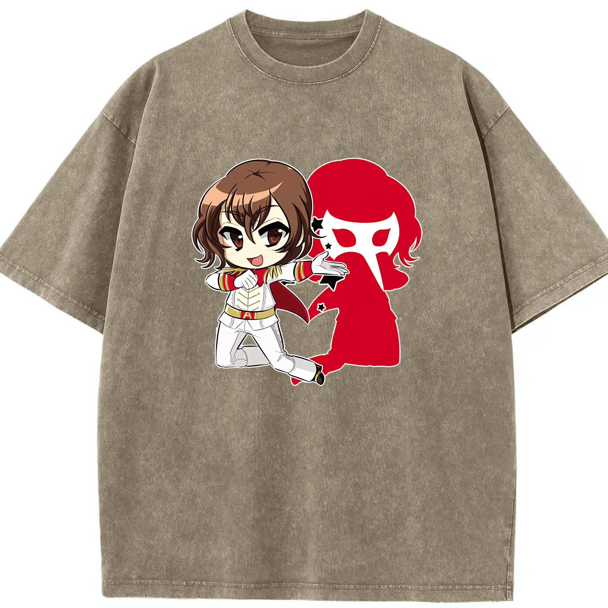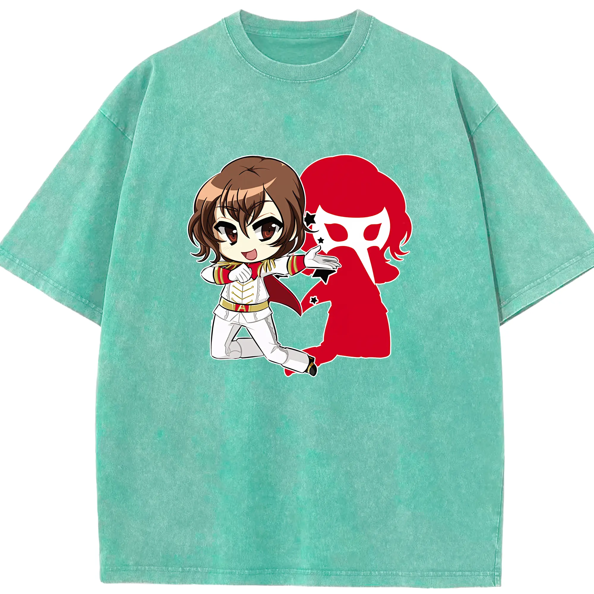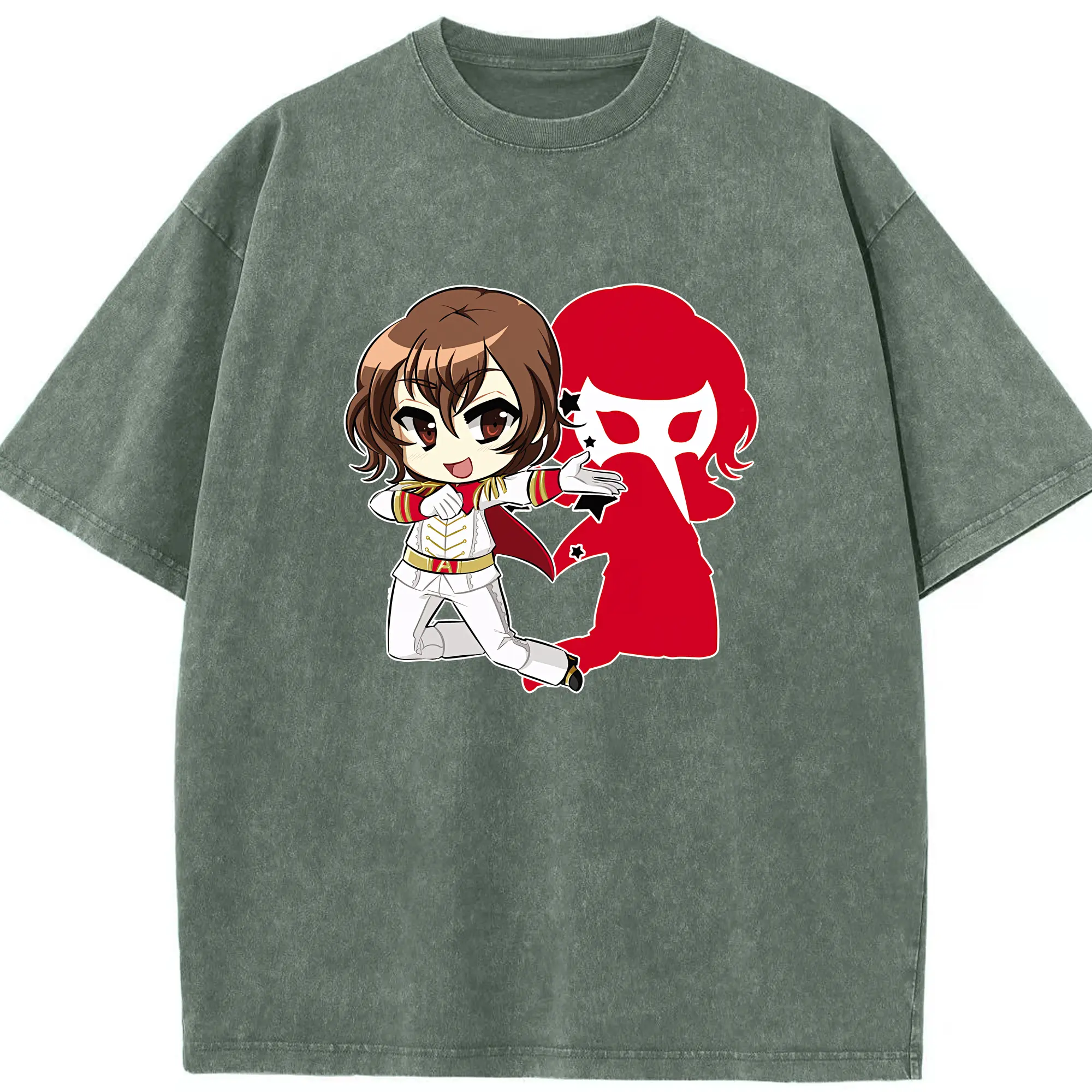 ペルソナ グッズ,明智吾郎 - 綿100% ヴィンテージ風 半袖Tシャツ ・ 背面プリント ・ 柔らか肌触り ・ 通気性 快適 ・ スポーツ カジュアル 外出用